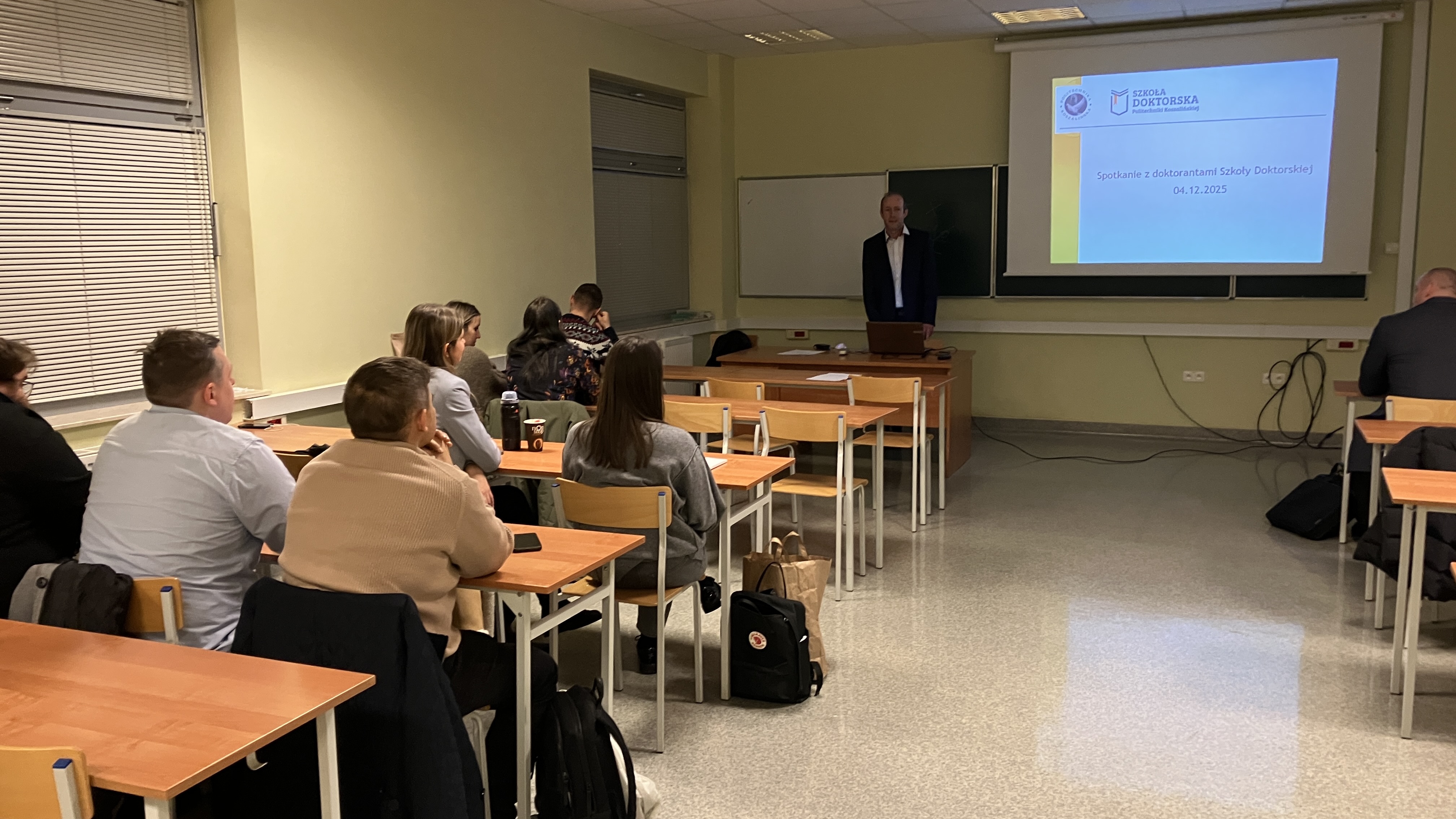 4 grudnia 2025 r. odbyło się spotkanie doktorantów Szkoły Doktorskiej z Dyrektorem, dr. hab. inż. Łukaszem Bohdalem, prof. PK. Podczas rozmowy omówiono najważniejsze kwestie związane z funkcjonowaniem Szkoły oraz przebiegiem kształcenia.
