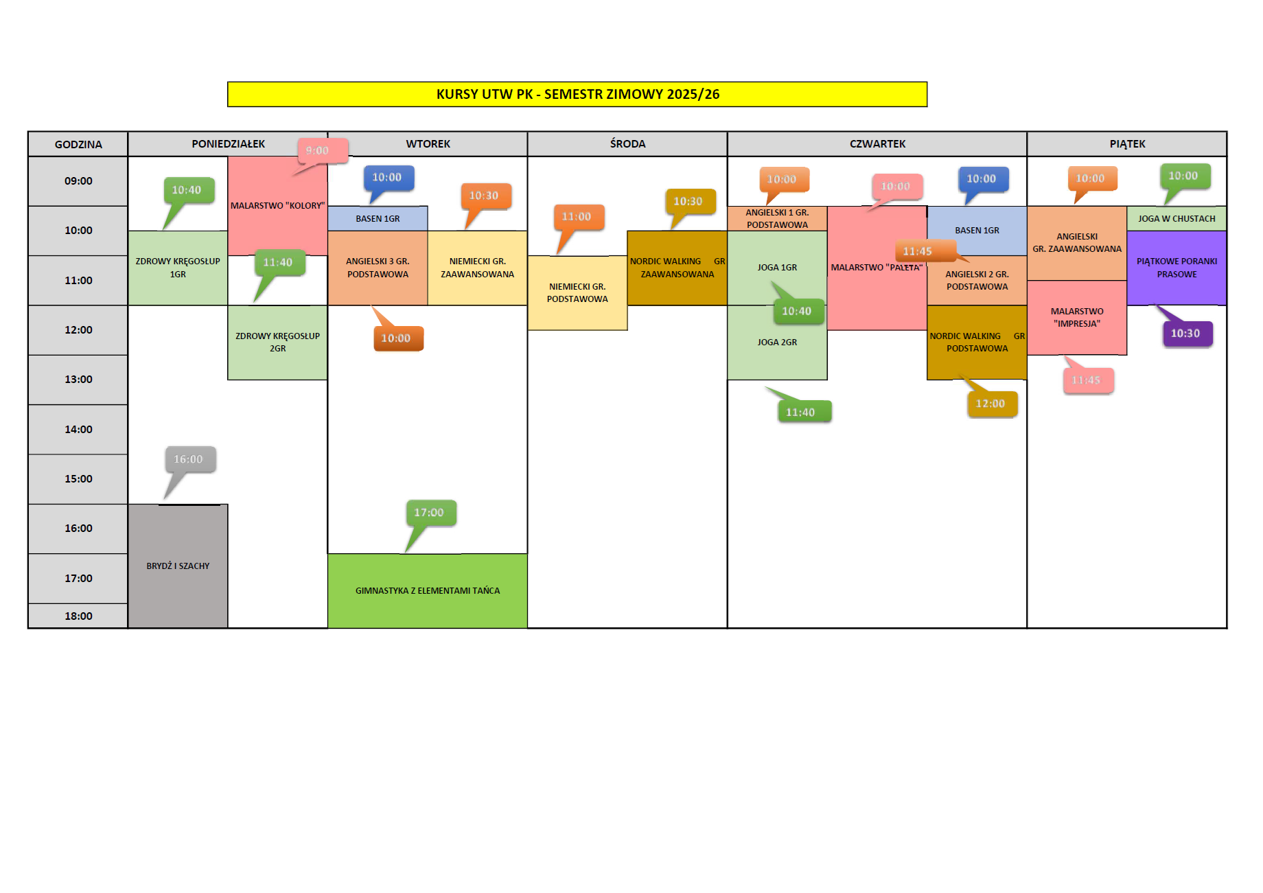 HARMONOGRAM WARSZTATÓW UTW PK - 1 SEM. 2025/26