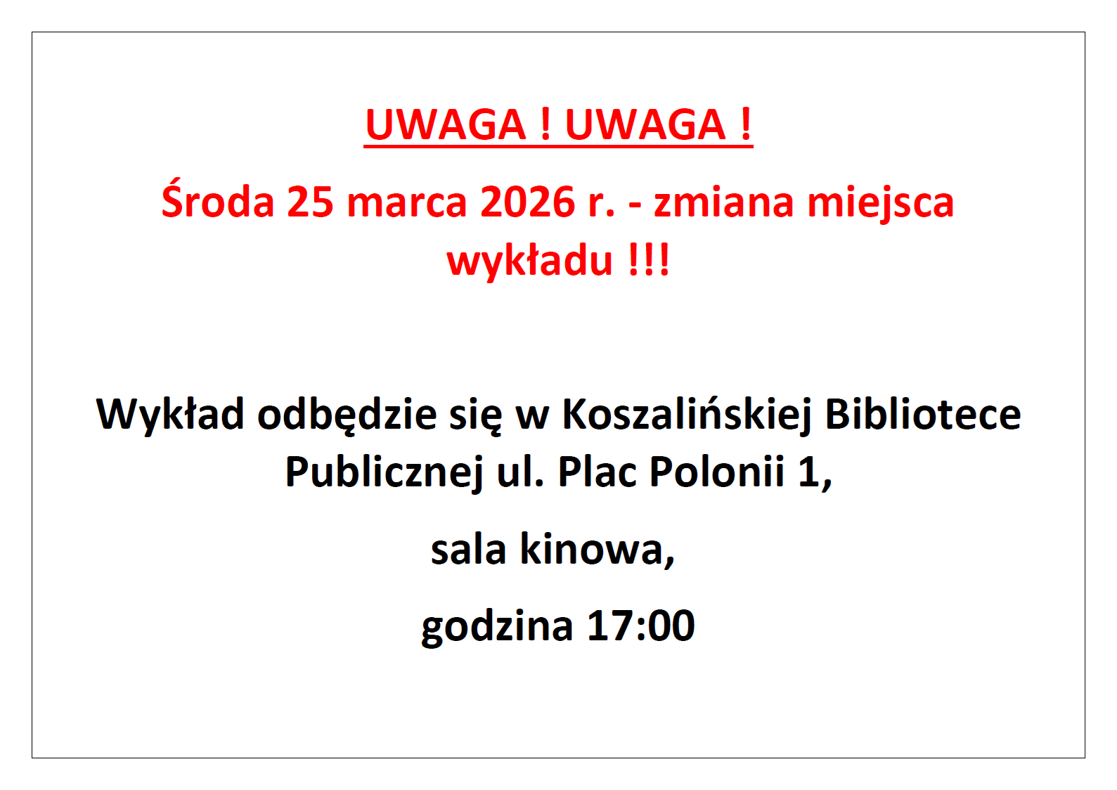 25 marca 2026 r. - środa ZMIANA MIEJSCA WYKŁADU !