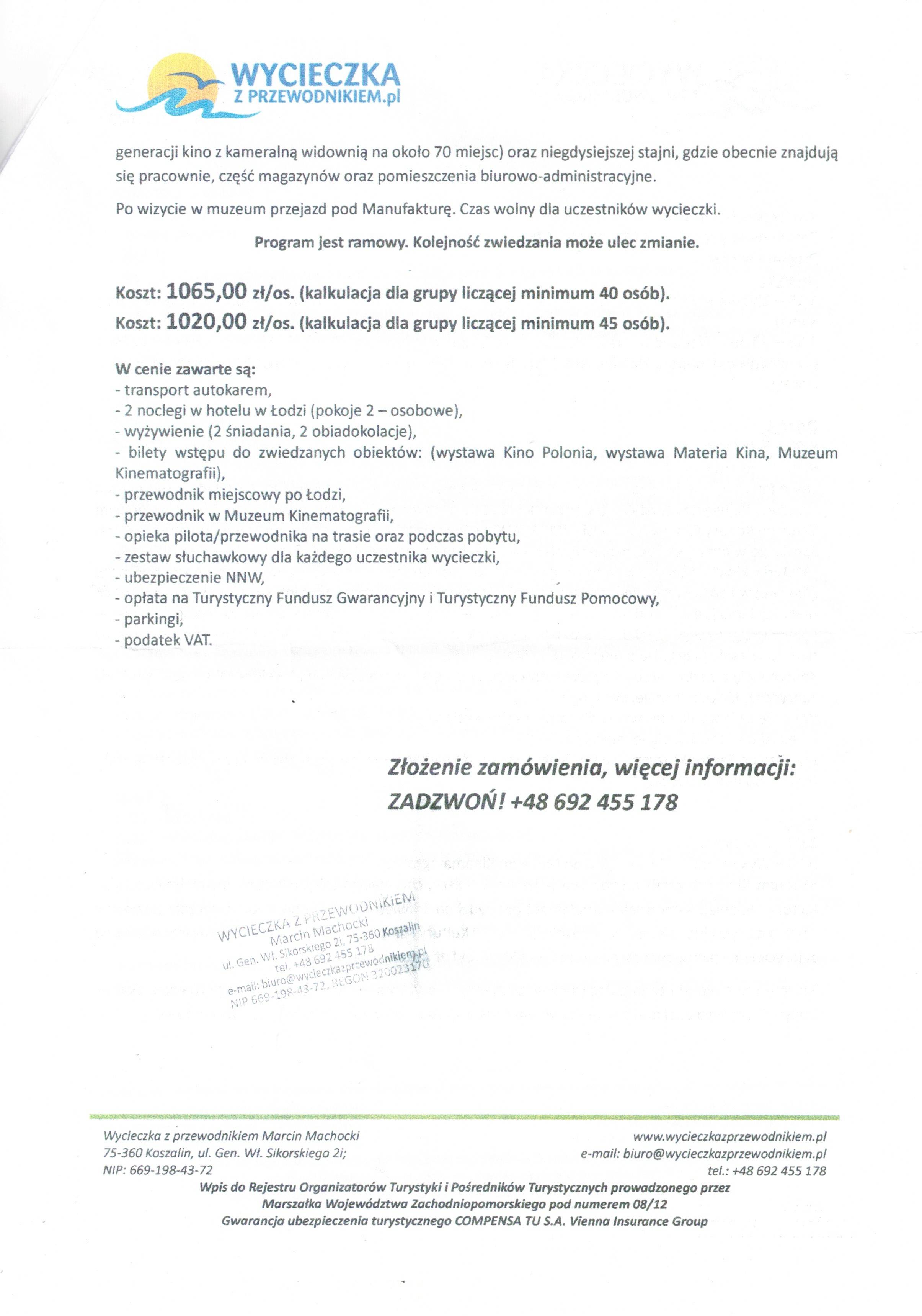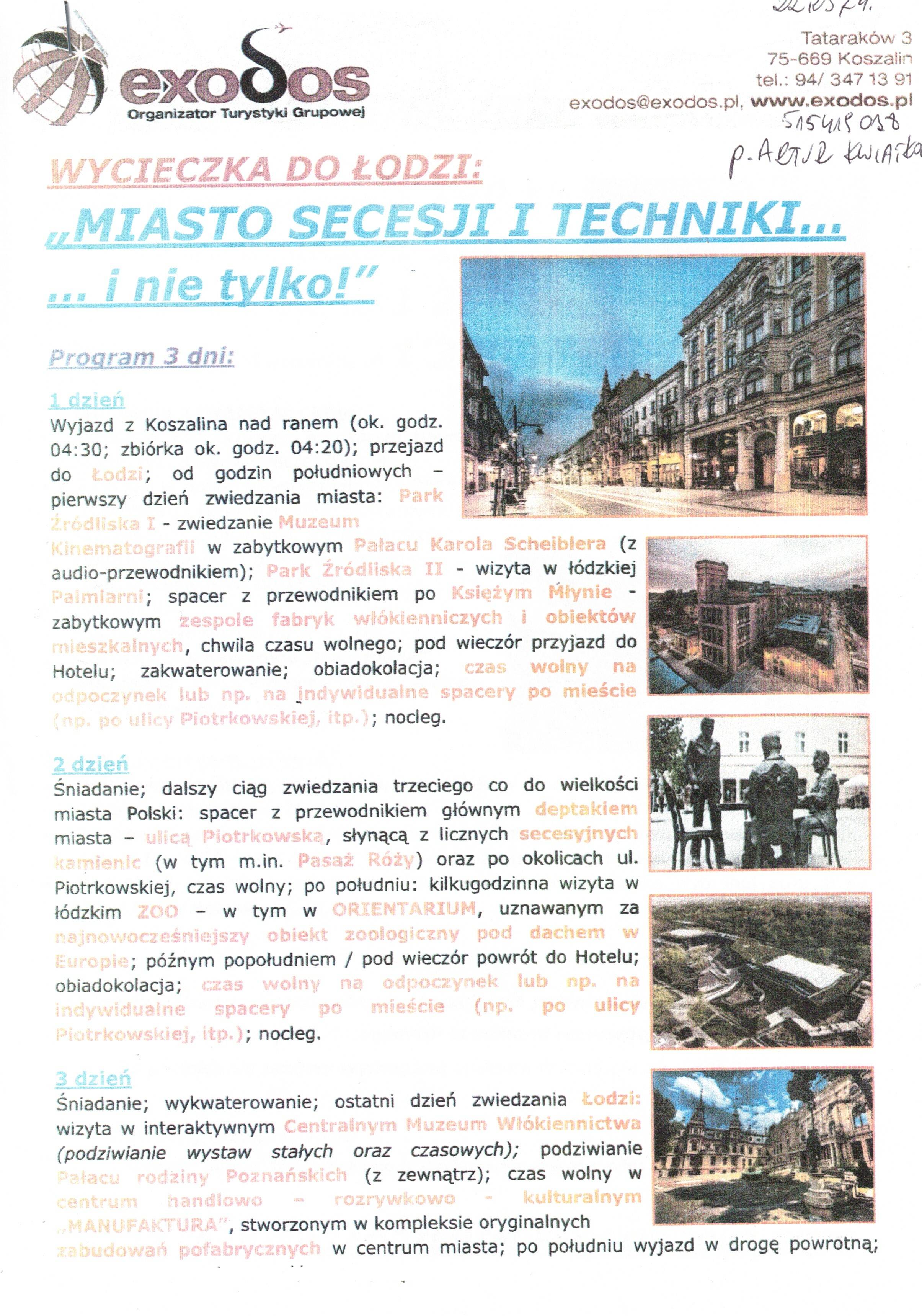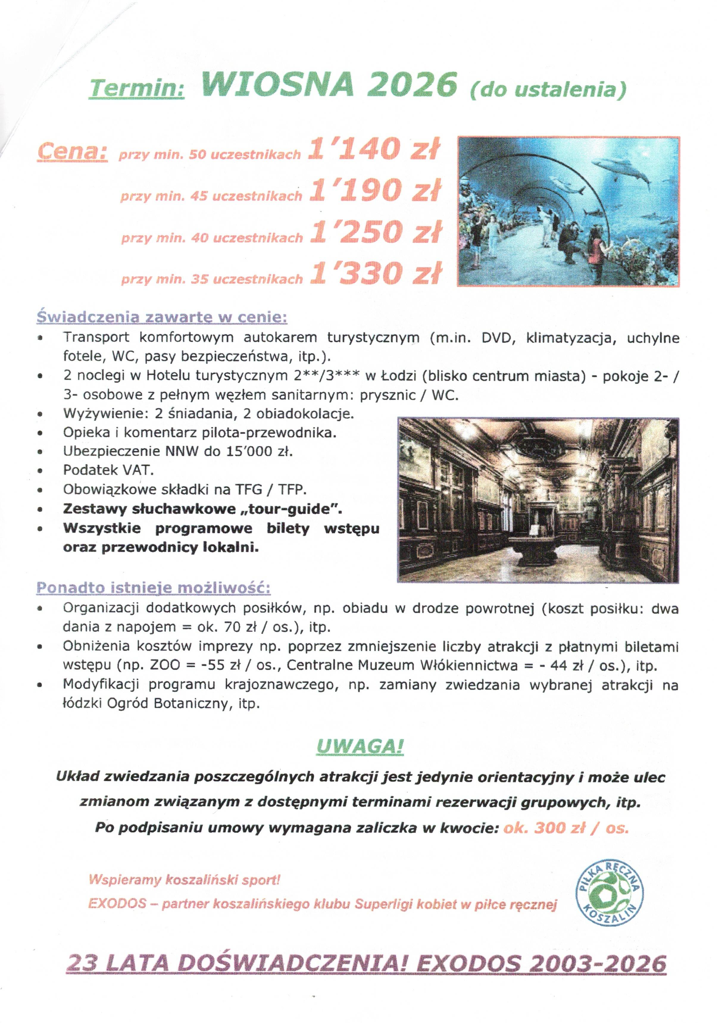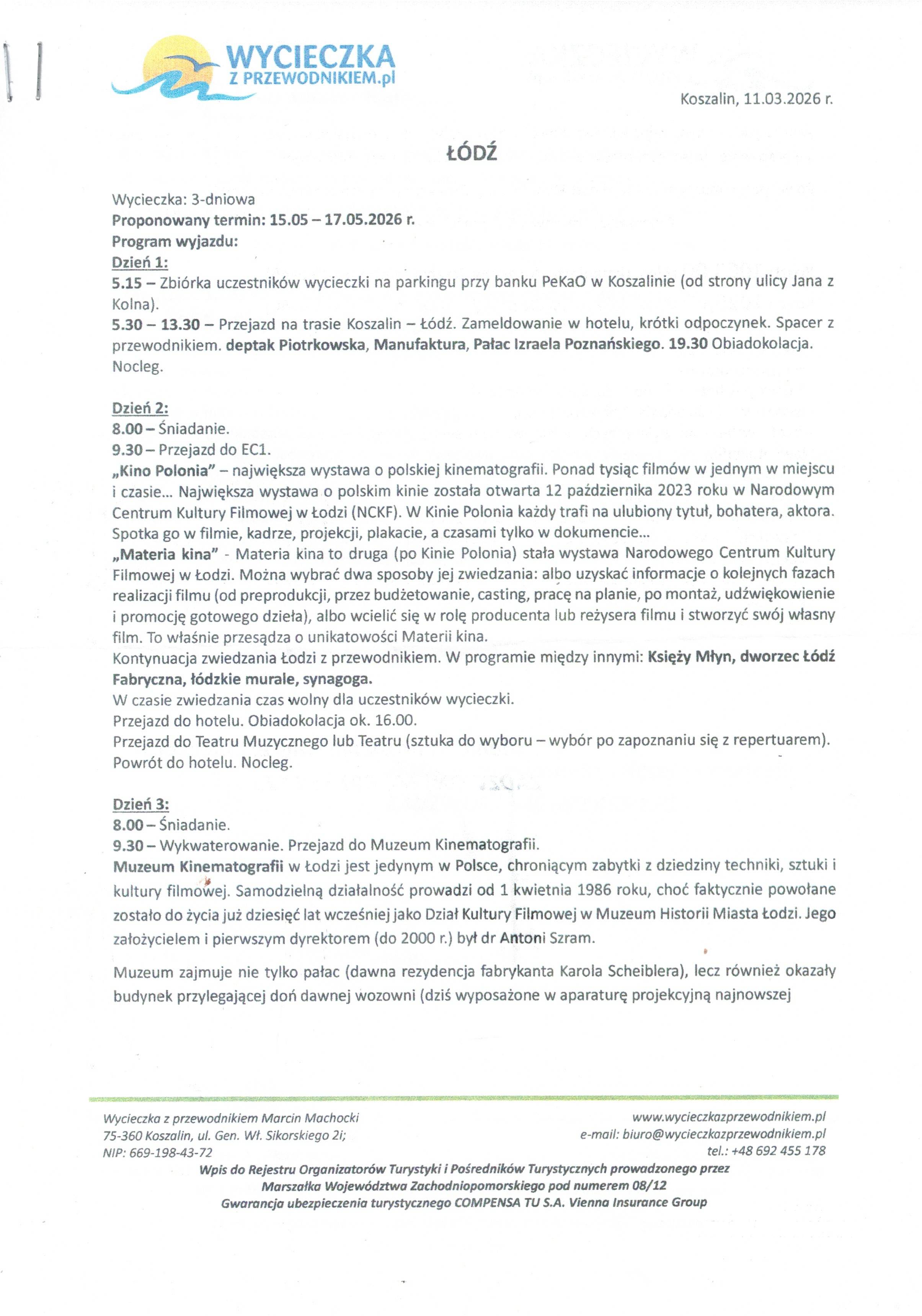 Wycieczka krajowa dla słuchaczy UTW PK w maju 2026 r.