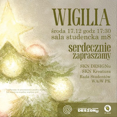 serdecznie zapraszają studentów, wykładowców, pracowników i sympatyków Wydziału na Wigilię we wspólnym akademickim gronie.