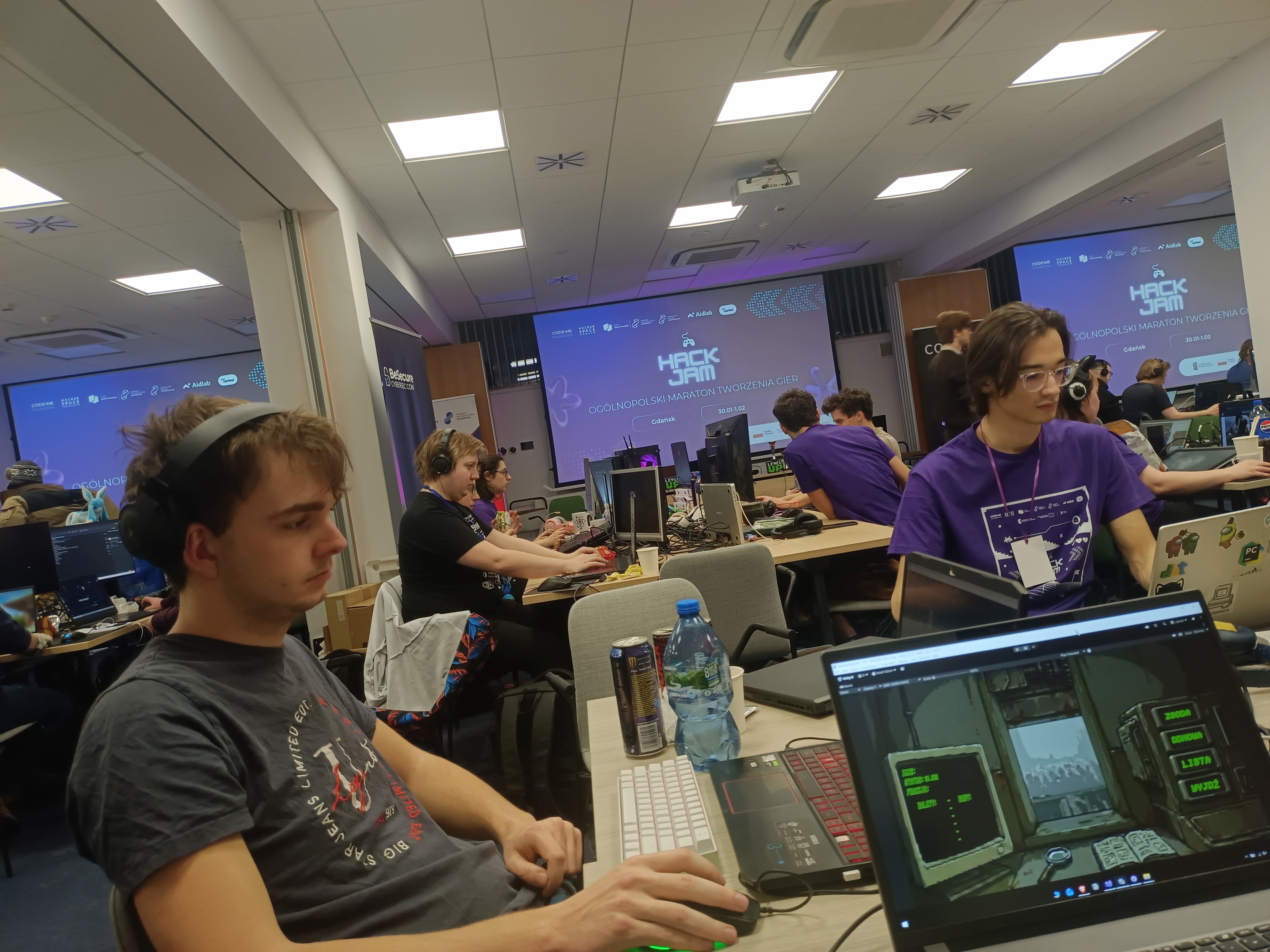 W dniach 30.01.26r. - 01.02.26r. studenci Wydziału Elektroniki i Informatyki wzięli udział w Ogólnopolskim Maratonie Tworzenia Gier "HackJam 2026" zorganizowanym przez Fundacje CODE:ME w Gdańskim Parku Naukowo-Technologicznym.