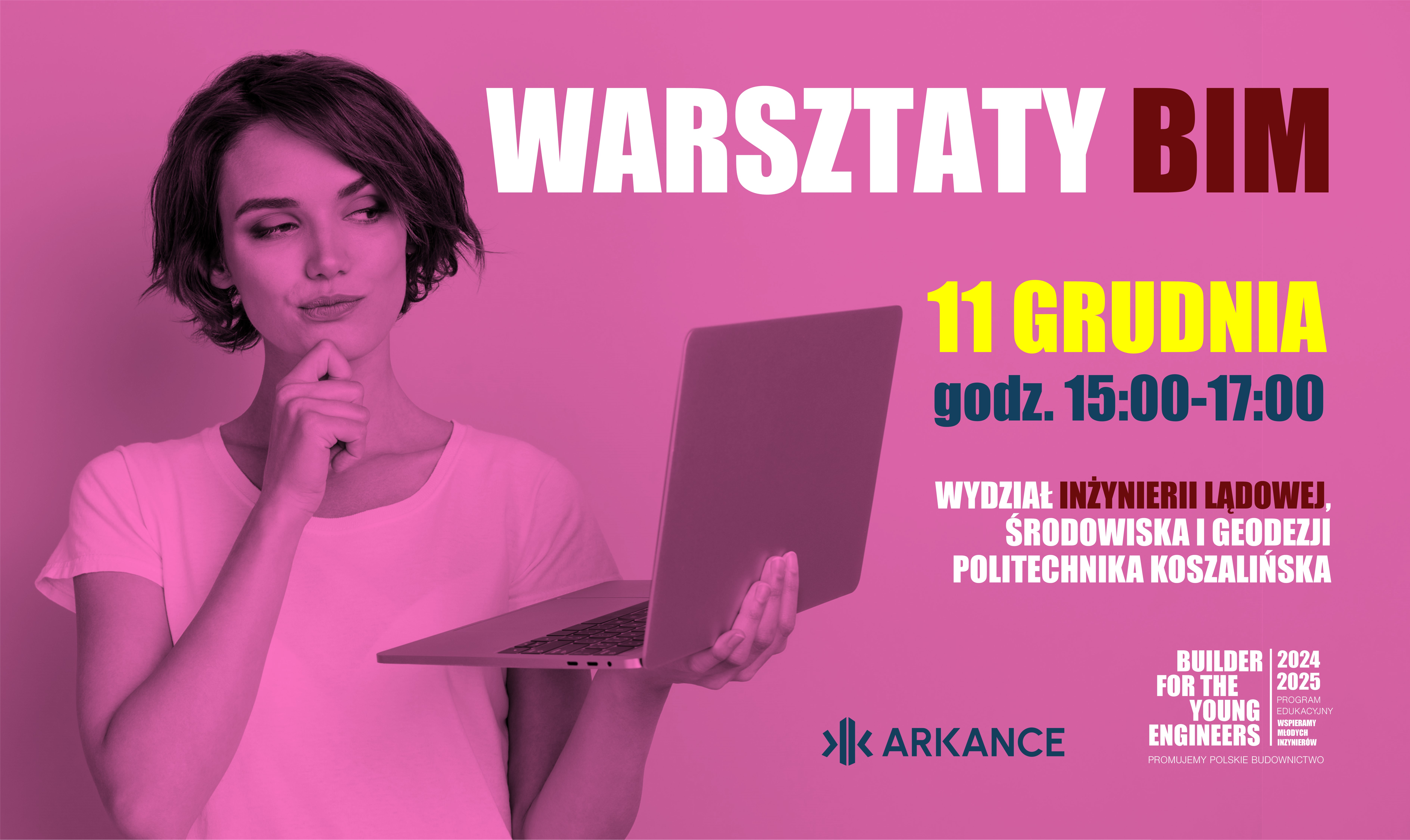 Miesięcznik Builder wraz z firmą Arkance Systems Poland zapraszają na WARSZTATY BIM w zakresie "Tworzenie modelu szalunkowego, Specyfikacja obiektów inżynierskich, budownictwo modułowe w Revit", które odbędą się w formule on-line (na platformie Zoom) w dniu 11 grudnia 2024 w godz. 15.00 - 17.00 (środa). Warsztaty BIM zorganizowane zostaną w ramach programu Builder for the Young Architects dla studentów Wydziału Inżynierii Lądowej, Środowiska i Geodezji Politechniki Koszalińskiej.