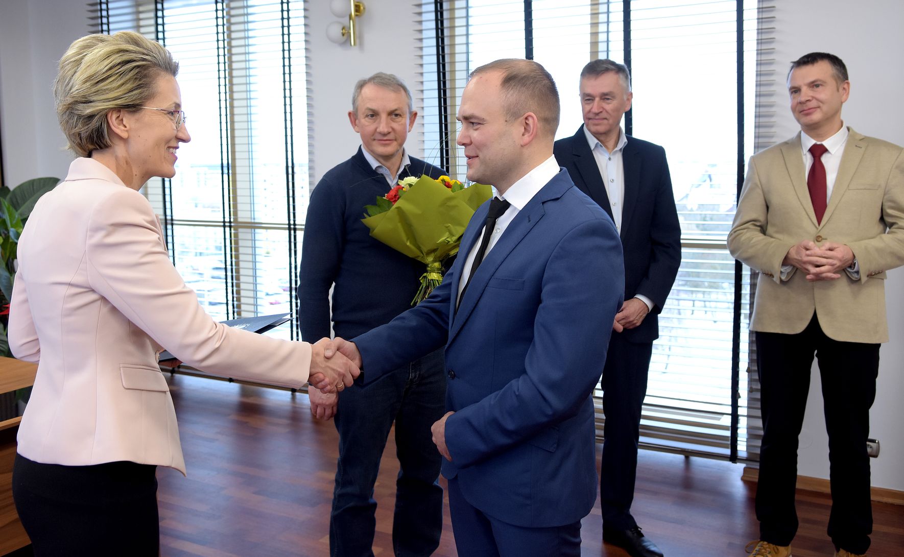 Dr hab. Danuta Zawadzka, prof. PK, rektor Politechniki Koszalińskiej pogratulowała dzisiaj (5 stycznia br.) obojgu pełnomocnikom oraz wręczyła im akty powołania na funkcje. – Gratuluję i cieszę się z naszej współpracy. Deklaruję wszelkie wsparcie, jestem do Państwa dyspozycji – powiedziała prof. Danuta Zawadzka. – Oby wszystko dobrze się układało. Trzymam kciuki i życzę powodzenia! – dodała pani rektor.
