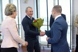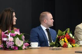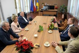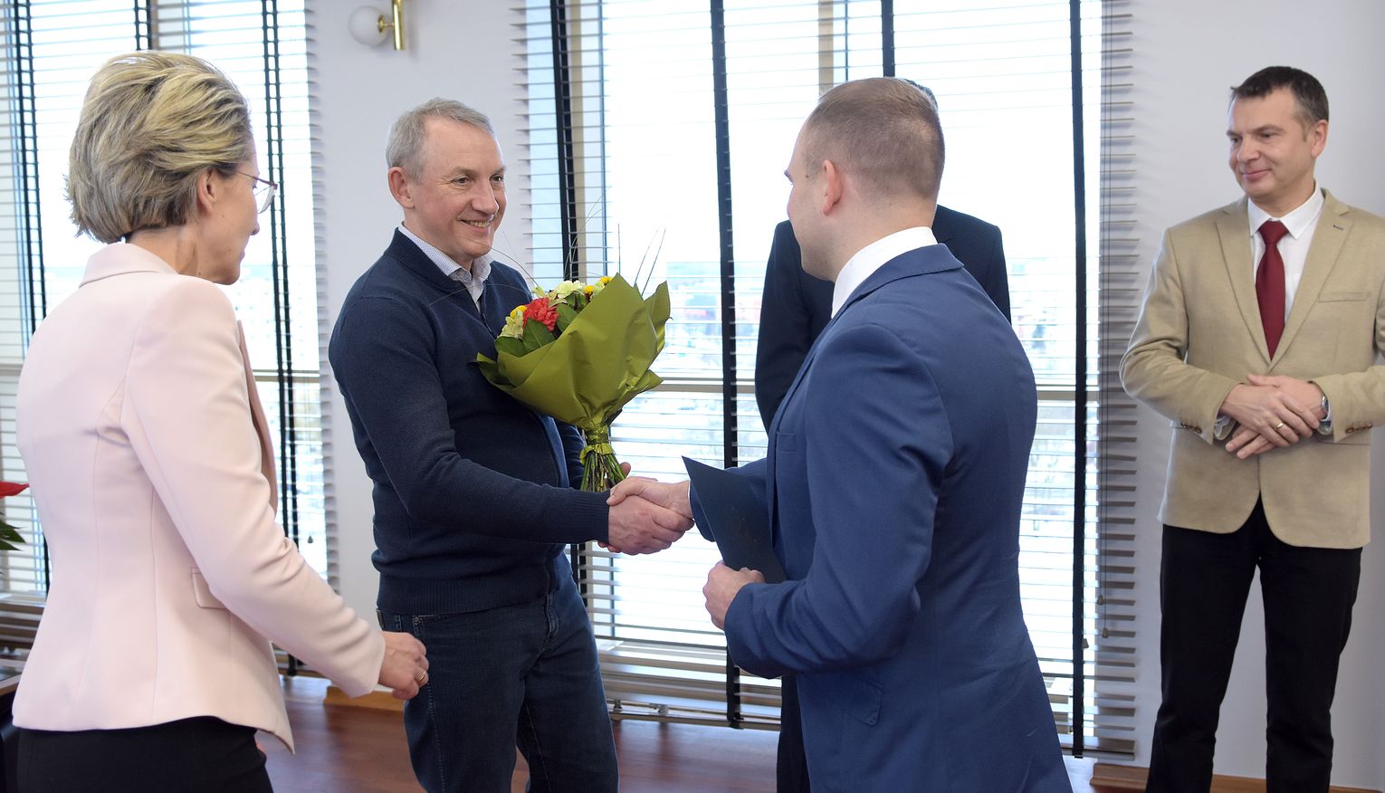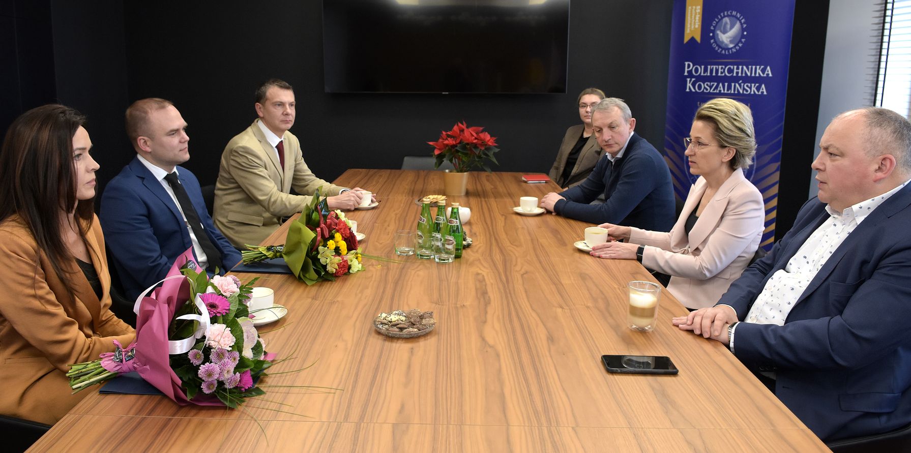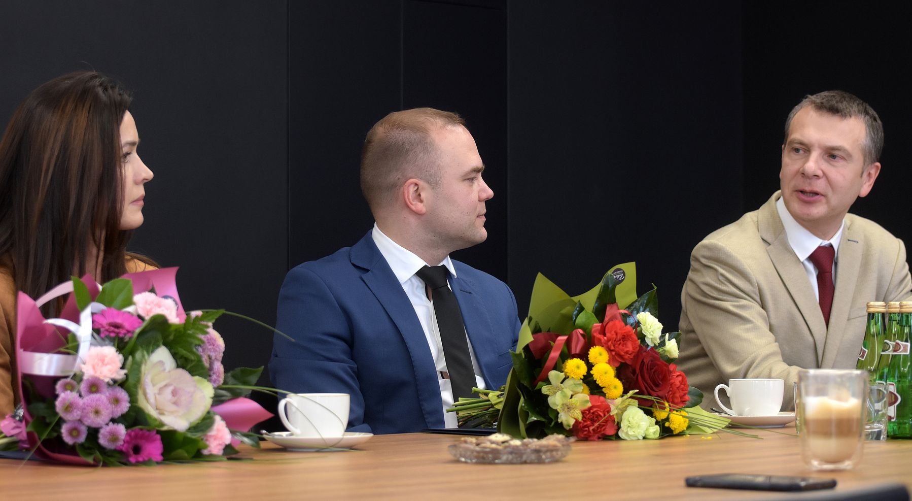 W spotkaniu wzięli udział również: dr hab. inż. Błażej Bałasz, prof. PK prorektor ds. Nauki, dr hab. inż. Tomasz Królikowski, prof. PK, prorektor ds. studenckich dr inż. Artur Wezgraj, kanclerz uczelni i dr hab. Grzegorz Przekota, prof. PK, dziekan WNE.