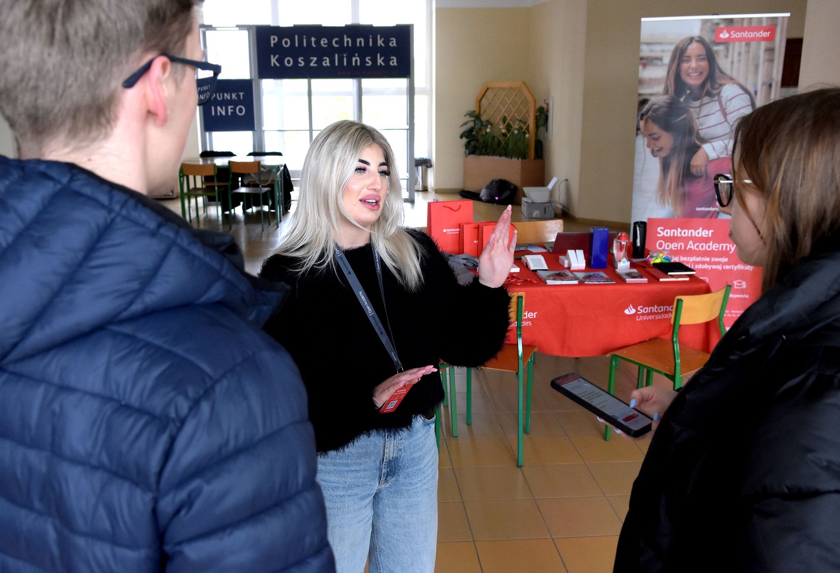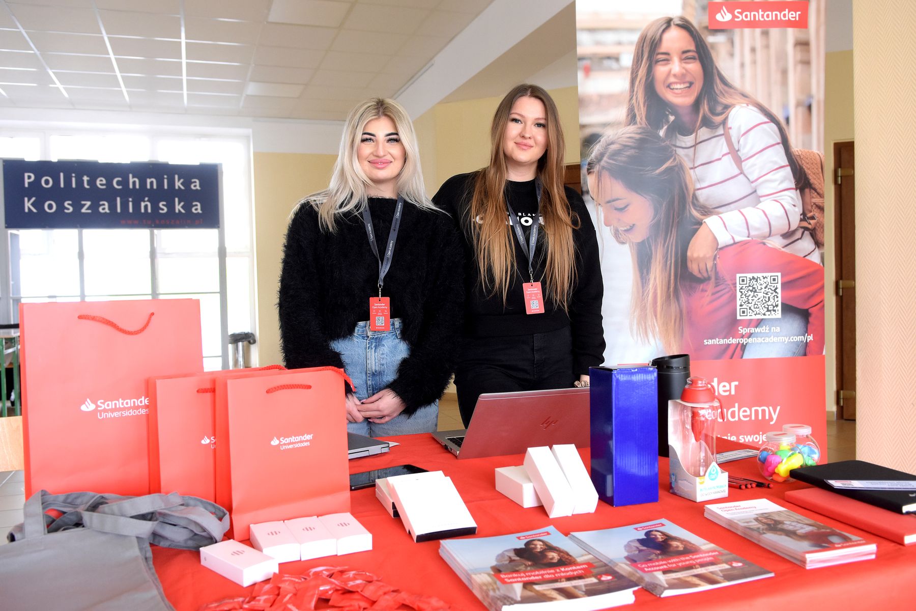 Przedstawiciele Santander Bank Polska, partnera Politechniki Koszalińskiej w zakresie realizacji programu stypendialnego Santander Universitades, w kampusach uczelni przy ulicy Kwiatkowskiego i Śniadeckich, na specjalnie zorganizowanych stanowiskach, udzielają dzisiaj (3 kwietnia br.) wszelkich informacji związanych z projektem.