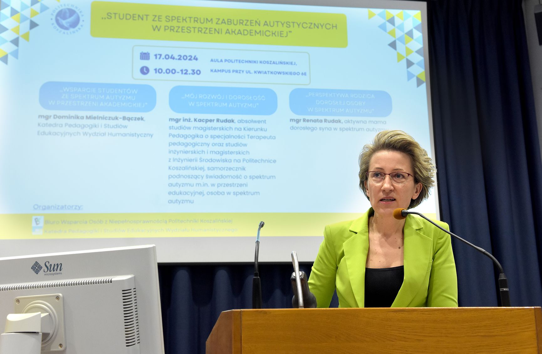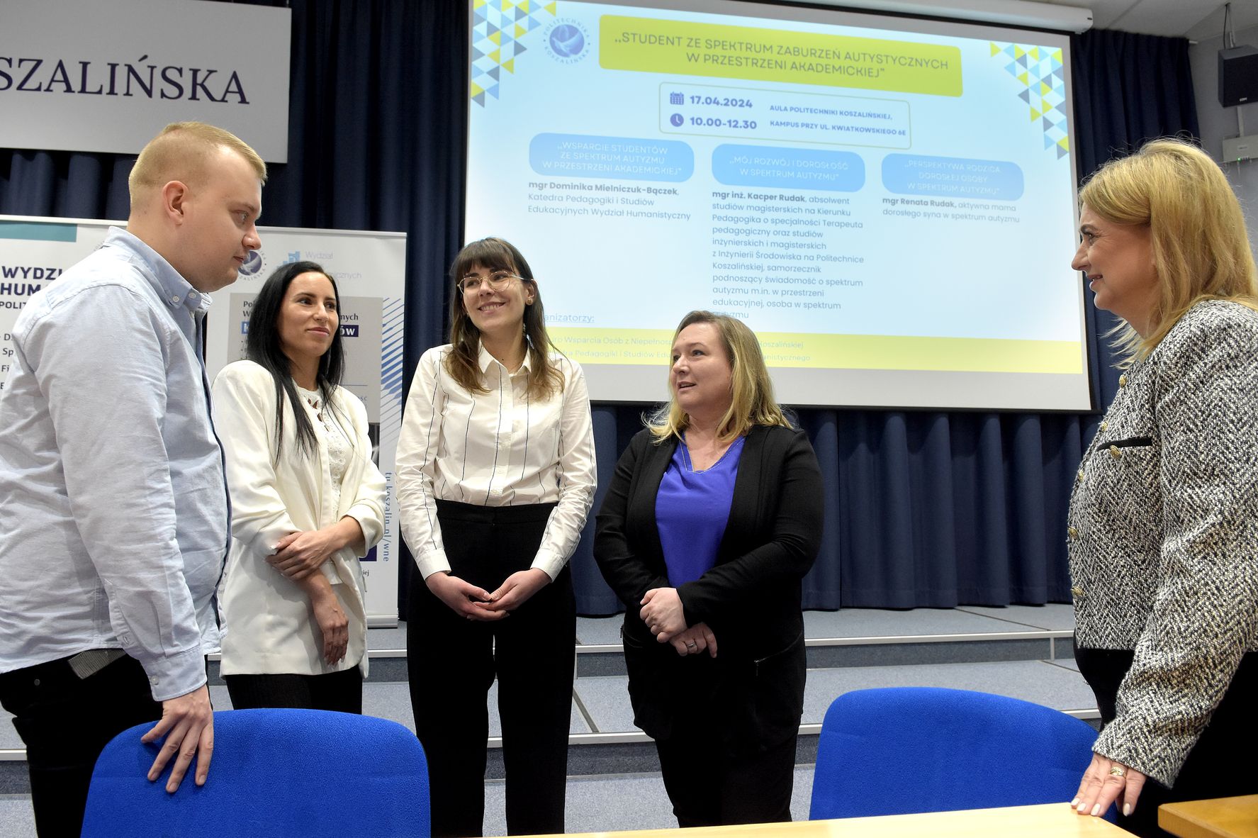 Wydarzenie było inicjatywą Biura Wsparcia Osób z Niepełnosprawnością Politechniki Koszalińskiej i Katedry Pedagogiki i Studiów Edukacyjnych Wydziału Humanistycznego Politechniki Koszalińskiej. Aby jak najlepiej przedstawić zagadnienie, zaproszono prelegentów prezentujących spektrum autyzmu z różnej perspektywy. Podczas spotkania wystąpili: Dominika Mielniczuk-Bączek z Katedry Pedagogiki i Studiów Edukacyjnych Wydziału Humanistycznego PK, Kacper Rudak - absolwent PK, reprezentant osób w spektrum autyzmu i Renata Rudak - mama Kacpra, a zarazem członkini zarządu Fundacji „Zdążyć z Miłością”.