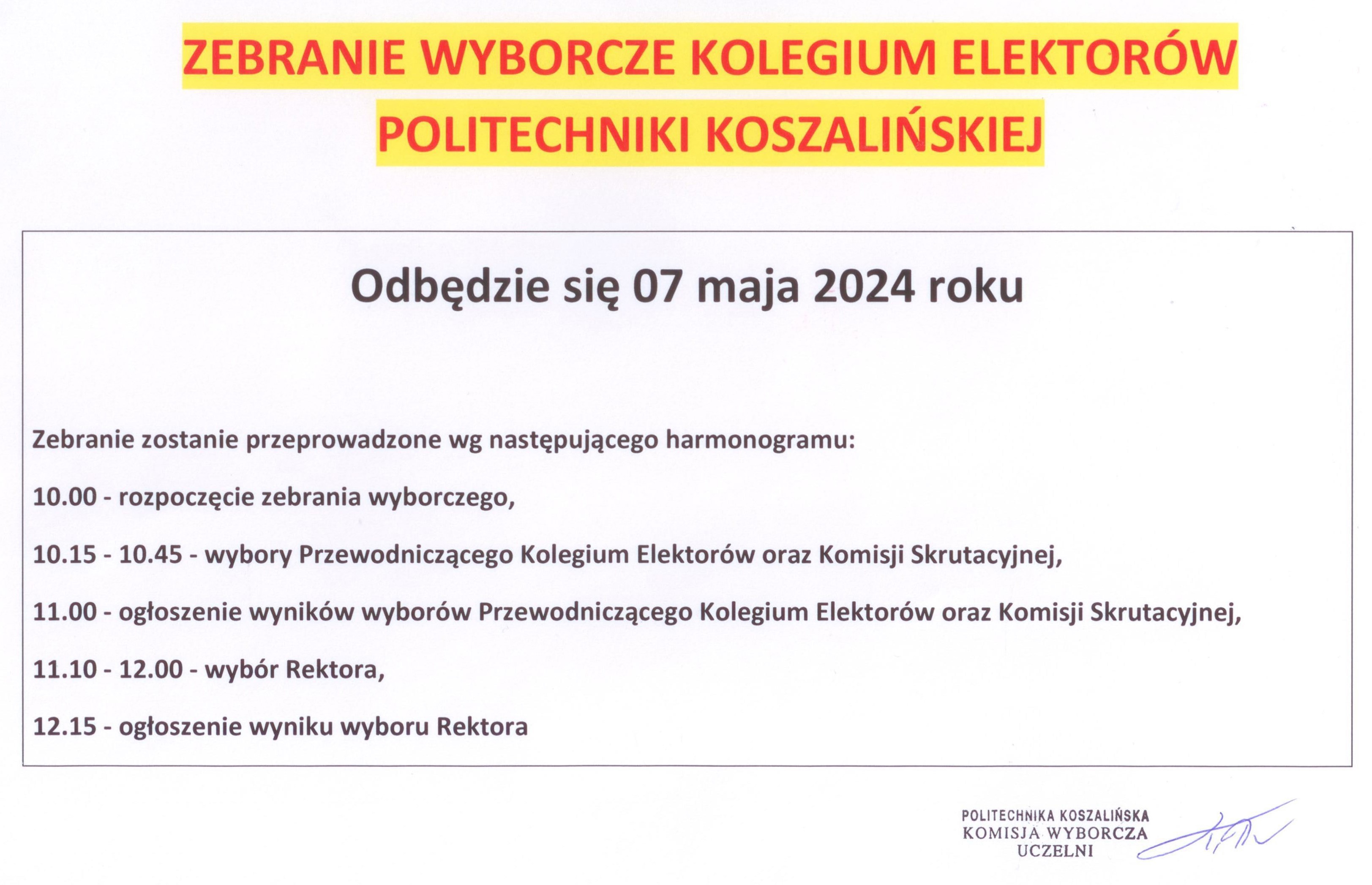 Poniżej przekazujemy informację Komisji Wyborczej Uczelni w sprawie zebrania wyborczego Kolegium Elektorów Politechniki Koszalińskiej.