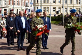 Pod pomnikiem odbyły się głównego uroczystości. Delegacje samorządów, instytucji miejskich, służb mundurowych, uczelni, szkół złożyły kwiaty. Wśród nich był przedstawiciel Politechniki Koszalińskiej. Pamiątkową wiązankę kwiatów złożył: dr hab. inż. Tomasz Królikowski, prof. PK, prorektor ds. studenckich.