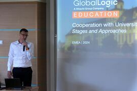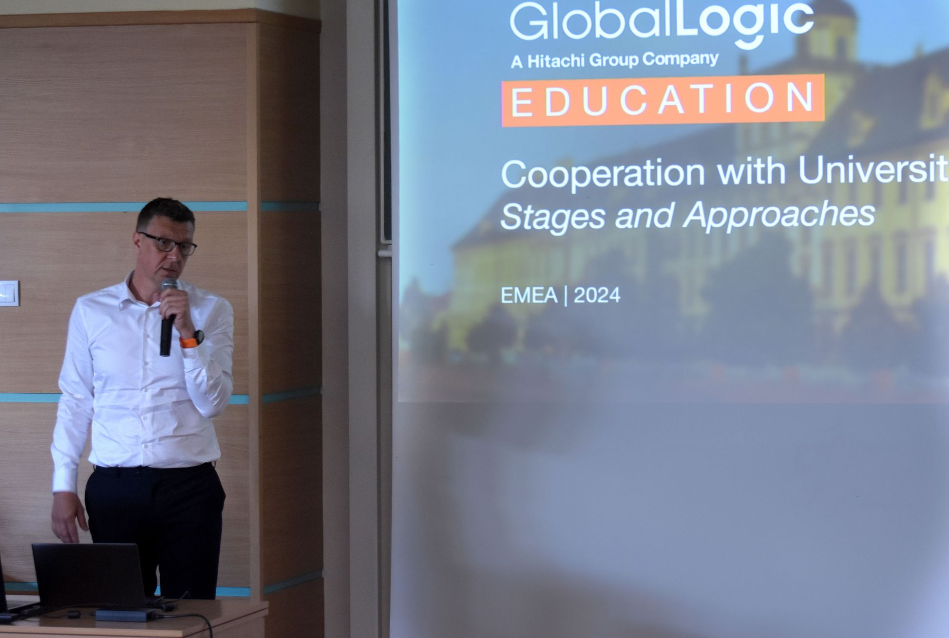 Podczas dzisiejszego panelu dyskusyjnego wystąpił Piotr Bartkiewicz, prezes GlobalLogic w Koszalinie i członek Przemysłowej Rady Konsultacyjnej EU4Dual (EU4Dual's Industry Consultative Council), a równocześnie członek Rady Uczelni, który przedstawił aspekty dotyczące współpracy z uczelniami, w tym Politechniką Koszalińską.
