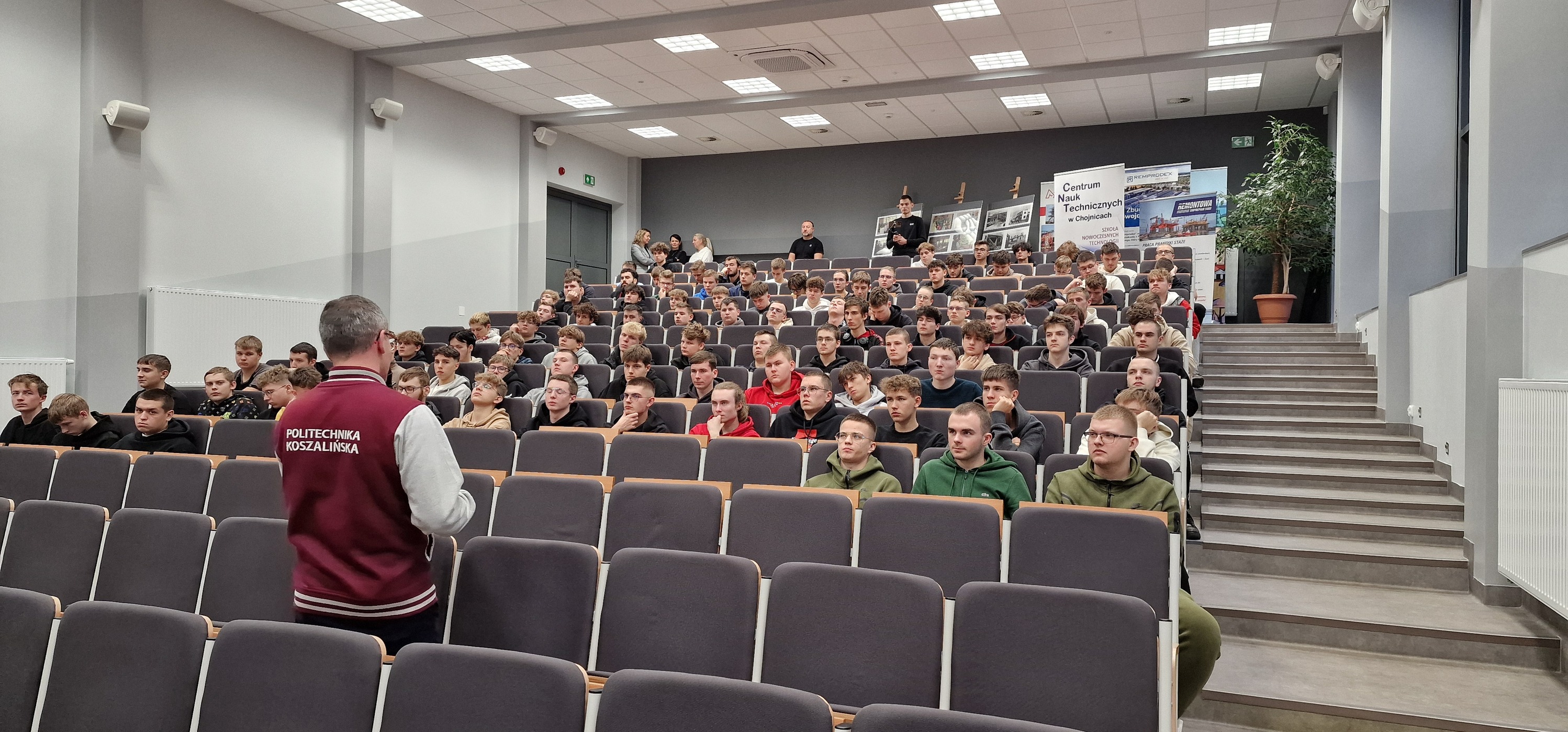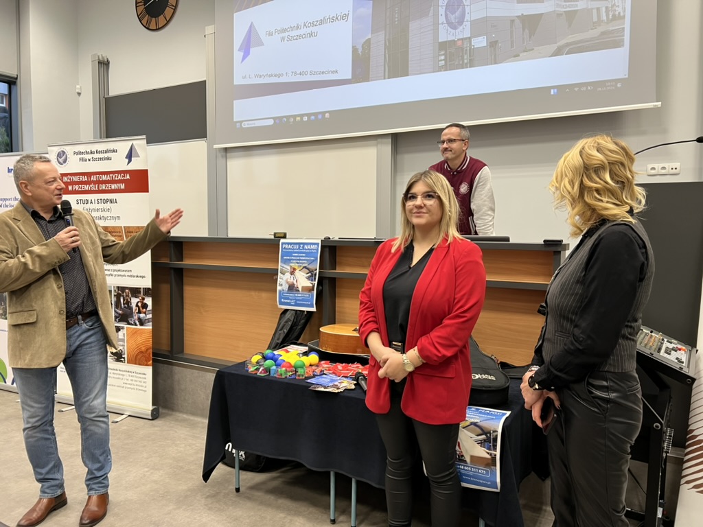 W dniu 28.11.2024 odbyło się wyjątkowe spotkanie, w którym uczestniczyli przedstawiciele Filii Politechniki Koszalińskiej w Szczecinku oraz firmy Kronospan Polska. W spotkaniu wzięli również udział uczniowie IV i V klasy Technikum nr 1 w Chojnicach. Wydarzenie to miało na celu promowanie kierunku Inżynieria i Automatyzacja w Przemyśle Drzewnym oraz omówienie możliwości współpracy w zakresie praktyk i staży dla studentów. Kronospan Polska, jako lider w branży, docenia znaczenie innowacyjnych rozwiązań w przemyśle drzewnym i jest otwarty na współpracę z naszymi studentami. Dzięki temu zyskujesz możliwość zdobycia cennego doświadczenia oraz bezpośredniego kontaktu z liderami branży.