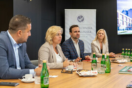 Gości przywitała prof. Danuta Zawadzka, przedstawiając profil, dorobek i strategiczne kierunki rozwoju uczelni. Późniejsza rozmowa dotyczyła możliwości współpracy międzynarodowej i wspierania innowacji na poziomie lokalnym i regionalnym. Spotkanie stanowiło platformę do wymiany doświadczeń i pomysłów.