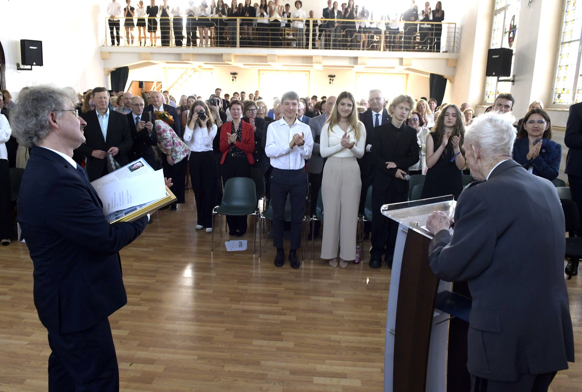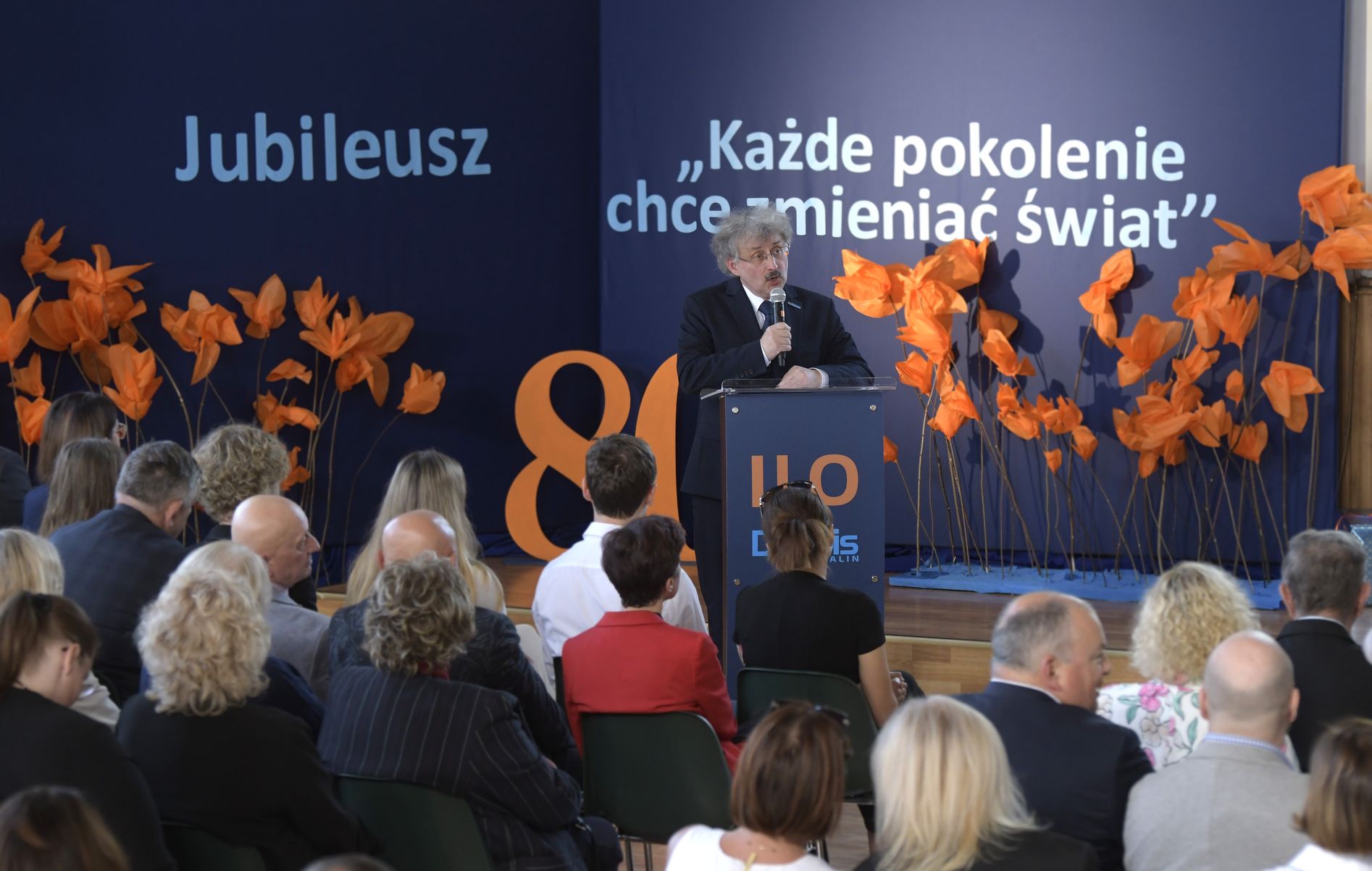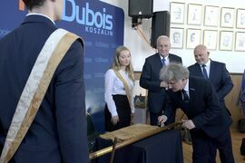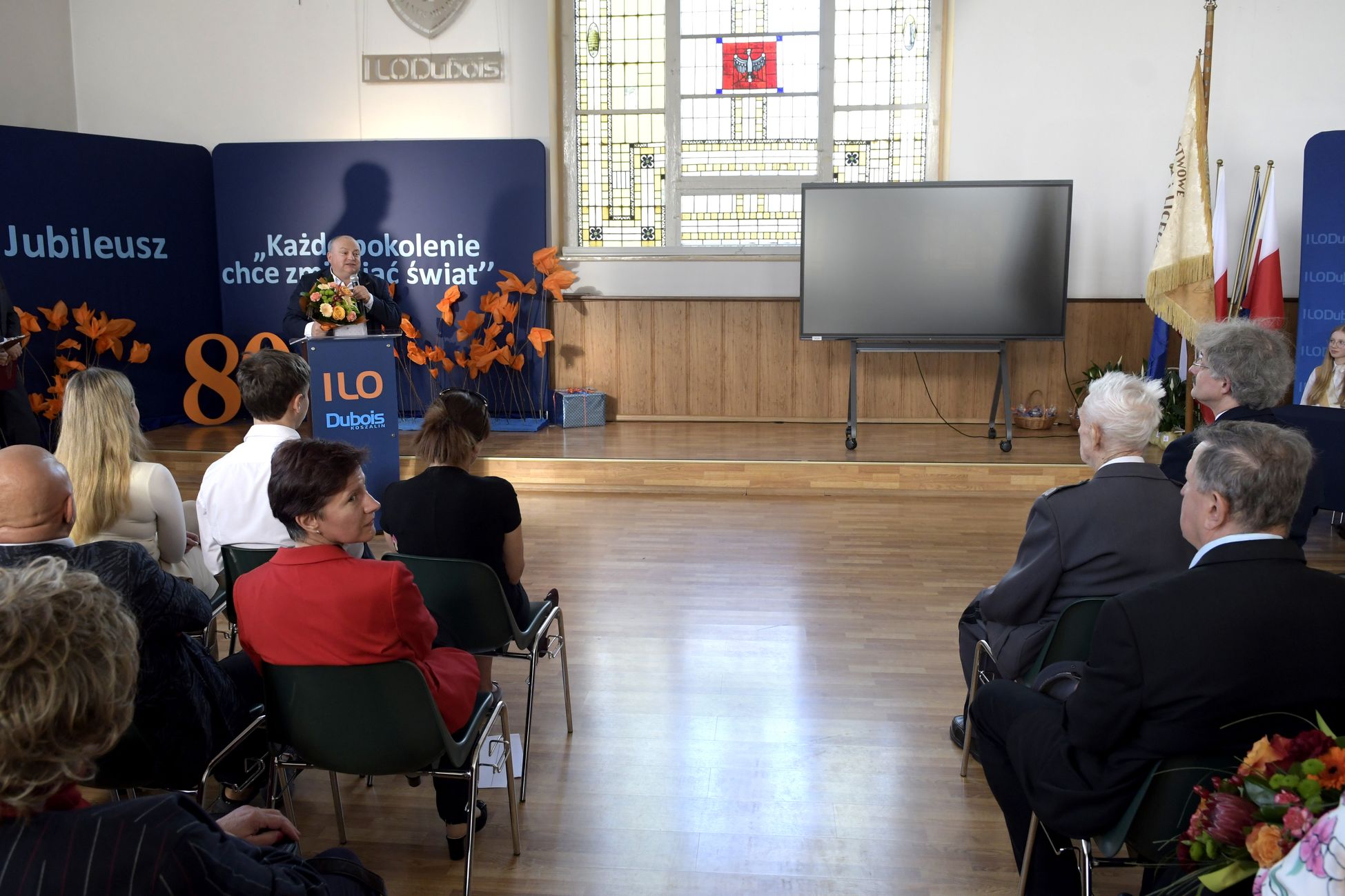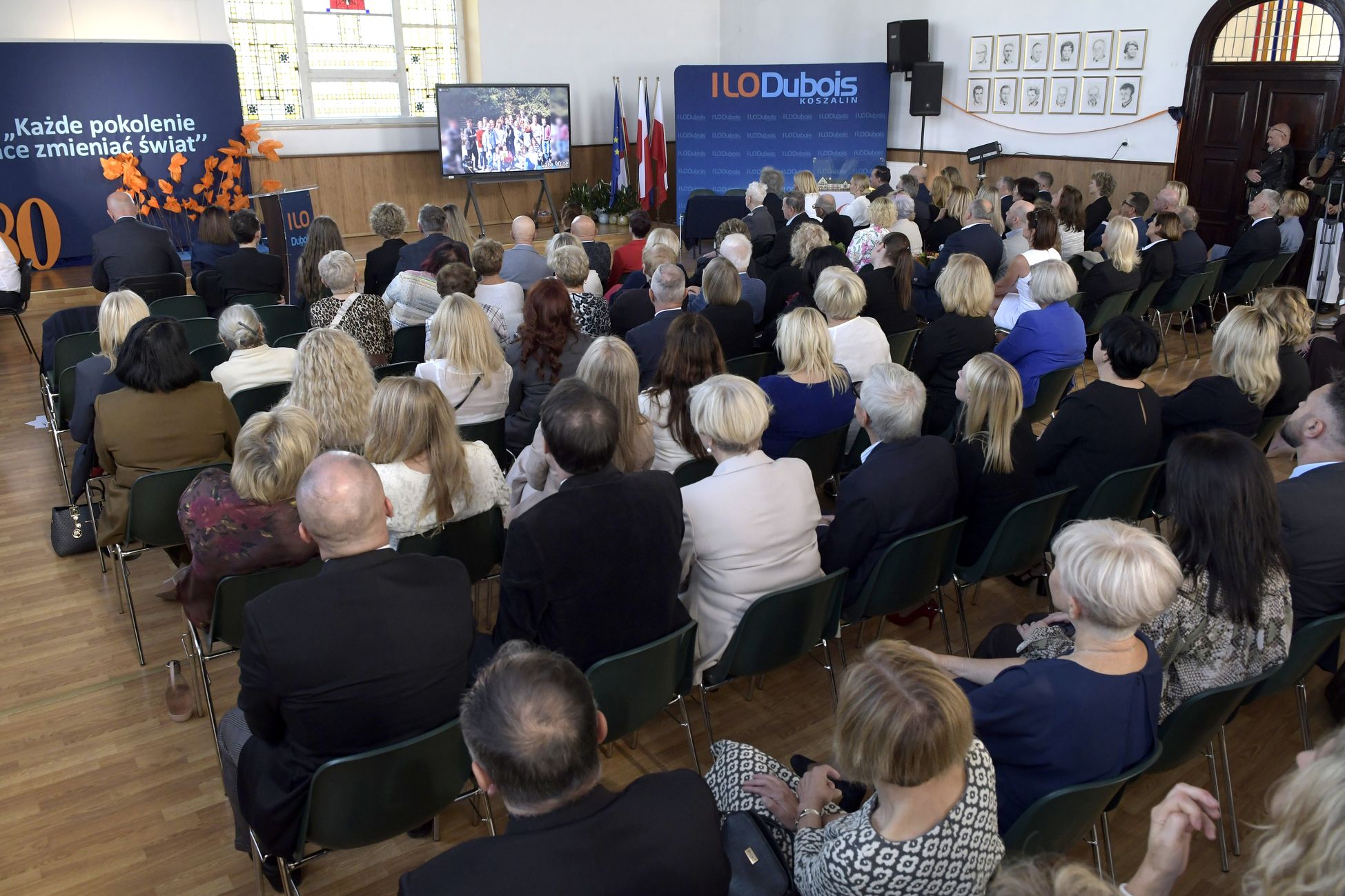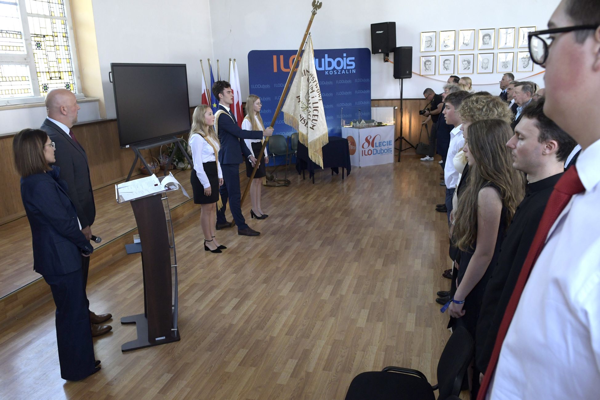 W trakcie uroczystego spotkania życzenia kolejnych okrągłych jubileuszy uczniom, nauczycielom, absolwentom i całej społeczności I LO im. Dubois złożył prorektor ds. studenckich Politechniki Koszalińskiej, dr hab. inż. Tomasz Królikowski, prof. PK. Profesor zachęcał uczniów do naśladowania najwybitniejszych absolwentów. Podkreślał, że szkoła daje możliwości realizacji pasji i pogłębiania zainteresowań. Życzył budowania karier i spełnienia zawodowych marzeń. Zachęcał przy tym do podejmowania studiów na naszej uczelni i realizacji zawodowych ambicji na miejscu, w Koszalinie.