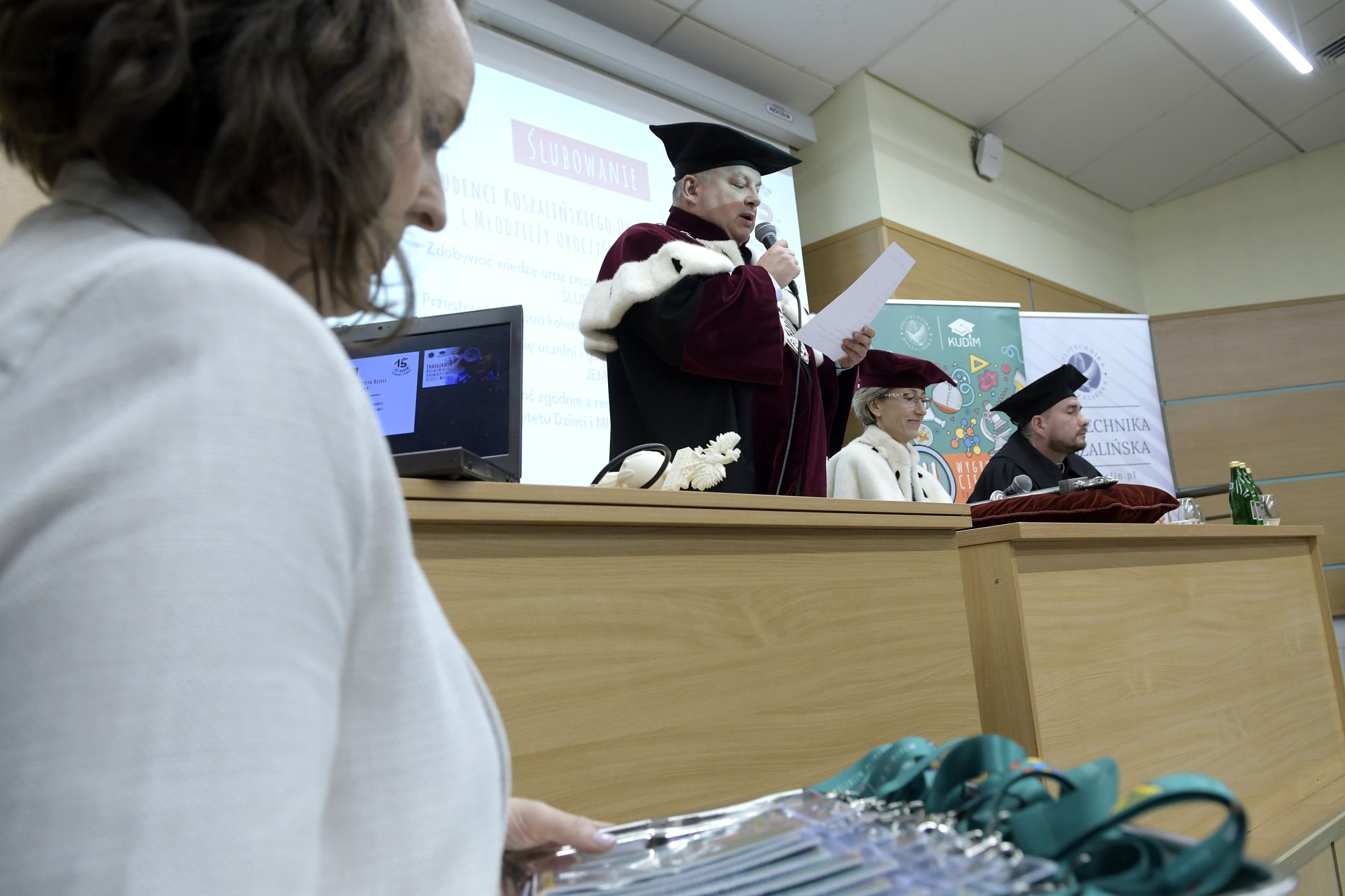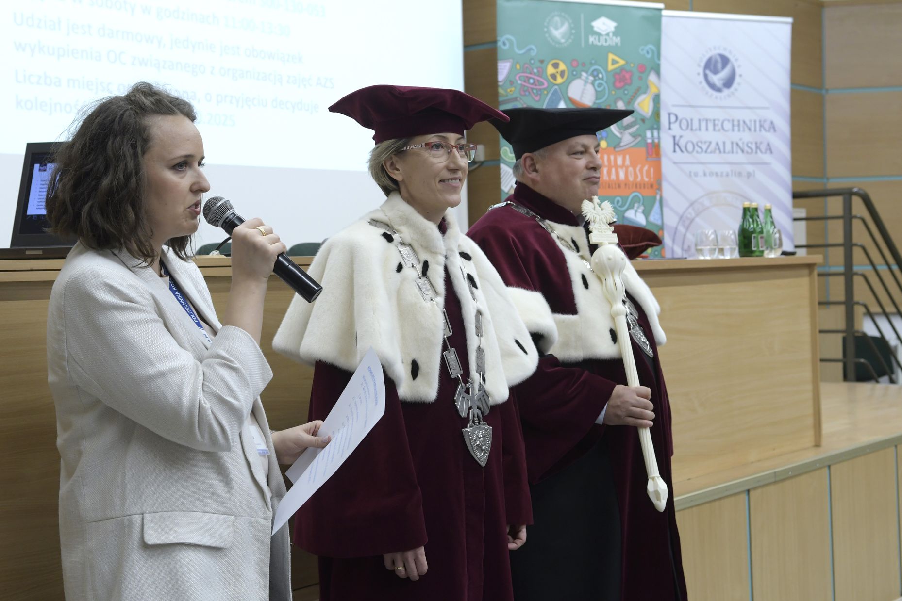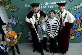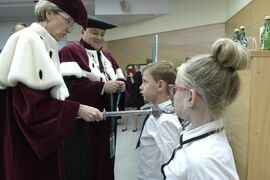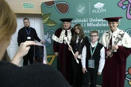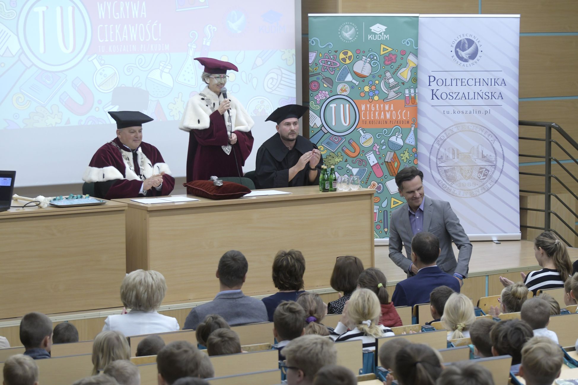 W sobotę, 4 października odbyła się inauguracja Koszalińskiego Uniwersytetu Dzieci i Młodzieży Politechniki Koszalińskiej. Dzieci w auli kampusu przy ulicy Śniadeckich przywitała dr hab. Danuta Zawadzka, prof. PK, rektor Politechniki Koszalińskiej i dr hab. inż. Tomasz Królikowski, prof. PK, prorektor ds. studenckich. Młodzież w społeczność akademicką wprowadził także dr hab. Grzegorz Przekota, prof. PK, dziekan Wydziału Nauk Ekonomicznych. Wykład na temat sportowych talentów i możliwości jakie drzemią w młodym pokoleniu przedstawił trener reprezentacji Politechniki Koszalińskiej w koszykówce, mgr Michał Sugier, podczas którego ogłosił powołanie nowego klubu koszykarskiego Politechniki Koszalińskiej TU Polibasket. Uroczystość uświetnił występ Dziecięcej Akademii Chóralnej Pomerania Cantat w Koszalinie. Chór po immatrykulacji odśpiewał hymn studencki, Gaudeamus igitur. Głównym celem Uniwersytetu jest inspirowanie młodych umysłów do odkrywania świata i rozwijania pasji w różnych dziedzinach – od nauk ścisłych, przez technikę i przyrodę, aż po sztukę i sport. Uczelnia prowadzi zajęcia w dwóch grupach wiekowych: w grupie dziecięcej (klasa I-V) i młodzieżowej (klasa VI-VIII). W roku akademickim 2025/2026 w zajęciach KUDiM-u bierze udział około 250 dzieci w wieku od 6 do 15 lat. Młodzi studenci uczestniczą w wykładach z różnych dziedzin – od biologii i chemii, przez fizykę i mechanikę. Są spotkania z ciekawymi ludźmi, warsztaty i zajęcia w laboratoriach. Od 2016 roku, dzięki wsparciu firmy Kronospan, oddział Koszalińskiego Uniwersytetu Dzieci i Młodzieży Politechniki Koszalińskiej funkcjonuje także w Szczecinku.
