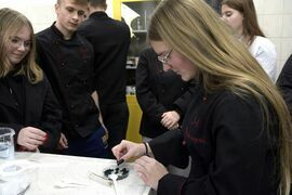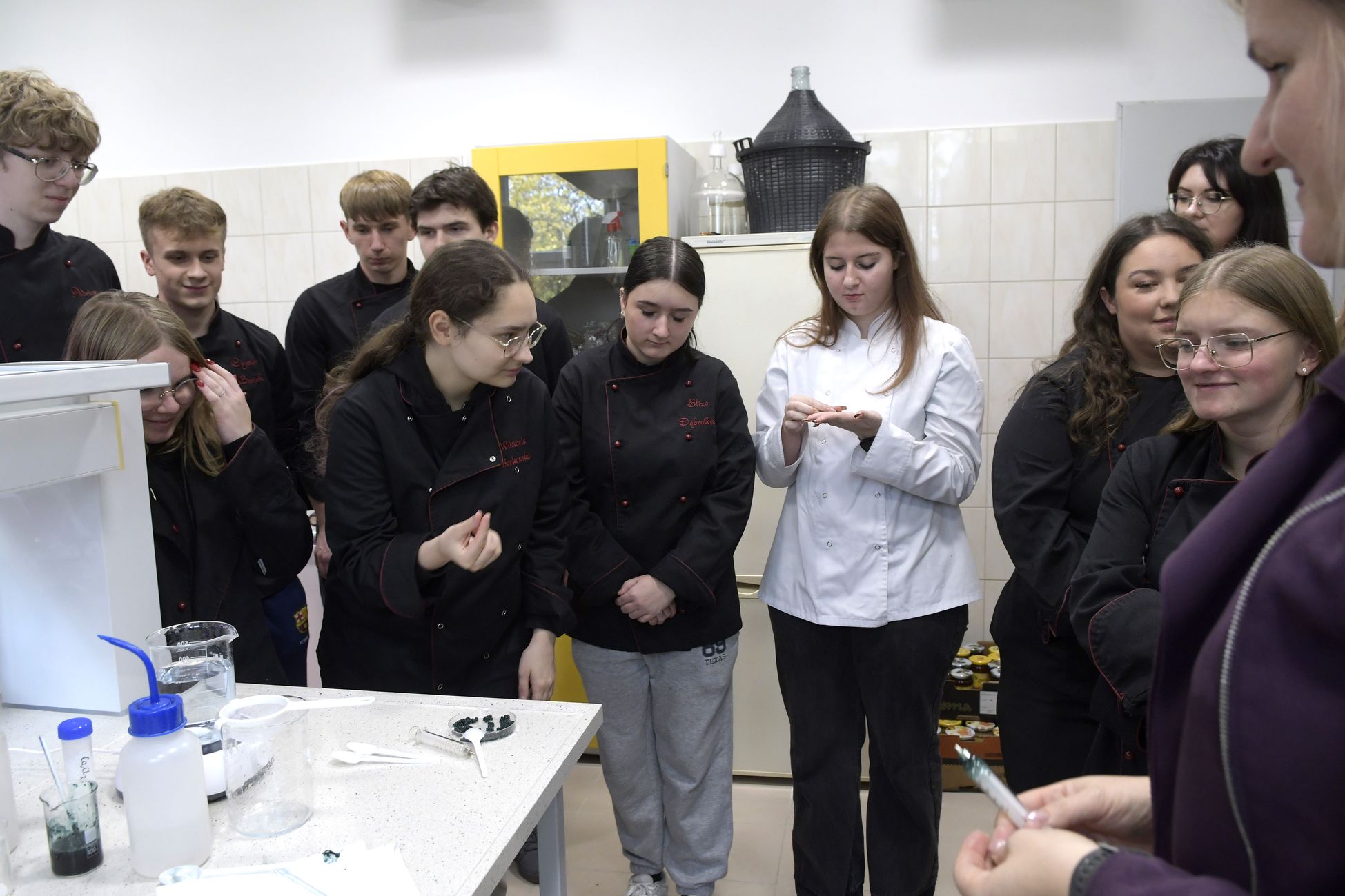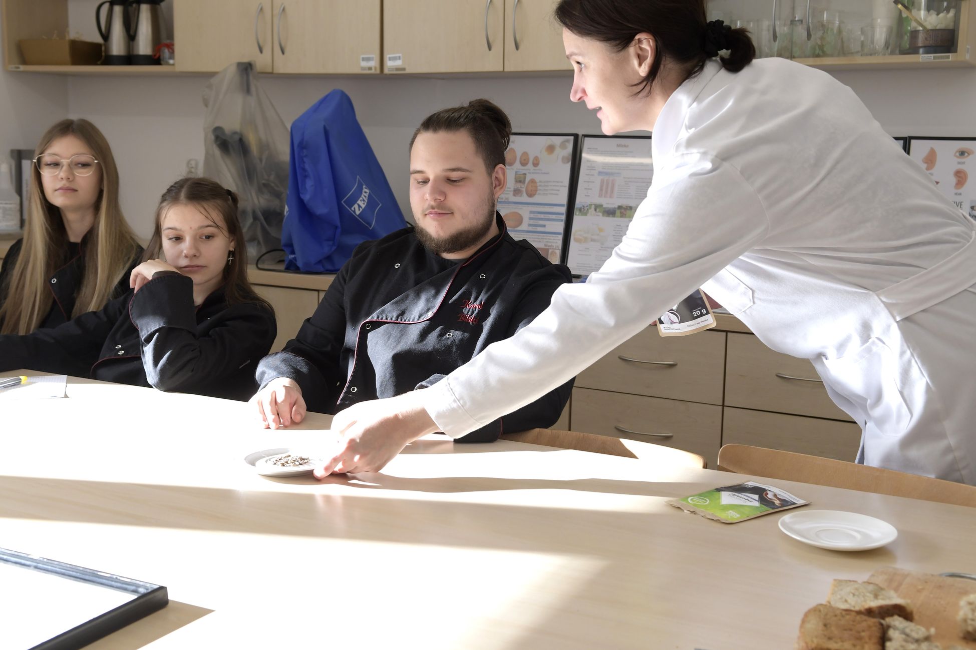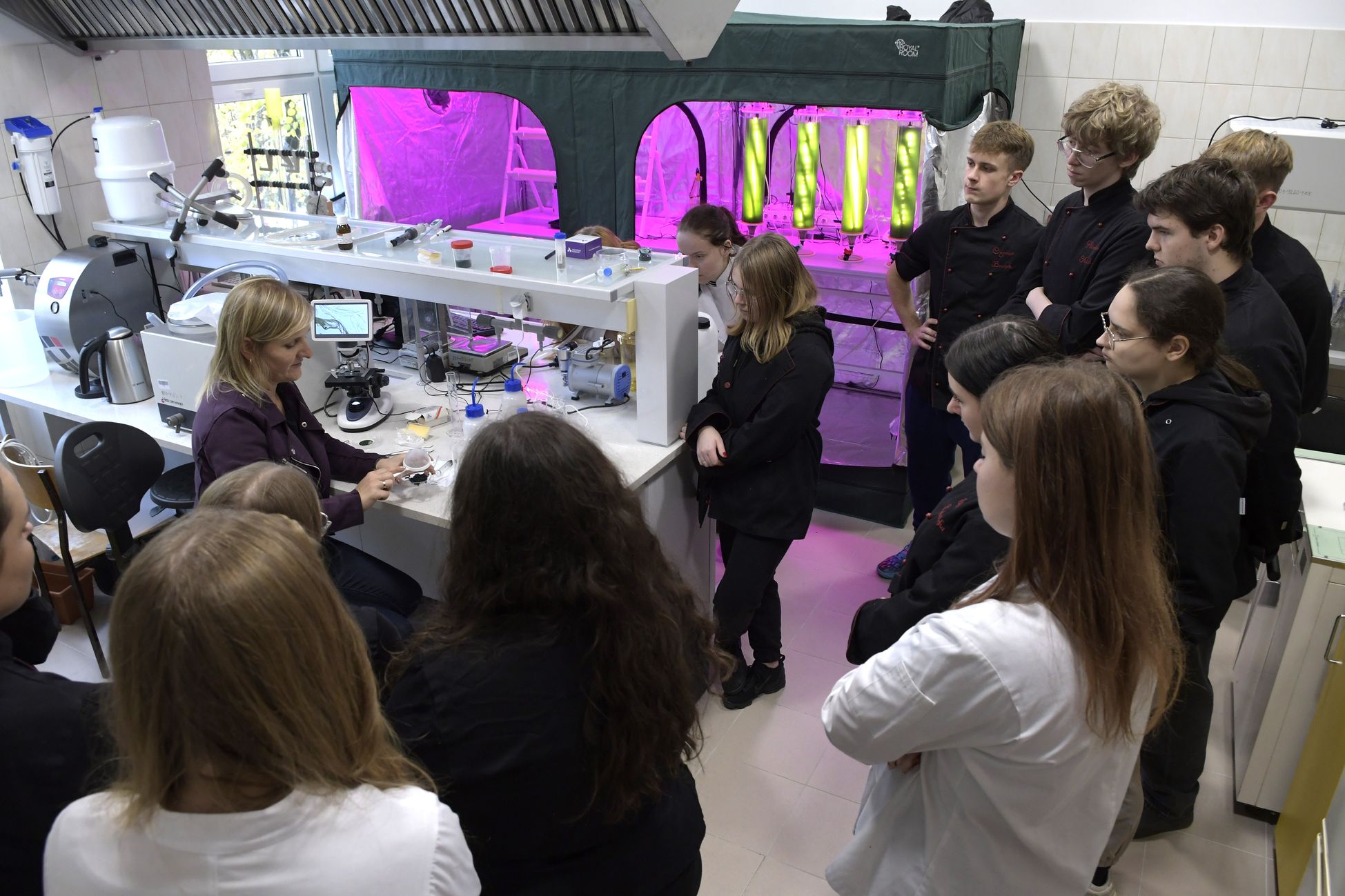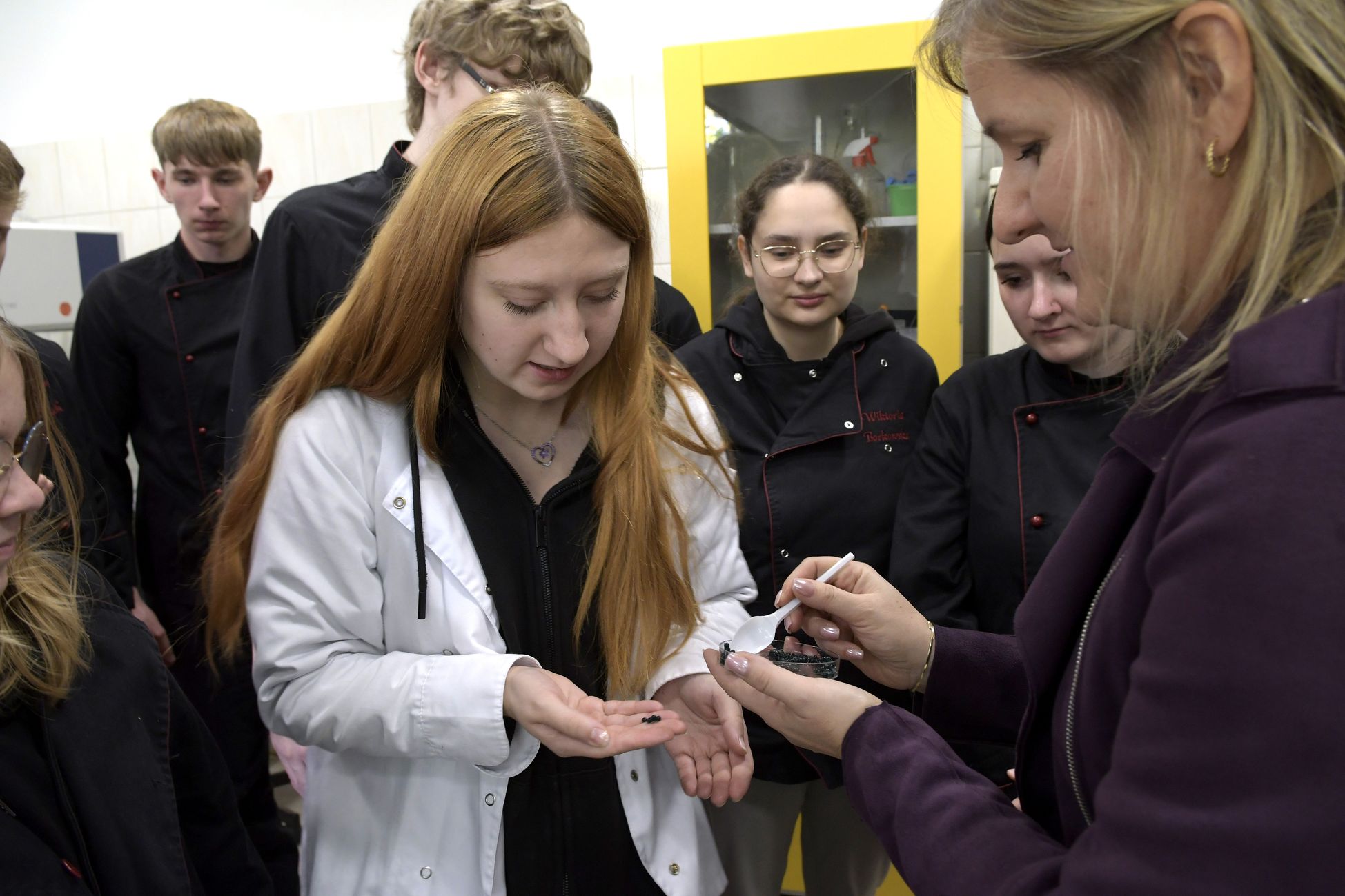 We wtorek 28 października 2025 roku uczniowie z Zespołu Szkół Agrotechnicznych w Słupsku uczestniczyli w wykładach i zajęciach praktycznych na Naszym Wydziale. Dr hab. inż. Zdzisław Domiszewski zaprezentował wykład dotyczący tłuszczy jadalnych „Masło czy margaryna”. Po wykładach uczniowie wraz z dr hab. inż. Małgorzatą Smugę-Kogut podziwiali świat mikroalg, a z dr inż. Sylwią Mierzejewską zapoznali się z technologią wypieku i oceną punktową pieczywa. Tajniki metod analizy żywności odkrywali z dr hab. inż. Joanna Piepiórka – Stepuk oraz mgr inż. Aldoną Bać.