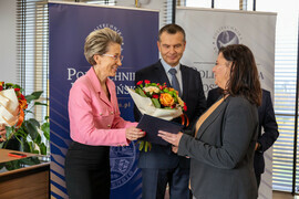 Dr Agnieszka Strzelecka jest cenioną ekonomistką z licznymi publikacjami na koncie, promotorką, a lakże lauretką wielu nagród m.in.: Medal Komisji Edukacji Narodowej, Nagroda Lidera Nauki, Nagroda Lidera Kształcenia czy Nagroda za dorobek naukowy i osiągnięcia organizacyjne. Autorka książek: "Dochody rolnicze: determinanty - zróżnicowanie - stabilizacja" i "Determinanty oszczędności rolniczych gospodarstw domowych", na stanowisku prodziekan zastąpiła dr Agnieszkę Jakubowską, która na spotkaniu otrzymała z rąk Jej Magnificencji prof. Danuty Zawadzkiej list gratulacyjny i moc podziękowań.