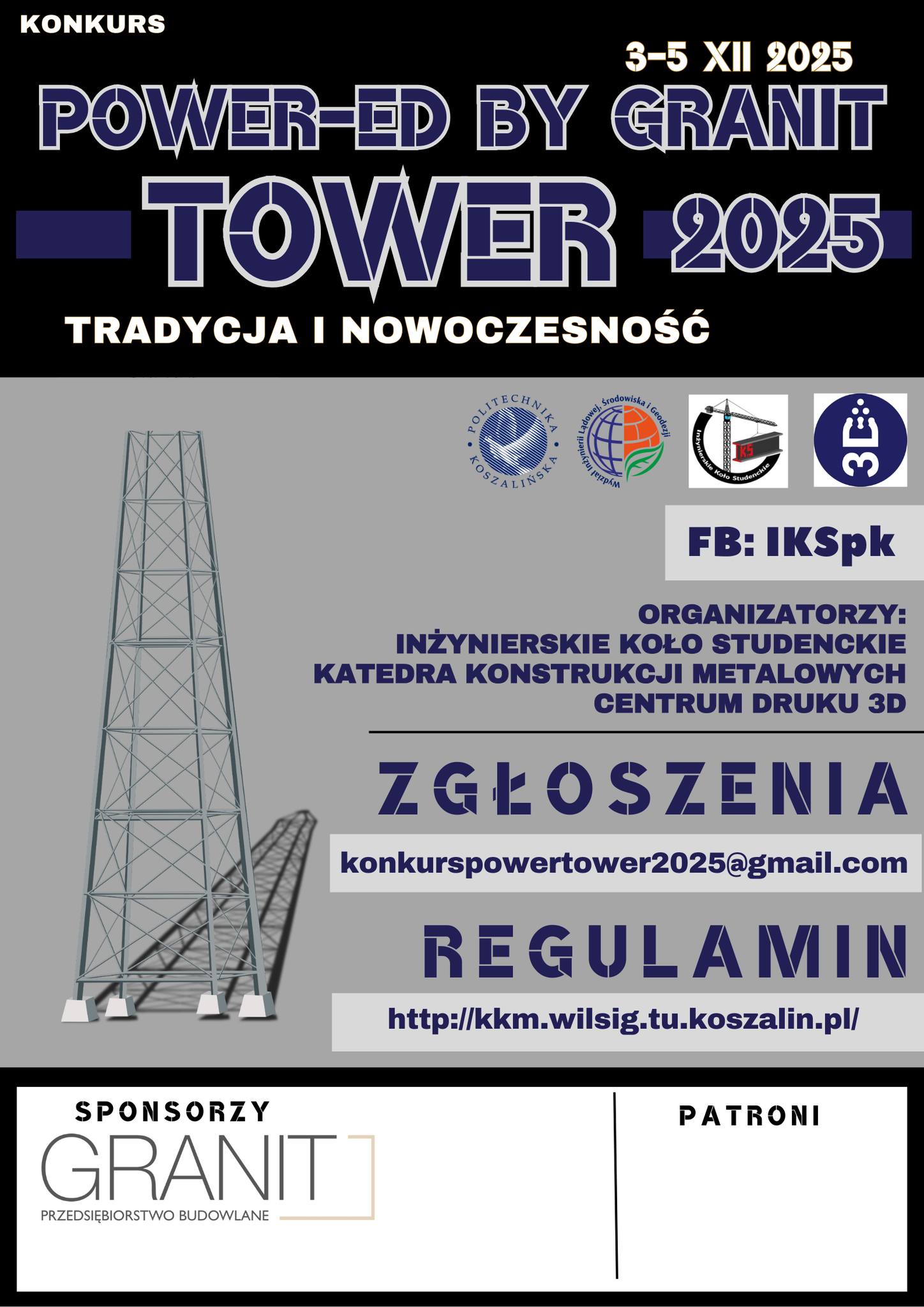 Już niebawem (4 i 5 grudnia 2025 r.) dziewiąta edycja, organizowanego na Politechnice Koszalińskiej, widowiskowego konkursu na najlepszą konstrukcję wieży. W tym roku konkurs odbywa się pod nazwą Power-ed By Granit Tower 2025.
