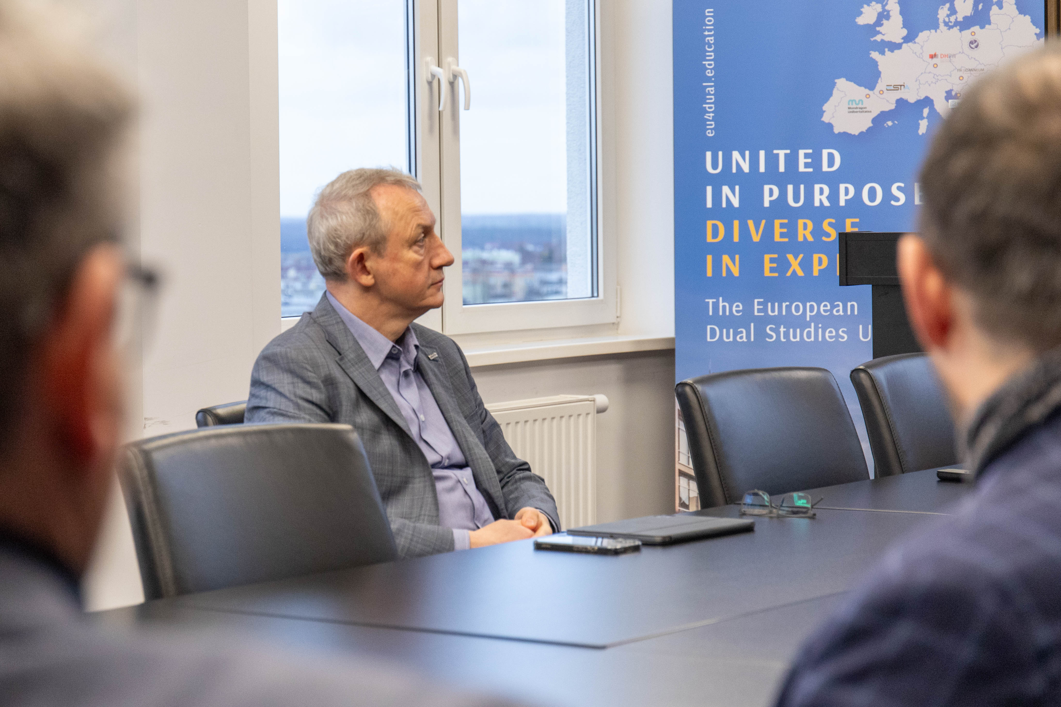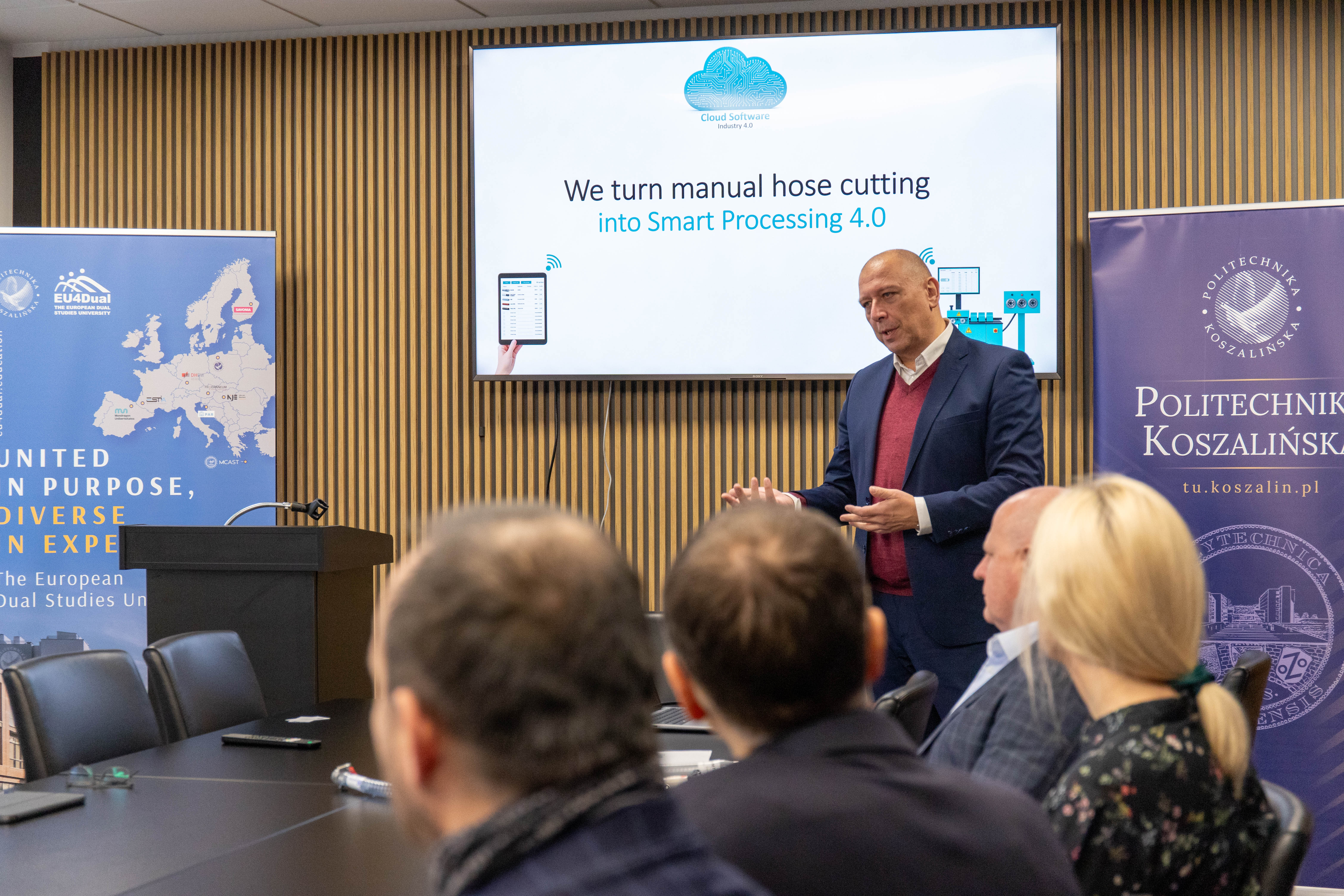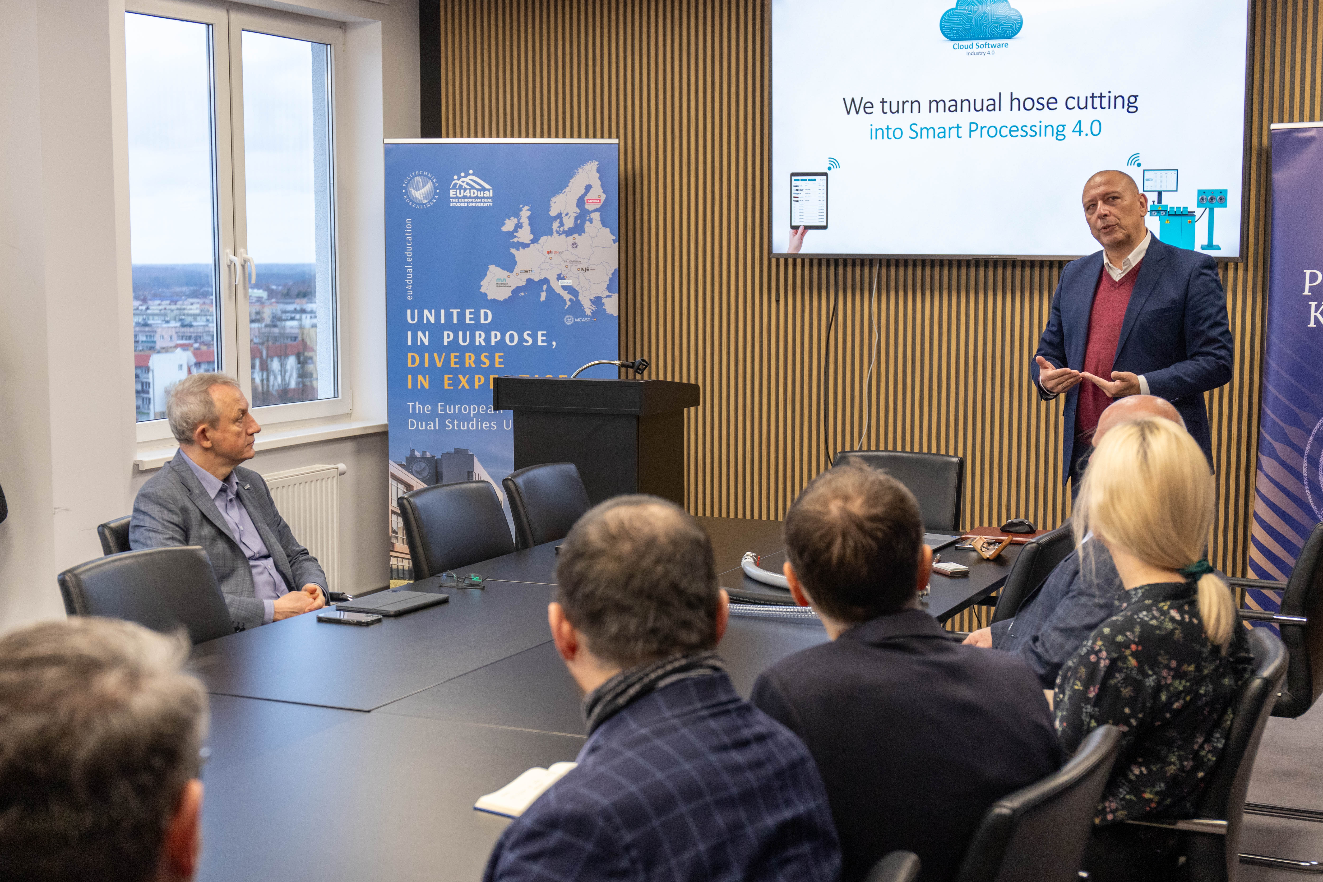 W spotkaniu wzięli udział pracownicy naukowi reprezentujący Wydział Inżynierii Mechanicznej i Energetyki, Wydział Nauk Ekonomicznych, Wydział Elektroniki i Informatyki, a także Wydział Inżynierii Lądowej, Środowiska i Geodezji. Rozmawiano o możliwości nawiązania współpracy w celu opracowania wieloletniego planu rozwoju działalności firmy w idei Przemysłu 4.0. Chodzi m.in. o system zarządzania procesem produkcji i kontroli jakości.