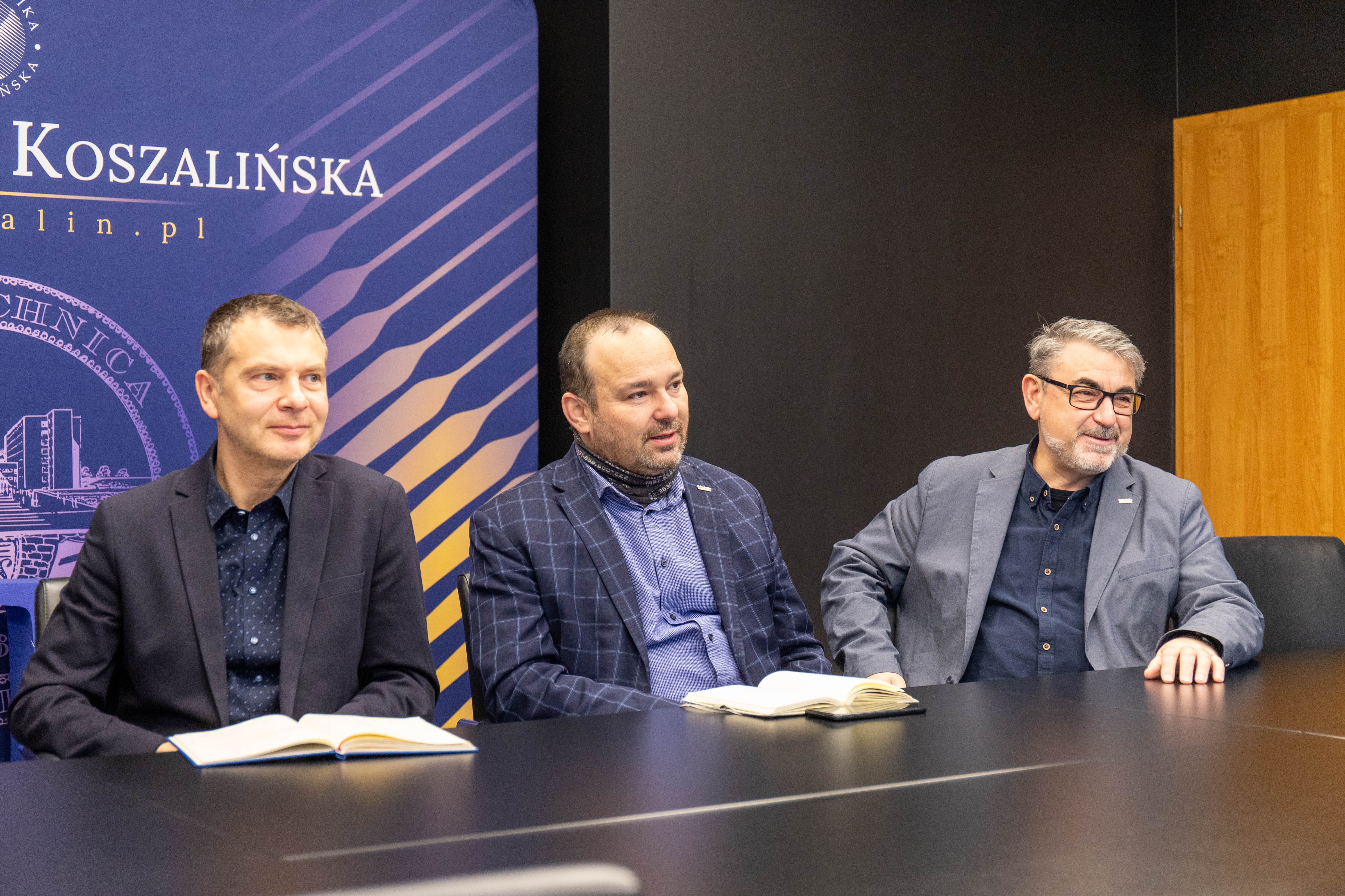 Nasza uczelnia konsekwentnie buduje relacje z przedsiębiorcami. W piątek (14 listopada 2025 r.) gośćmi Politechniki Koszalińskiej byli przedstawiciele słupskiej spółki Eko Industrie. Na zaproszenie prorektora ds. nauki dr. hab. inż. Błażeja Bałasza, prof. PK naszą uczelnię odwiedzili: właściciel firmy Jerzy Bury oraz prezes zarządu Krzysztof Krawczyk.