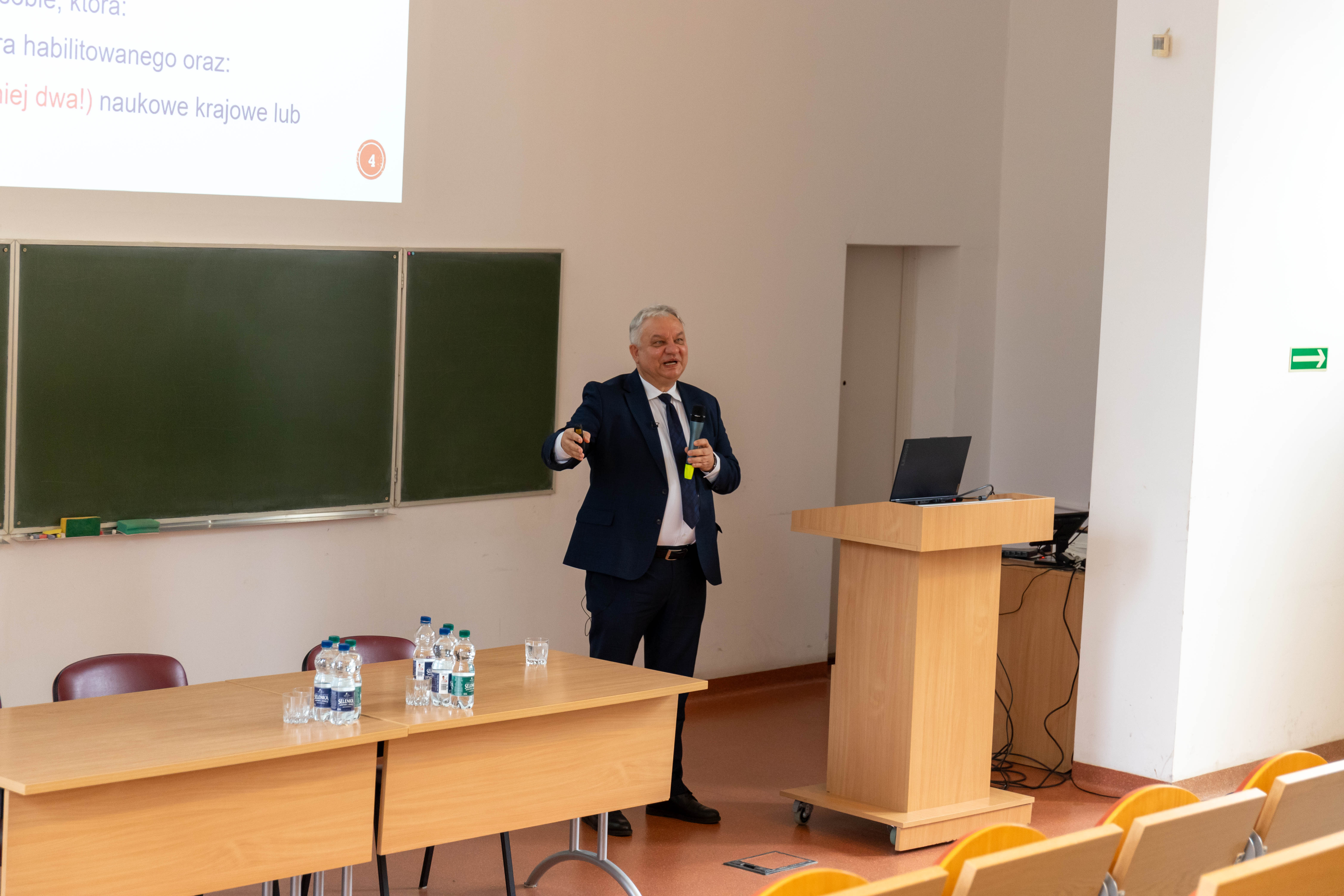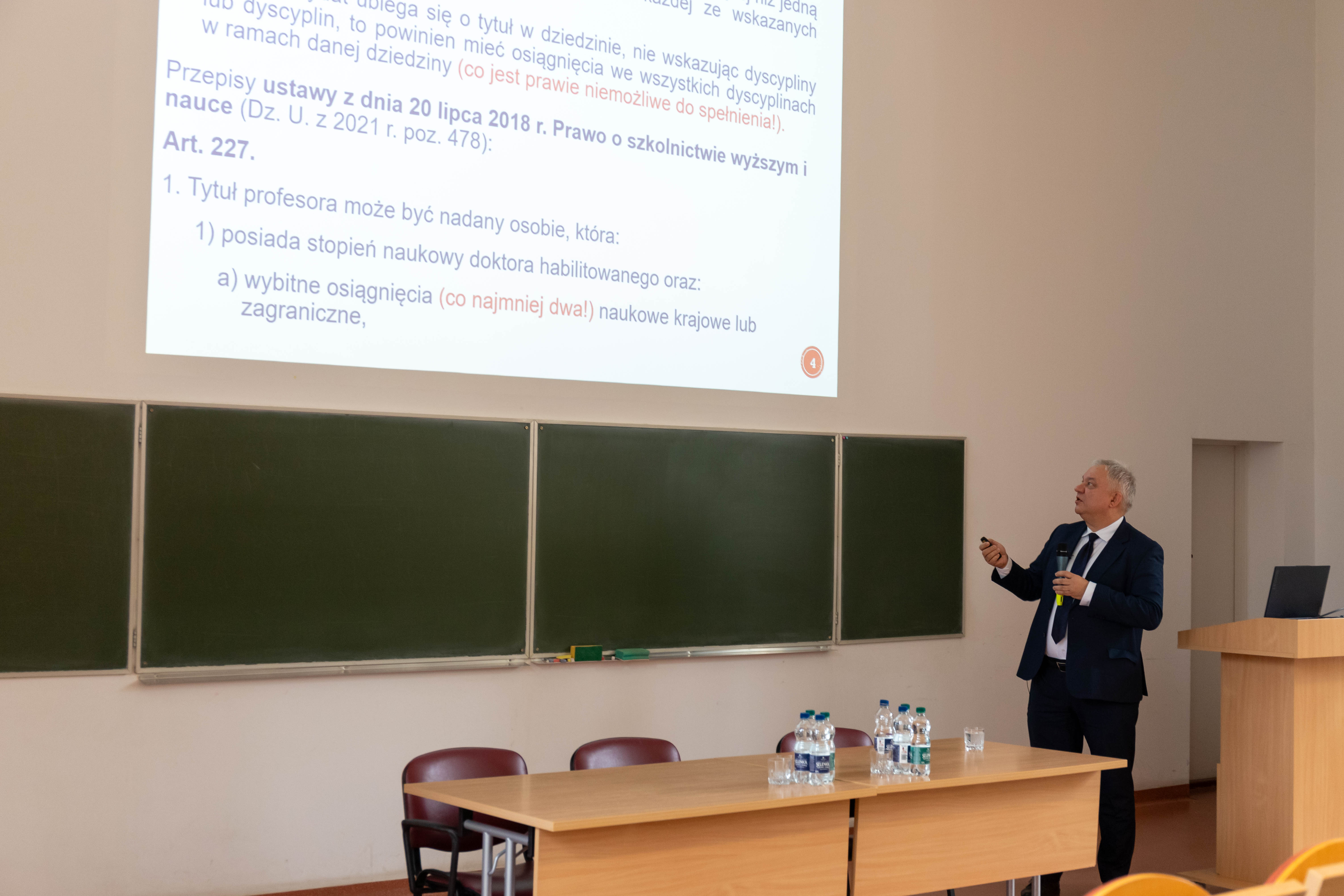Członek Rady Doskonałości Naukowej w Zespole Nauk Inżynieryjno-Technicznych w zakresie dyscypliny naukowej Inżynieria Mechaniczna, na podstawie ustawy "Prawo o szkolnictwie wyższym i nauce" tłumaczył kryteria nadania tytułu. Wyjaśnił też jakie są wymagania, wyjątkowe przypadki, osiągnięcia wybitne, opinie i uzasadnienia w drodze do zdobycia np. profesury czy stopnia doktora hablitowanego. Profesor Andrzej Seweryn przybliżył czym zajmuje się Rada Doskonałości Naukowej. Przeszedł także przez ścieżkę od złożenia wniosku do RDN przez wgląd do dorobku naukowego, przez opłaty, oceny, aż do finalnej decyzji Prezydenta RP.
