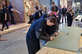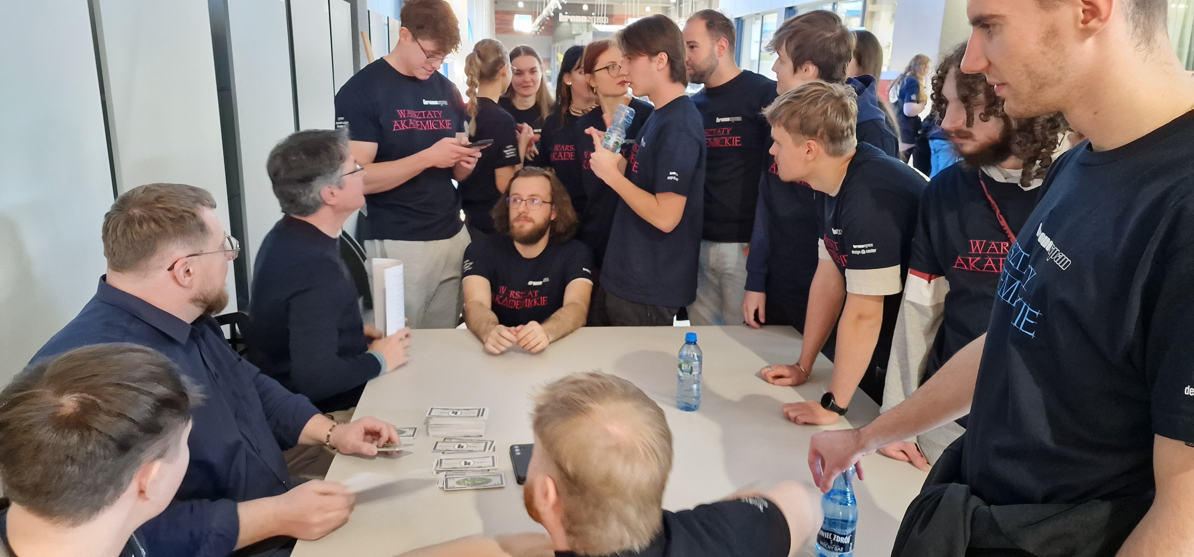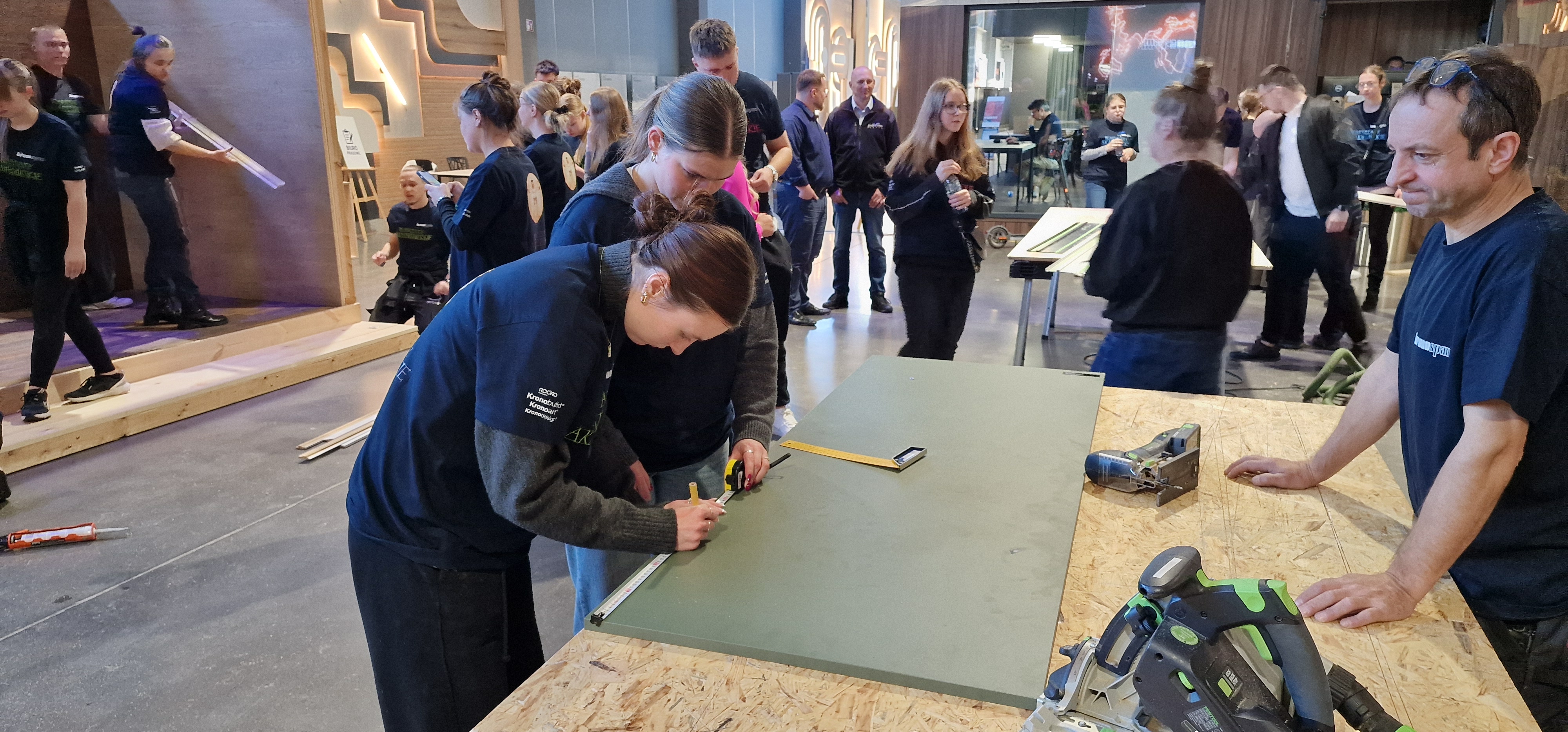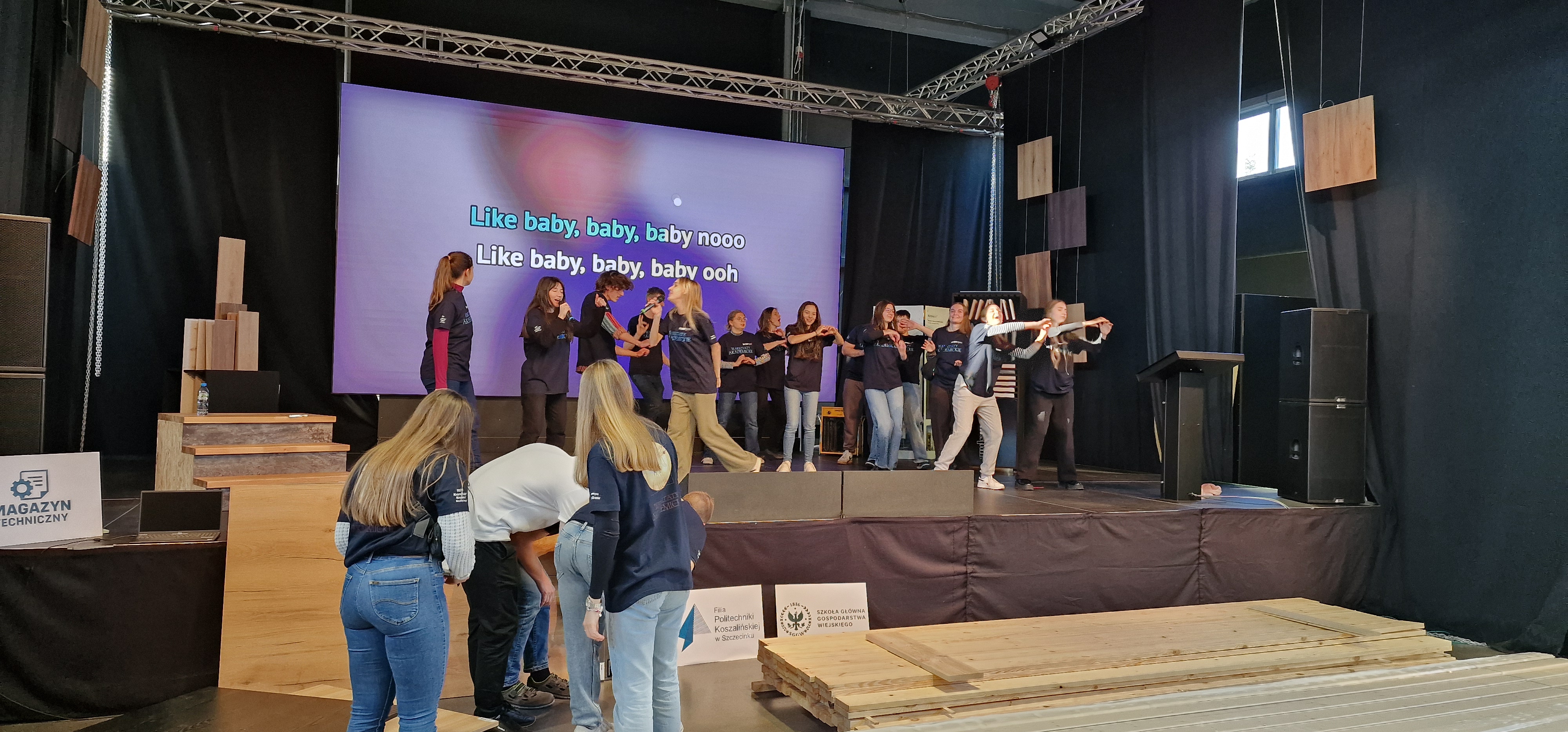 W budynku Krono Design Center w dniach 21 i 22 listopada odbyły się dwudniowe Warsztaty Akademickie, w których udział wzięli studenci SGGW w Warszawie, UTH w Warszawie, Uniwersytytu Przyrodniczego w Poznaniu, Politechniki Morskiej w Szczecinie i oczywiście studenci Filii PK w Szczecinku. Efektem prac studentów był zabudowany boks wraz z jedną ze ścian zewnętrznych z materiałów zakupionych przez studentów. Środki na zakupy, tzw. Kronosy, studenci zarabiali w piątek inwestując na minigiełdzie oraz w sobotę, wykonując przeróżne zadania (np. zespołowe Karaoke). Jesteśmy bardzo dumni, ponieważ zespół, w skład którego wchodzili nasi studenci - Magda Biernacka, Kuba Szuba, Bohdan Hladun i Kuba Daszkiewicz zdobył pierwsze miejsce. Zabawa była doskonała a za wzorową organizację dziękujemy firmie Kronospan.