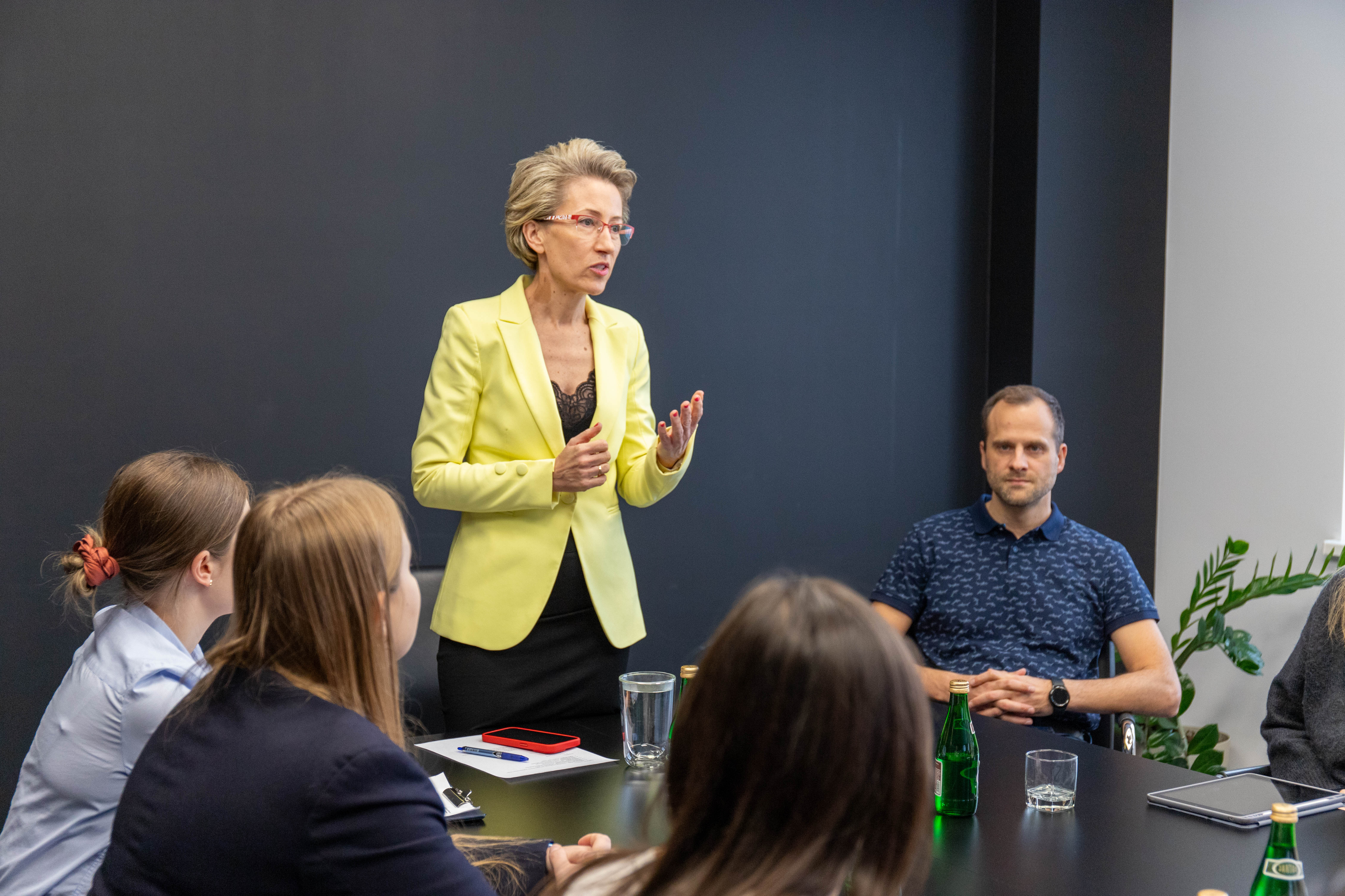Prof. Danuta Zawadzka pogratulowała studentom zaangażowania i zaznaczyła: „Jest to bardzo bliskie mi spotkanie, ponieważ nadaje się do pokazywania jako „dobre praktyki”. Jest to swoisty program talentowy, gdzie studenci rozwiązują realne problemy w firmie. Uważam, że trzeba uwierzyć w pokolenie „Z”, bo doświadczenia które zdobyli, z pewnością zaprocentują. Zdecydowanie pokazujemy ten i inne projekty stażowe podczas spotkań w ramach sojuszu EU4Dual".