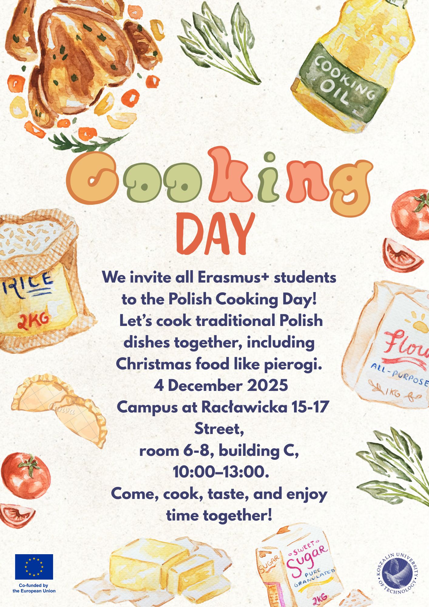 Po raz kolejny pracownicy Katedry Procesów i Urządzeń Przemysłu Spożywczego wraz z przedstawicielami Biura Mobilności Międzynarodowej odpowiedzialnymi za obsługę programu Erasums+ organizują w murach Wydziału Inżynierii Mechanicznej i Energetyki COOKING DAY.
