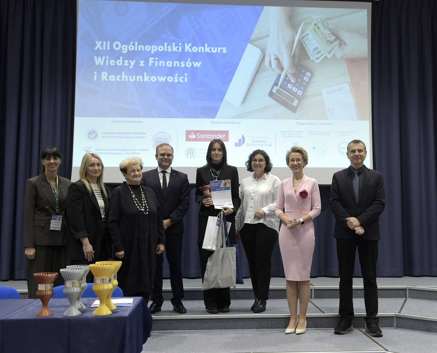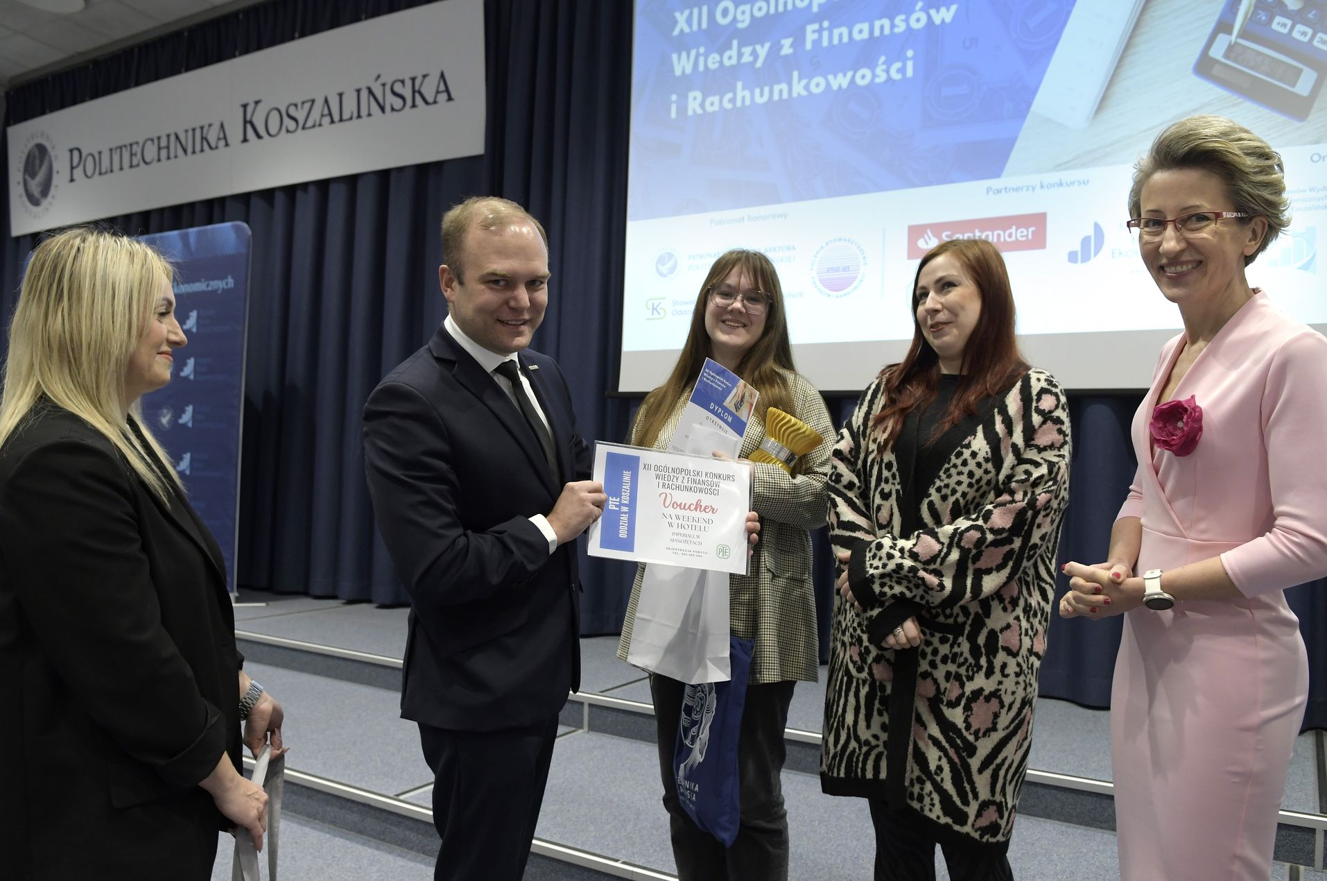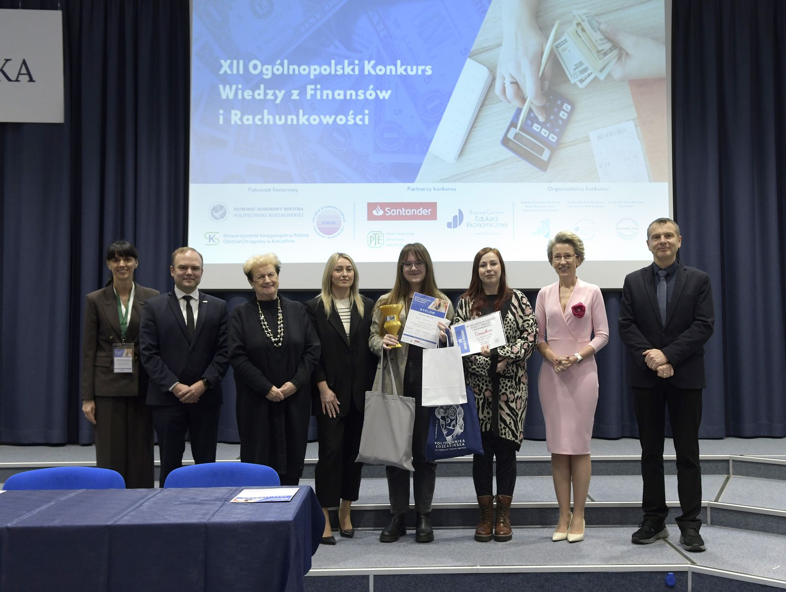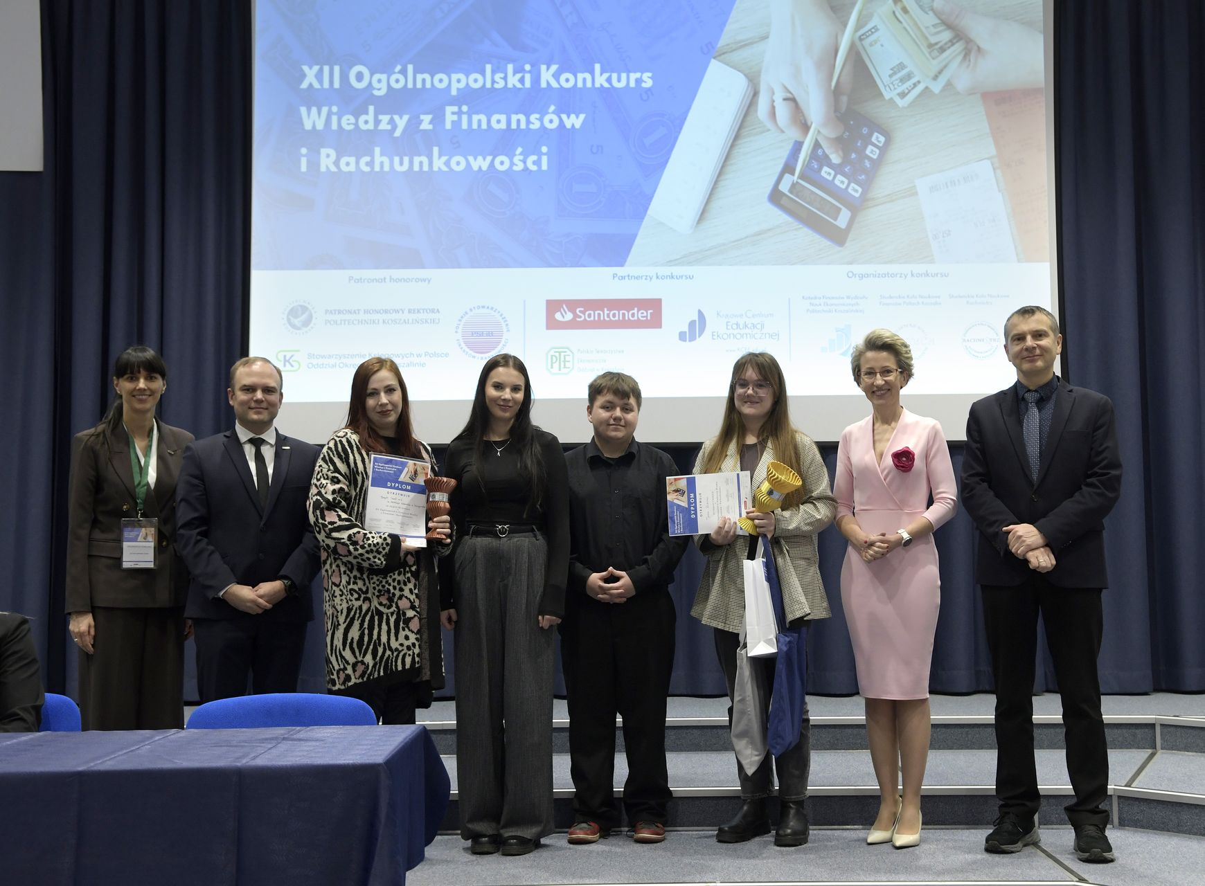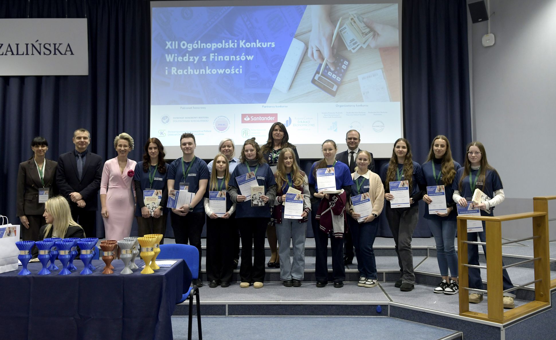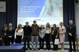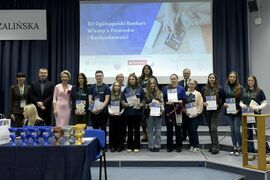 We wtorek, 2 grudnia w kampusie przy ul. Kwiatkowskiego odbył się drugi etap, połączony z galą wręczenia nagród XII Ogólnopolskiego Konkursu Wiedzy z Finansów i Rachunkowości, zorganizowanego przez Katedrę Finansów Wydziału Nauk Ekonomicznych Politechniki Koszalińskiej, Poltech- studenckie koło naukowe finansów POLTECH Koszalin oraz Studenckie Koło Naukowe Rachmistrz. Wykład konkursowy pt. „Twoja przyszłość, Twoje zasady: Jak III filar może uratować nasze emerytury?” wygłosiła mgr Sandra Walkusz - tegoroczna absolwentka kierunku Finanse i rachunkowość. Pierwszym z etapów konkursu był test wiedzy teoretycznej, mający na celu ocenę znajomości wiedzy z finansów i rachunkowości. Odbywał się w szkołach, które zgłosiły akces w konkursie. Przystąpiło do niego 176 osób. Do drugiego etapu każda zgłoszona szkoła wytypowała najlepszych uczniów wyłonionych z I etapu. Zmagania podjęło 34 finalistek i finalistów z Poznania, Leszna, Lęborka, Międzychodu, Koszalina, Stargardu, Ostrzeszowa i Kołobrzegu. To wydarzenie odbywało się stacjonarnie w budynku Wydziału Nauk Ekonomicznych Politechniki Koszalińskiej i składało się z testu oraz zadań praktycznych, do rozwiązania z zakresu finansów i rachunkowości. Dla laureatów trzech pierwszych miejsc organizatorzy przewidzieli nagrody finansowe, a także nagrody rzeczowe dla zdobywców miejsc I-X. Dodatkowo przewidziano nagrodę dla nauczyciela laureata I miejsca.