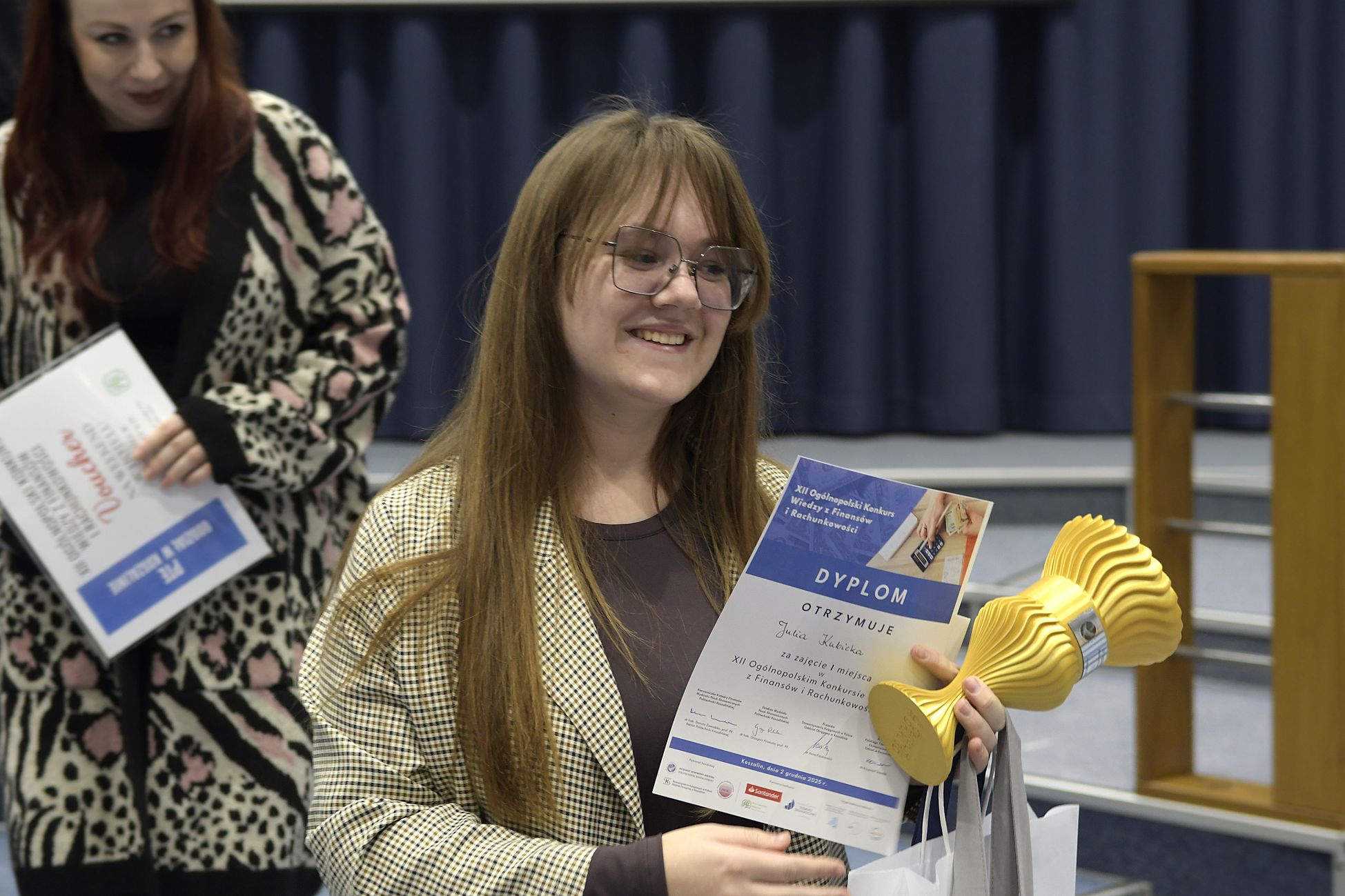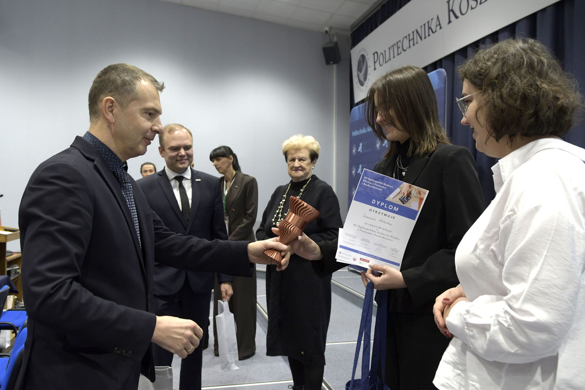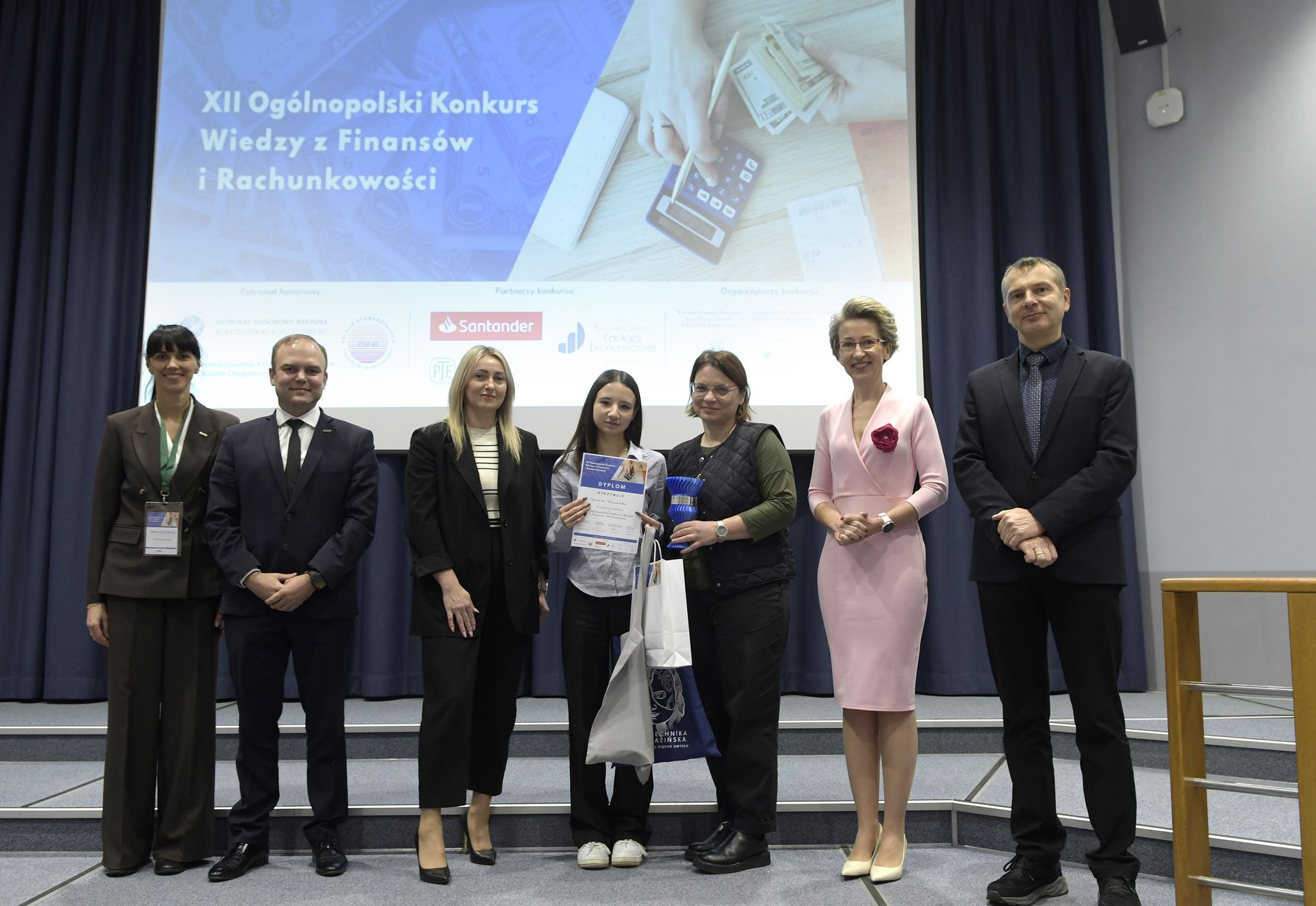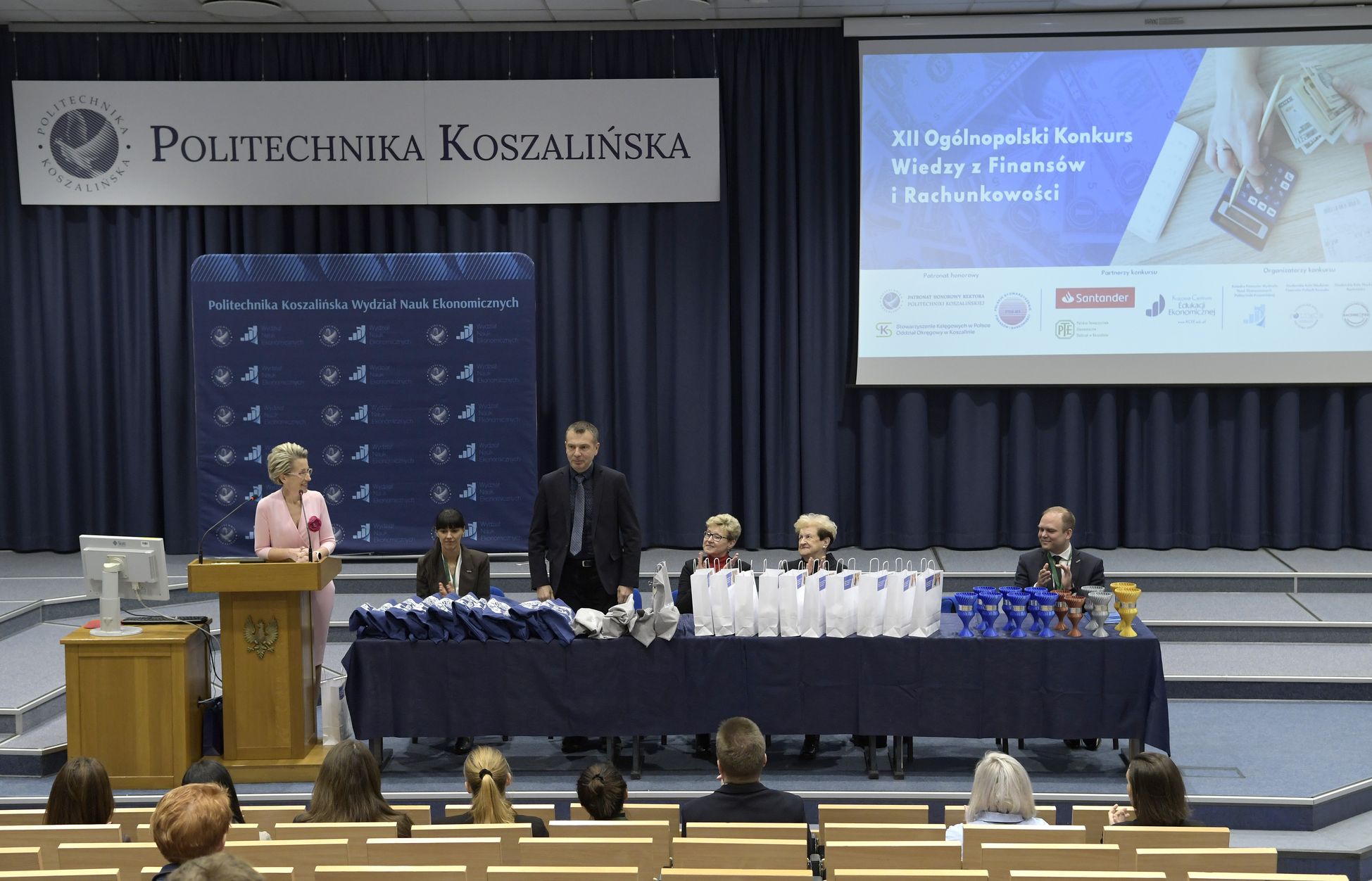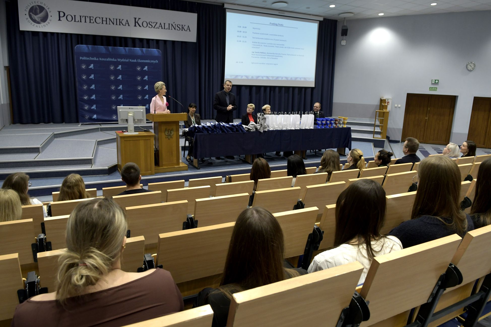 We wtorek, 2 grudnia w kampusie przy ul. Kwiatkowskiego odbył się drugi etap, połączony z galą wręczenia nagród XII Ogólnopolskiego Konkursu Wiedzy z Finansów i Rachunkowości, zorganizowanego przez Katedrę Finansów Wydziału Nauk Ekonomicznych Politechniki Koszalińskiej, Poltech- studenckie koło naukowe finansów POLTECH Koszalin oraz Studenckie Koło Naukowe Rachmistrz. Wykład konkursowy pt. „Twoja przyszłość, Twoje zasady: Jak III filar może uratować nasze emerytury?” wygłosiła mgr Sandra Walkusz - tegoroczna absolwentka kierunku Finanse i rachunkowość. Pierwszym z etapów konkursu był test wiedzy teoretycznej, mający na celu ocenę znajomości wiedzy z finansów i rachunkowości. Odbywał się w szkołach, które zgłosiły akces w konkursie. Przystąpiło do niego 176 osób. Do drugiego etapu każda zgłoszona szkoła wytypowała najlepszych uczniów wyłonionych z I etapu. Zmagania podjęło 34 finalistek i finalistów z Poznania, Leszna, Lęborka, Międzychodu, Koszalina, Stargardu, Ostrzeszowa i Kołobrzegu. To wydarzenie odbywało się stacjonarnie w budynku Wydziału Nauk Ekonomicznych Politechniki Koszalińskiej i składało się z testu oraz zadań praktycznych, do rozwiązania z zakresu finansów i rachunkowości. Dla laureatów trzech pierwszych miejsc organizatorzy przewidzieli nagrody finansowe, a także nagrody rzeczowe dla zdobywców miejsc I-X. Dodatkowo przewidziano nagrodę dla nauczyciela laureata I miejsca.