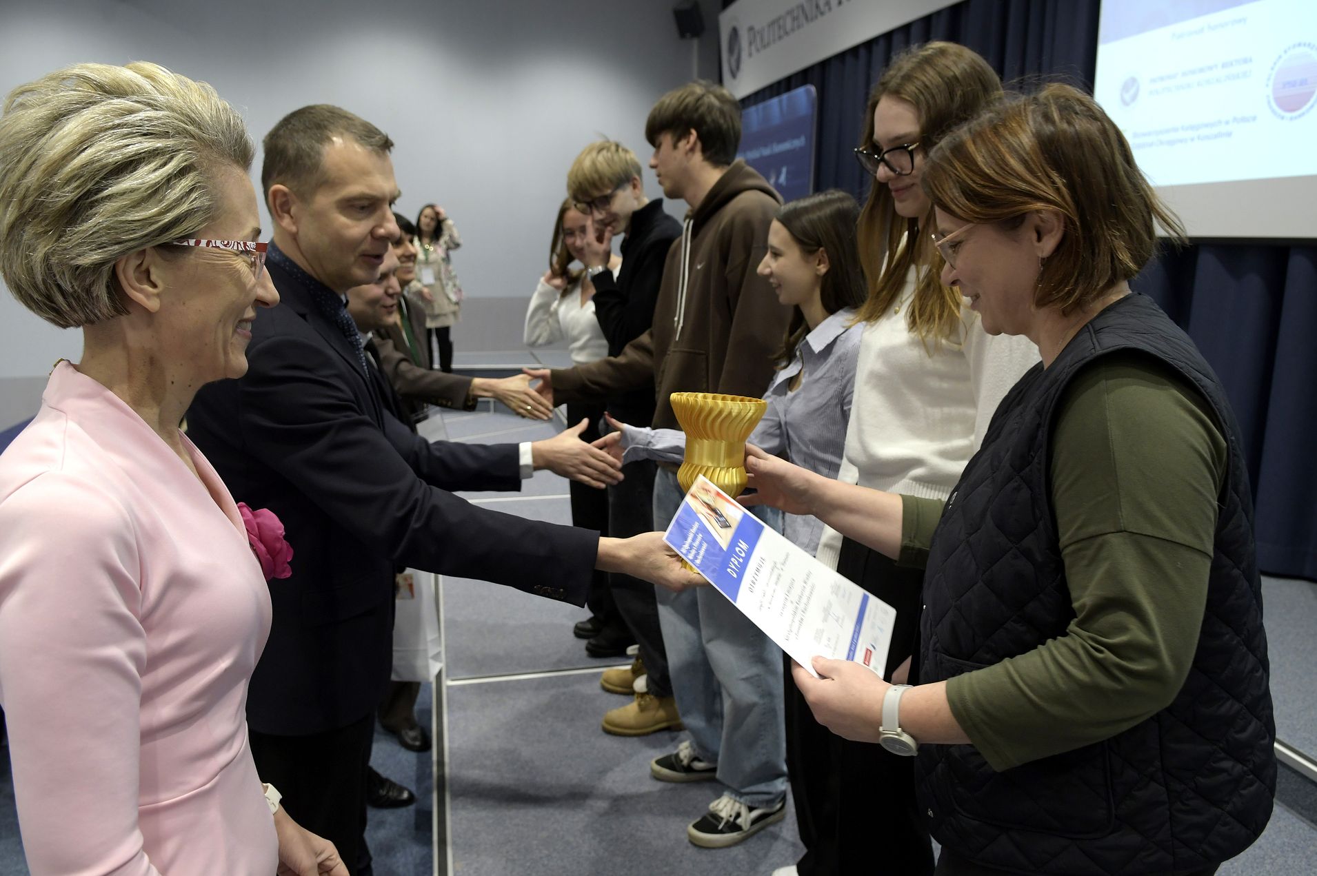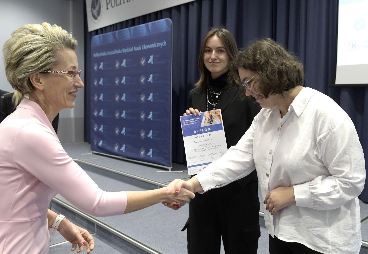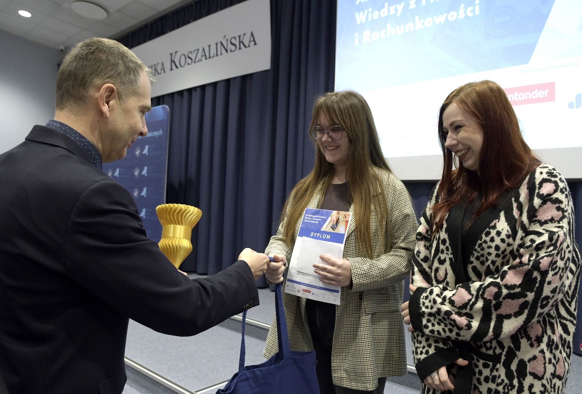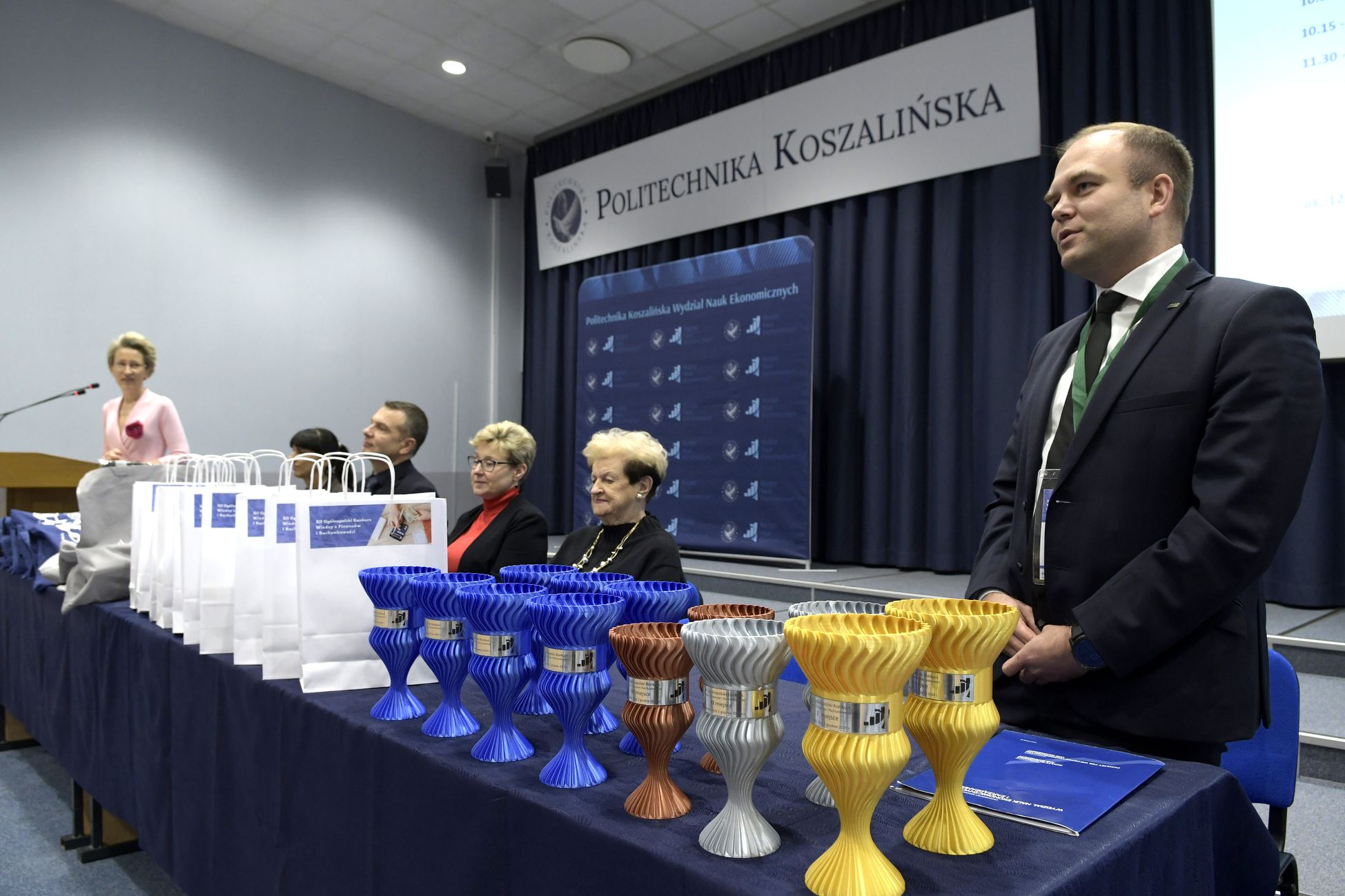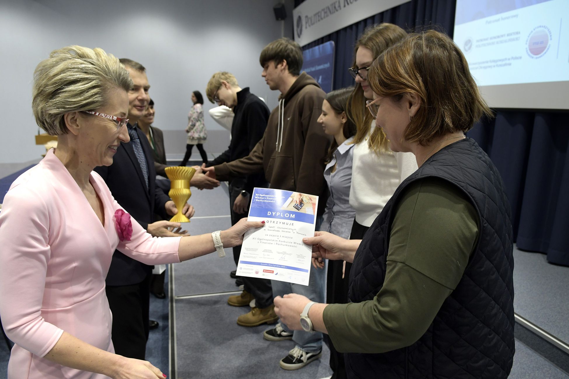 We wtorek, 2 grudnia w kampusie przy ul. Kwiatkowskiego odbył się drugi etap, połączony z galą wręczenia nagród XII Ogólnopolskiego Konkursu Wiedzy z Finansów i Rachunkowości, zorganizowanego przez Katedrę Finansów Wydziału Nauk Ekonomicznych Politechniki Koszalińskiej, Poltech- studenckie koło naukowe finansów POLTECH Koszalin oraz Studenckie Koło Naukowe Rachmistrz. Wykład konkursowy pt. „Twoja przyszłość, Twoje zasady: Jak III filar może uratować nasze emerytury?” wygłosiła mgr Sandra Walkusz - tegoroczna absolwentka kierunku Finanse i rachunkowość. Pierwszym z etapów konkursu był test wiedzy teoretycznej, mający na celu ocenę znajomości wiedzy z finansów i rachunkowości. Odbywał się w szkołach, które zgłosiły akces w konkursie. Przystąpiło do niego 176 osób. Do drugiego etapu każda zgłoszona szkoła wytypowała najlepszych uczniów wyłonionych z I etapu. Zmagania podjęło 34 finalistek i finalistów z Poznania, Leszna, Lęborka, Międzychodu, Koszalina, Stargardu, Ostrzeszowa i Kołobrzegu. To wydarzenie odbywało się stacjonarnie w budynku Wydziału Nauk Ekonomicznych Politechniki Koszalińskiej i składało się z testu oraz zadań praktycznych, do rozwiązania z zakresu finansów i rachunkowości. Dla laureatów trzech pierwszych miejsc organizatorzy przewidzieli nagrody finansowe, a także nagrody rzeczowe dla zdobywców miejsc I-X. Dodatkowo przewidziano nagrodę dla nauczyciela laureata I miejsca.