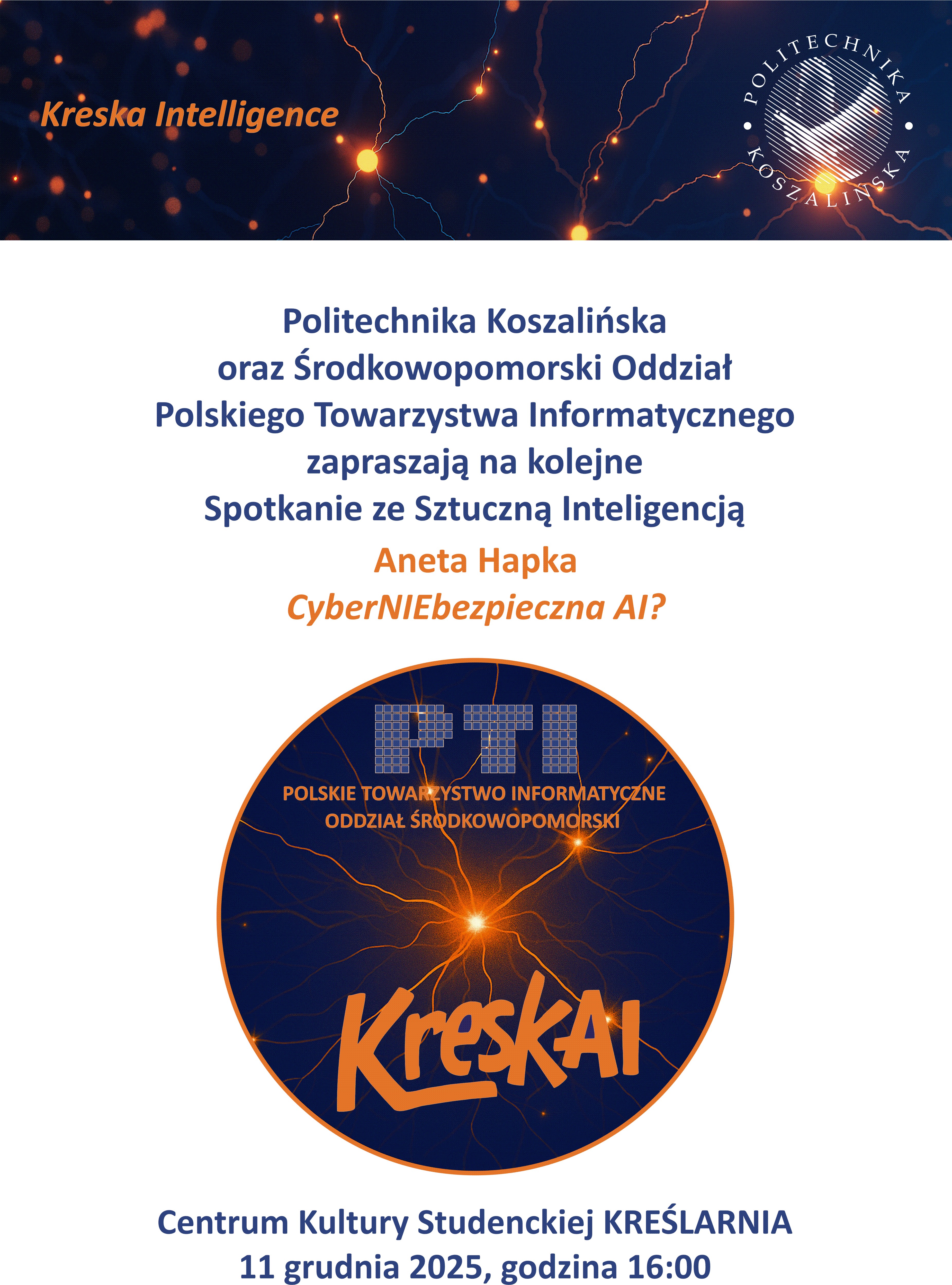 Tym razem naszym prelegentem będzie dr Aneta Hapka z Wydziału Elektroniki i Informatyki, która przedstawi wykład pt.: „CyberNIEbezpieczna AI?”. Podczas spotkania uczestnicy dowiedzą się, jakie ryzyka wiążą się z rozwojem współczesnych systemów AI, jak wyglądają zagrożenia cybernetyczne z nimi związane oraz jakie znaczenie ma odpowiedzialne projektowanie i użytkowanie nowych technologii.
