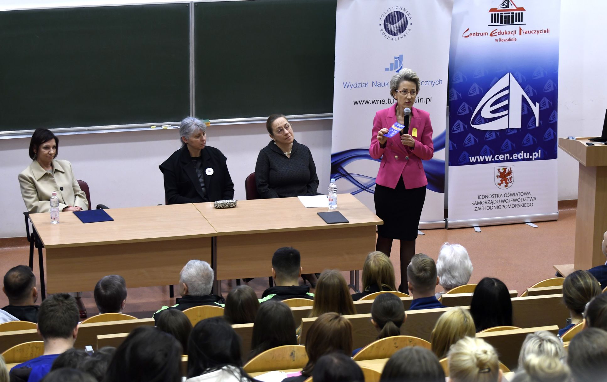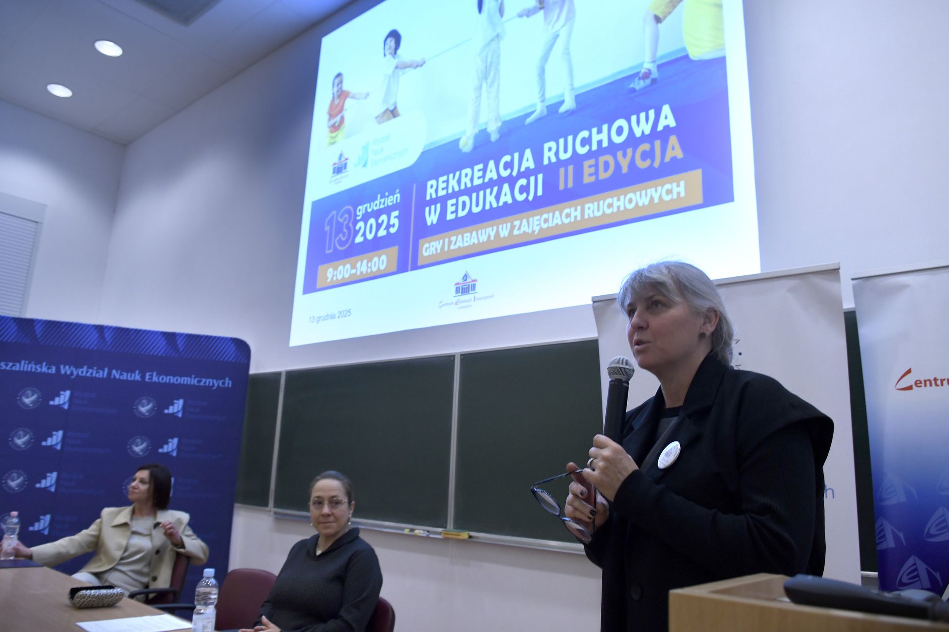 – Dzięki tej konferencji możemy pokazać, że nasza uczelnia jest otwarta na sport. Wydarzenie jest wyjątkowe także dlatego, że skupiło tak wielu nauczycieli, instruktorów i świetnych trenerów – mówiła rektor Politechniki Koszalińskiej, dr hab. Danuta Zawadzka, prof. PK podkreślając, że konferencję wspierają władze miejskie Koszalina. Pani rektor przypomniała o inicjatywach sportowych realizowanych przez Politechnikę Koszalińską, w tym o realizowanych w ramach klubu Polibasket Koszalin TU zajęciach dla najmłodszych z koszykówki. Zapowiedziała też jedno z kolejnych wydarzeń – zaplanowane na 24 marca 2026 r. bicie rekordu Polski w kibicowaniu na hali w koszykówce męskiej 3x3.
