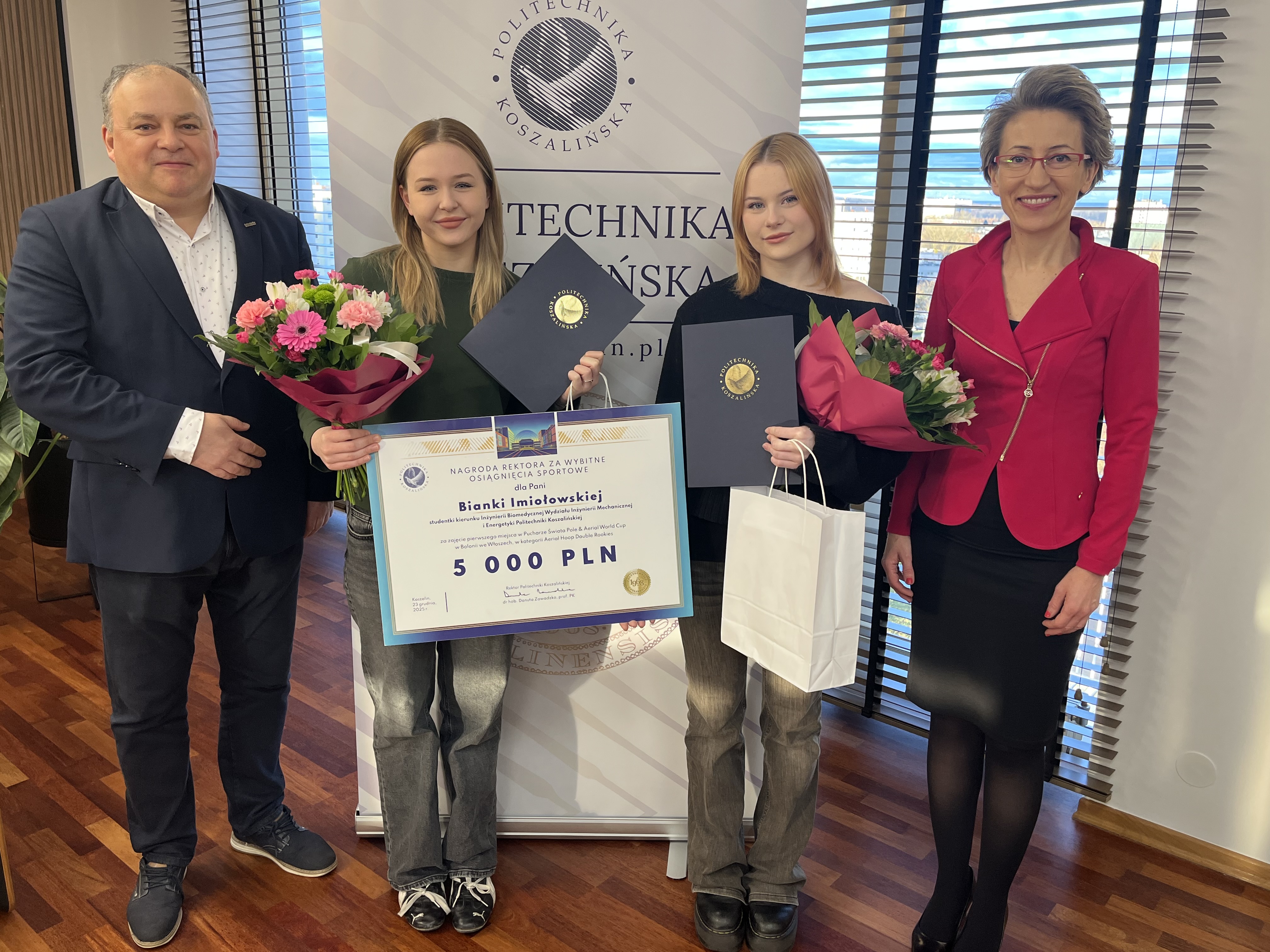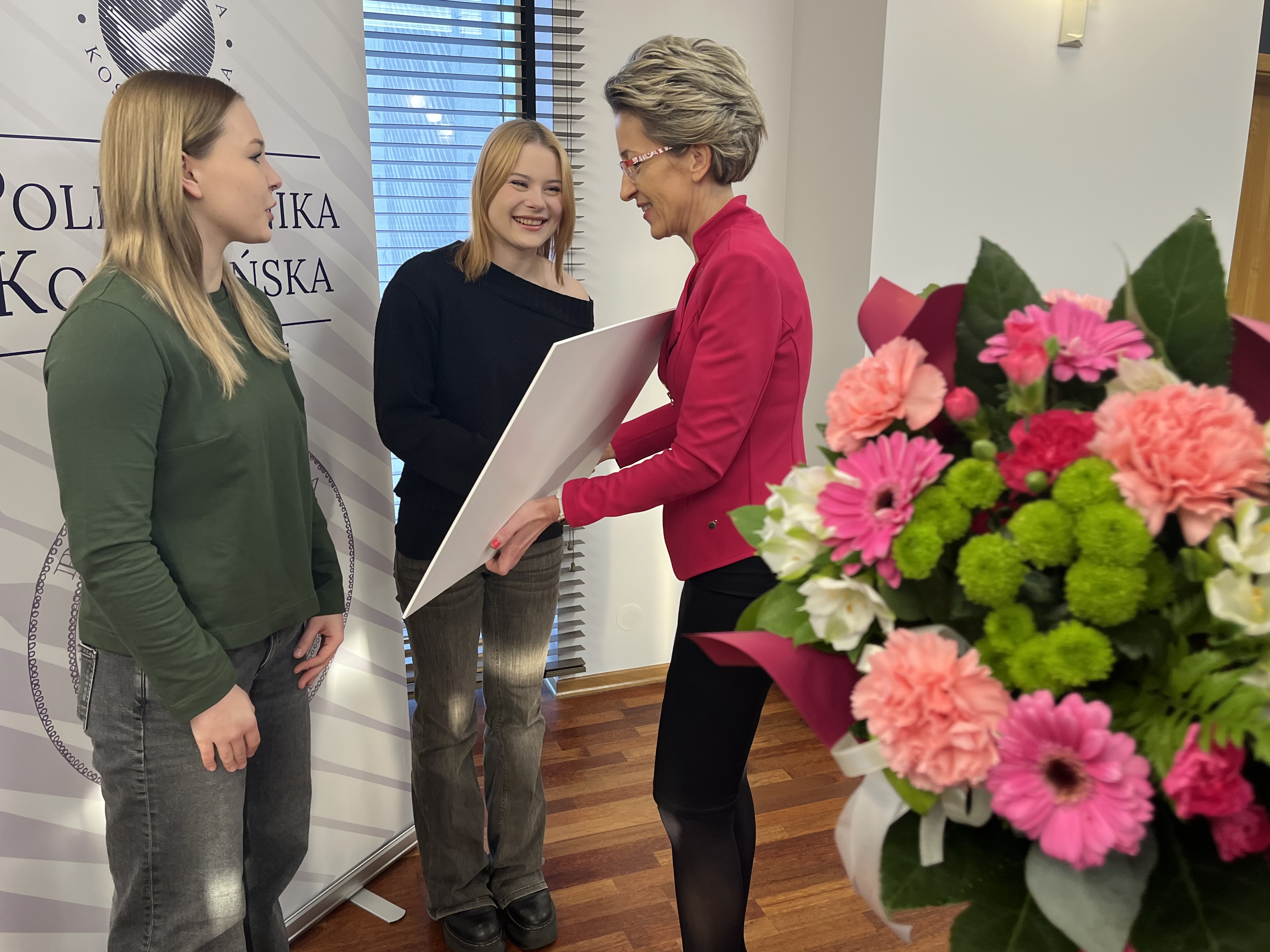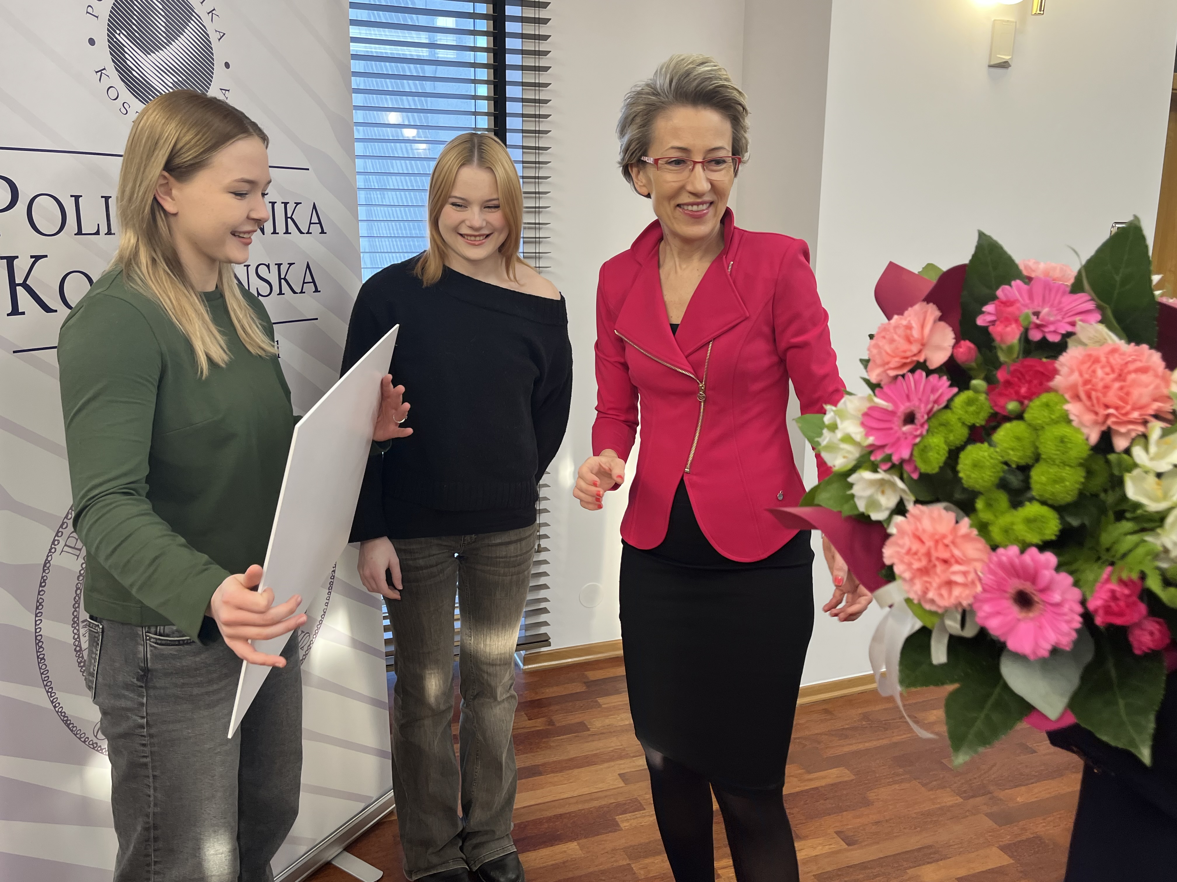 Wręczając wyróżnienie, prof. Danuta Zawadzka pogratulowała reprezentantkom dotychczasowych sukcesów, podkreślając znaczenie łączenia osiągnięć sportowych z aktywnością akademicką a także życząc kolejnych triumfów w najbliższym czasie. Do życzeń przyłączyli się obecni na spotkaniu prorektor ds. studenckich, dr hab. Tomasz Królikowski, prof. PK, oraz kanclerz uczelni, mgr inż. Adam Gawrysiak.