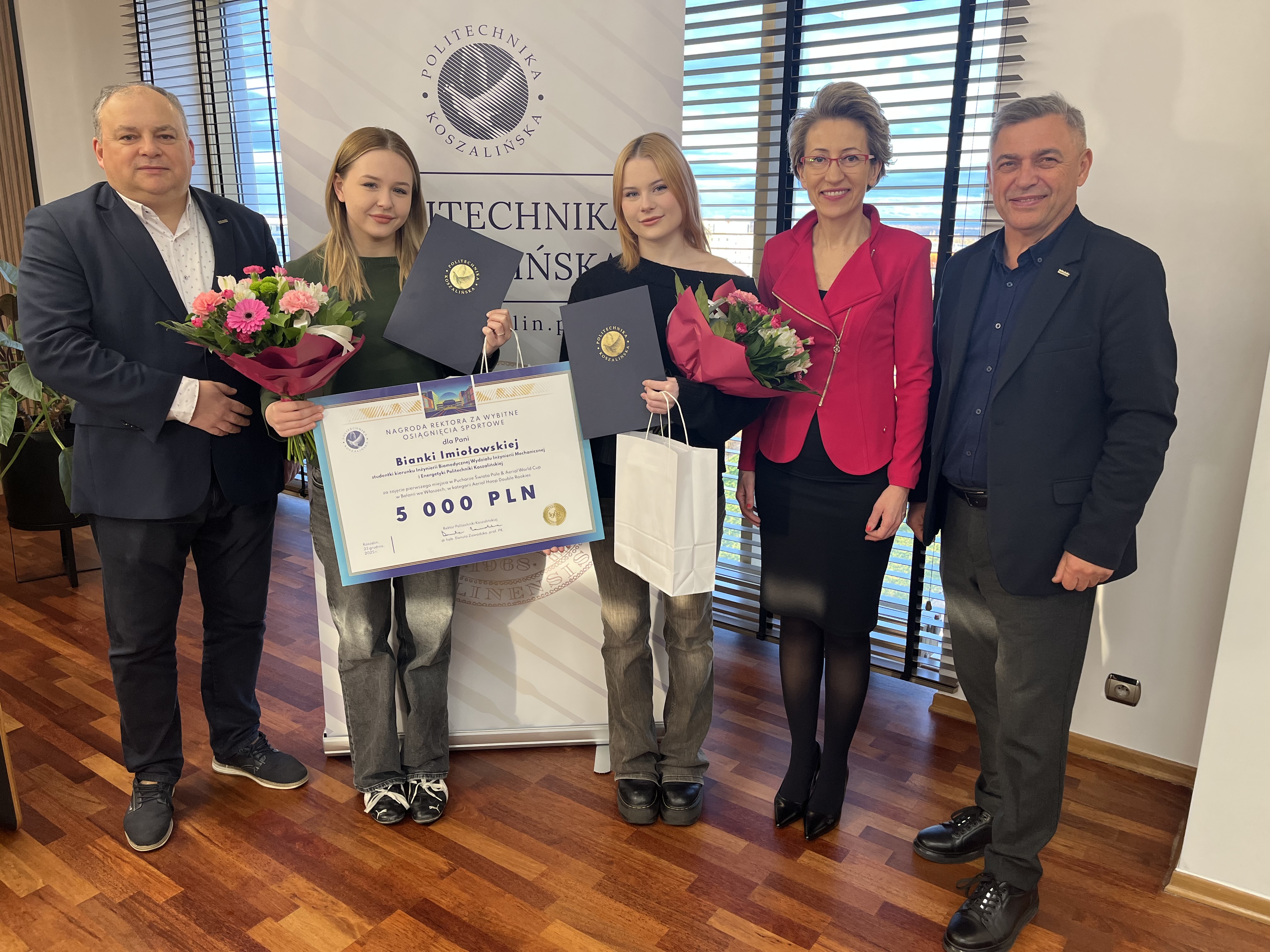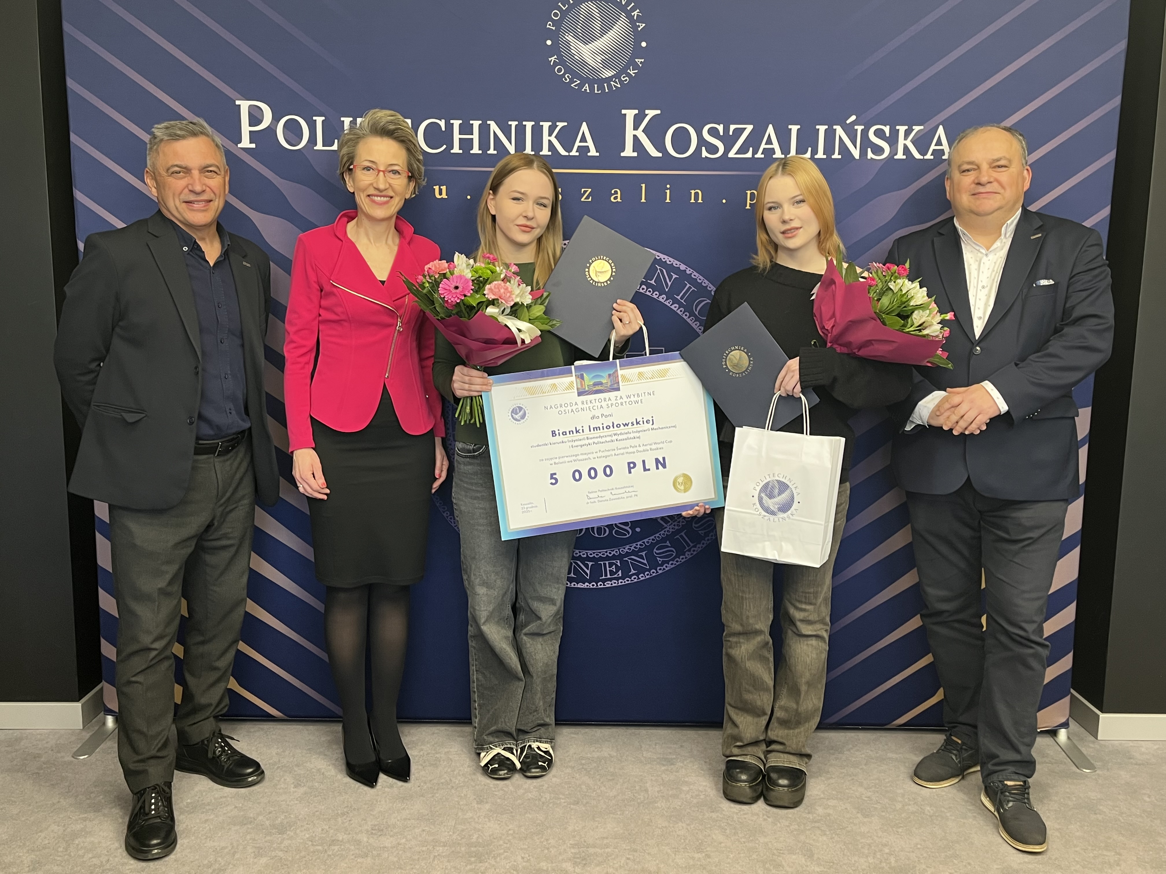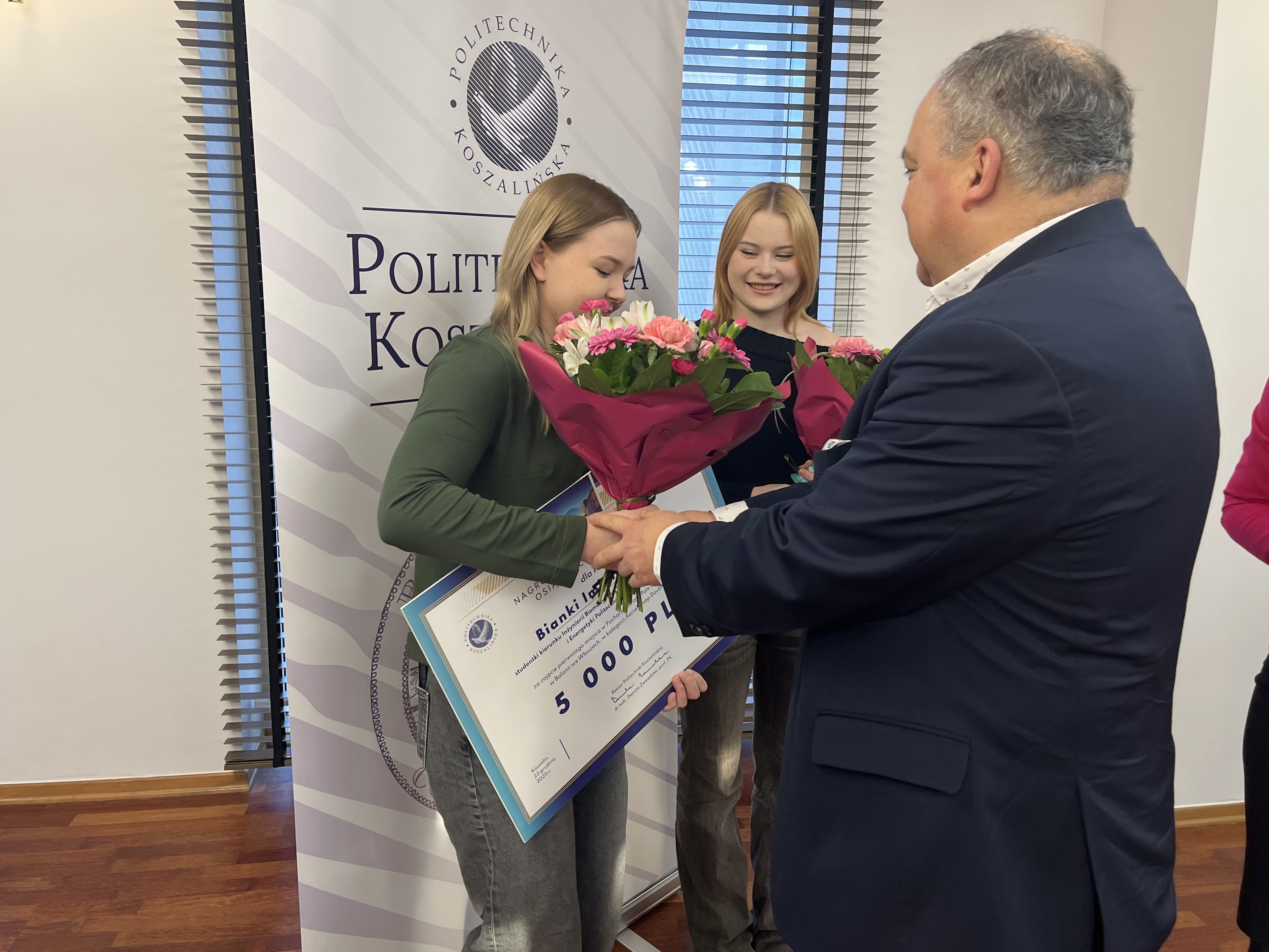 Wręczając wyróżnienie, prof. Danuta Zawadzka pogratulowała reprezentantkom dotychczasowych sukcesów, podkreślając znaczenie łączenia osiągnięć sportowych z aktywnością akademicką a także życząc kolejnych triumfów w najbliższym czasie. Do życzeń przyłączyli się obecni na spotkaniu prorektor ds. studenckich, dr hab. Tomasz Królikowski, prof. PK, oraz kanclerz uczelni, mgr inż. Adam Gawrysiak.