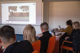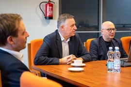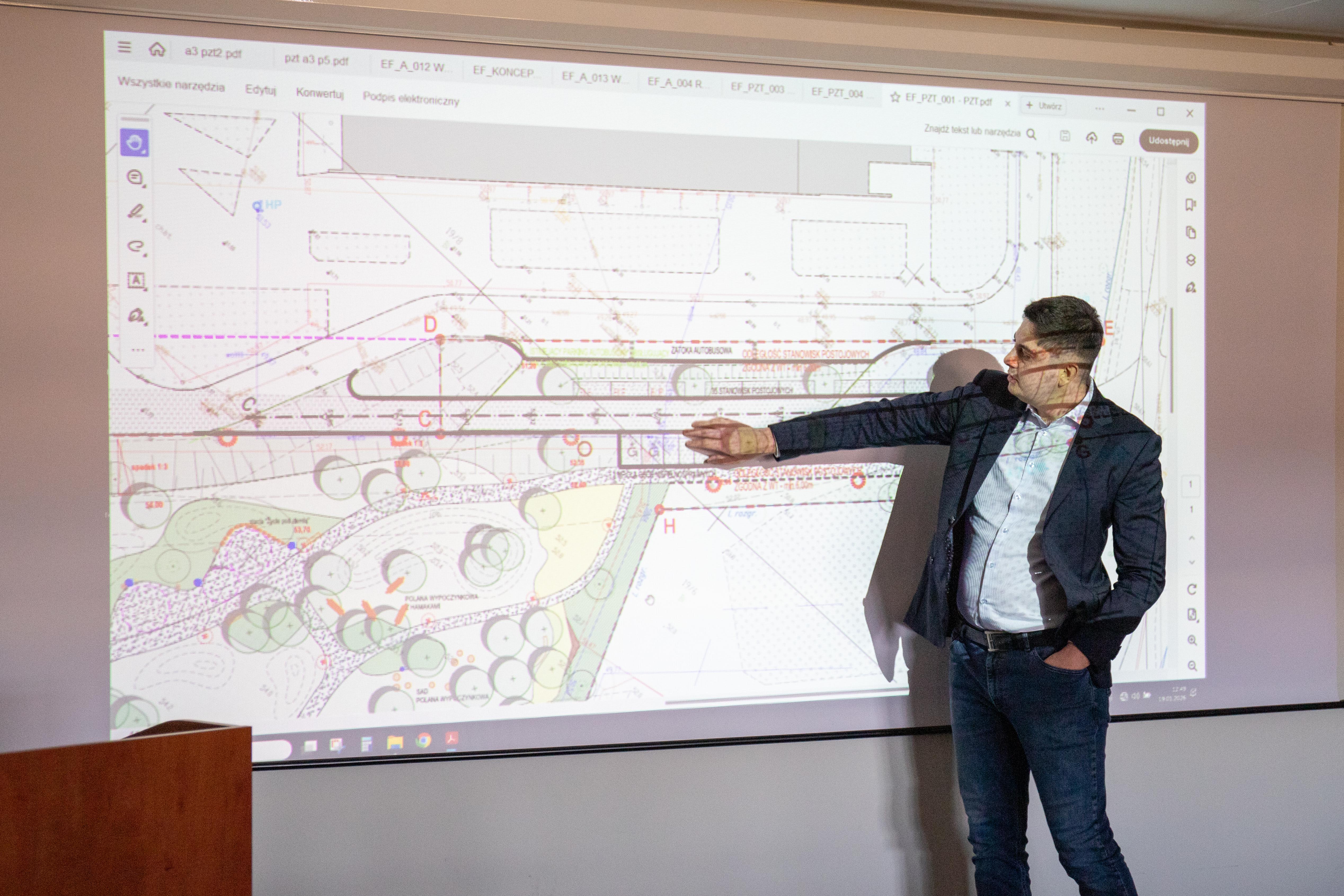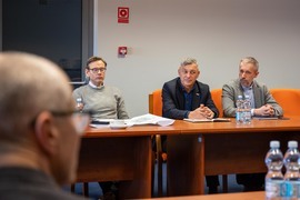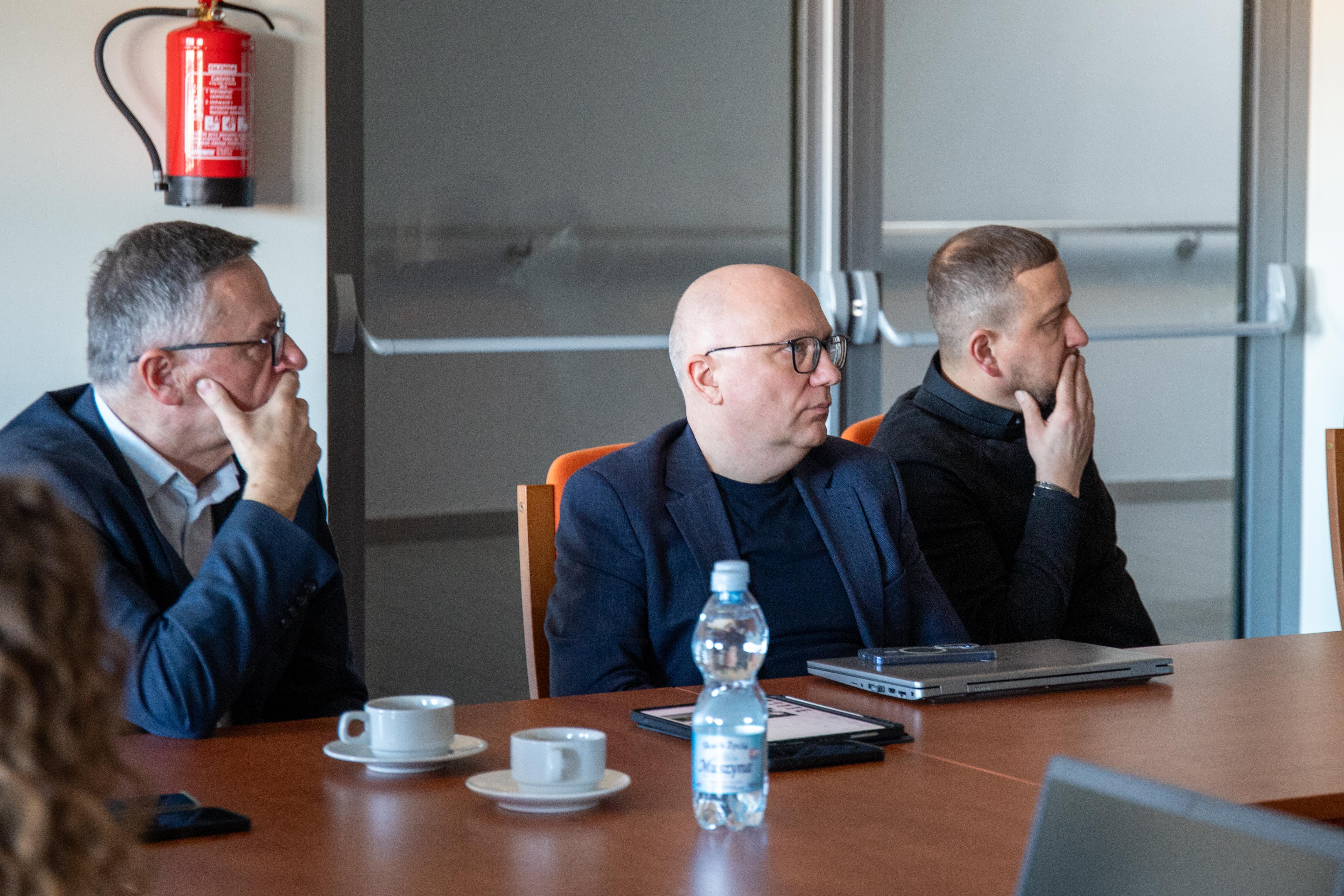Reprezentanci Atelier Tektura odpowiedzialnego za projekt budynku Centrum Zrównoważonego Rozwoju i OVO Grąbczewscy Architekci - projektanci Centrum Wiedzy, dyskutowali na temat współpracy między inwestycjami, które maja na siebie wzajemny wpływ. Rozmowy dotyczyły współdziałania i kwestii granicznych.