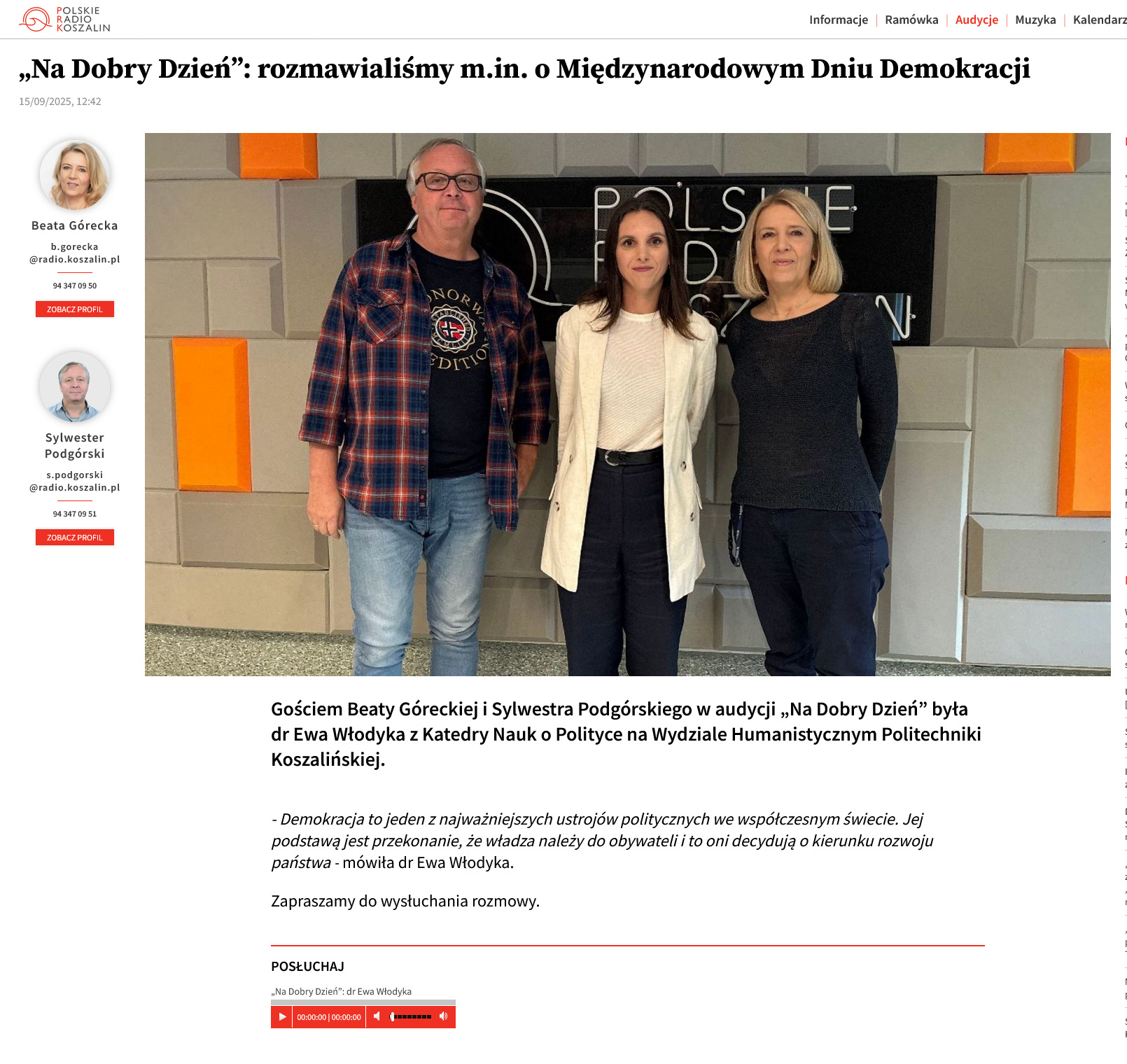 "Na Dobry Dzień": rozmawialiśmy m.in. o Międzynarodowym Dniu Demokracji