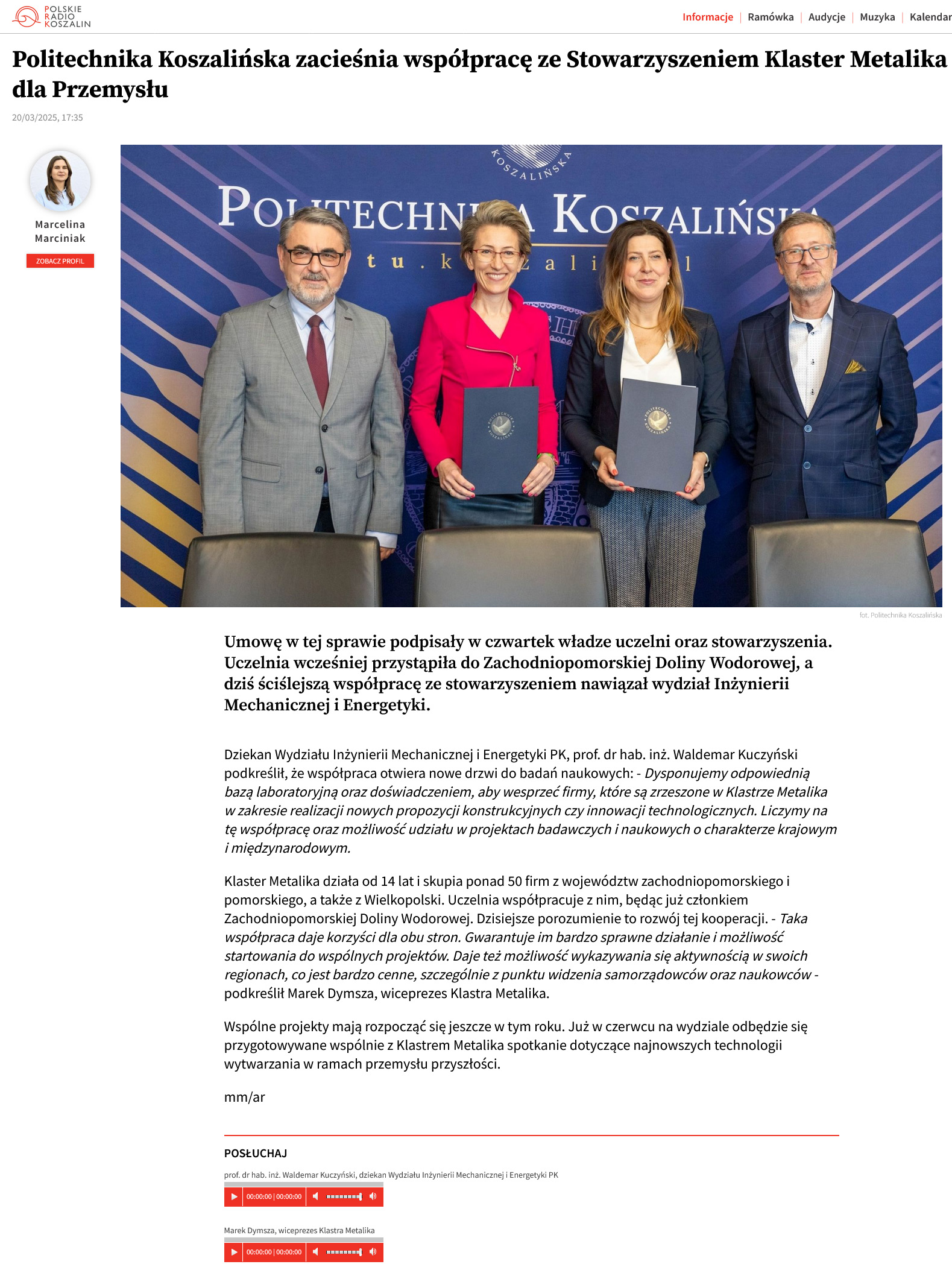 Politechnika Koszalińska zacieśnia współpracę ze Stowarzyszeniem Klaster Metalika dla Przemysłu