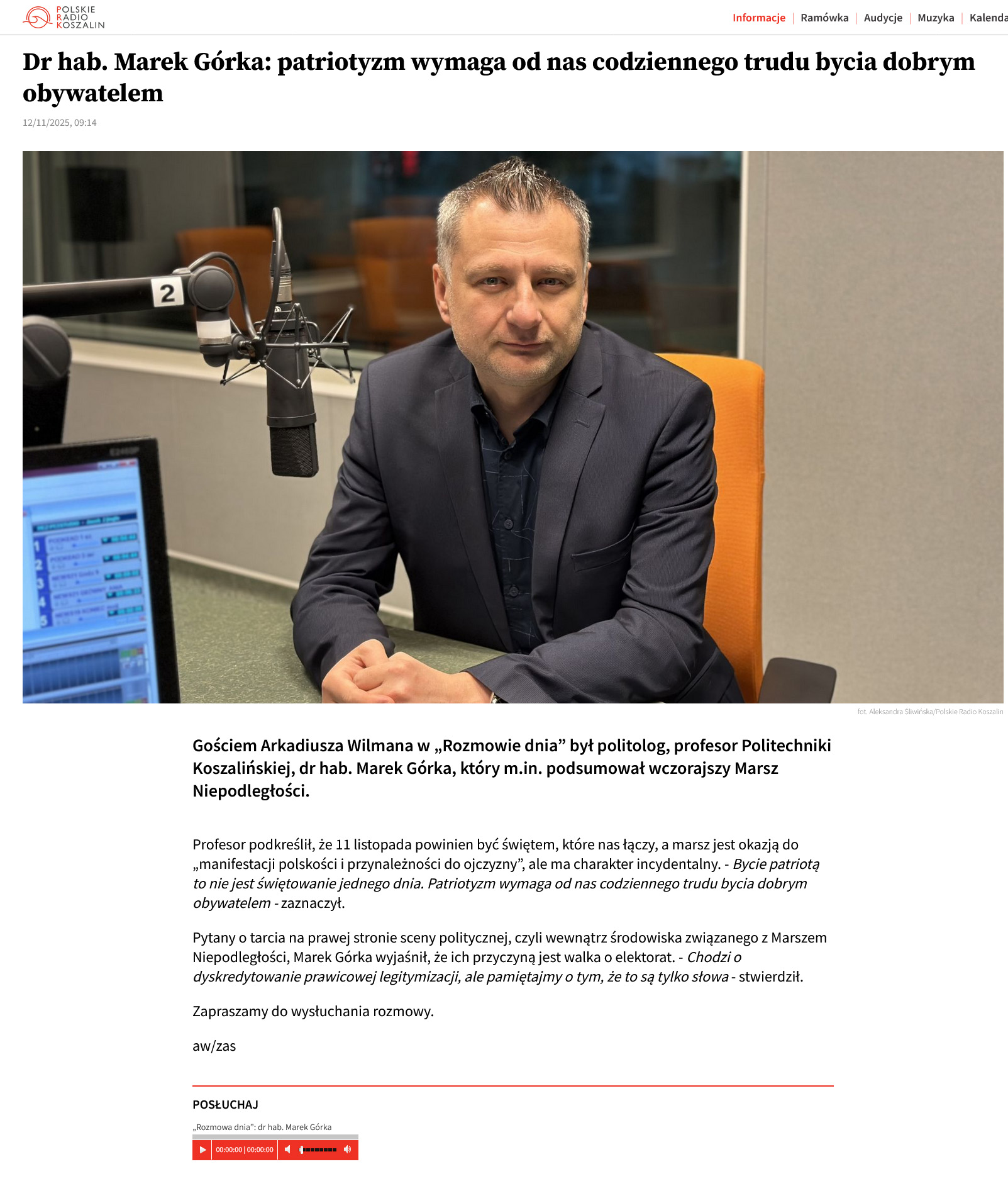 Dr hab. Marek Górka: patriotyzm wymaga od nas codziennego trudu bycia dobrym obywatelem