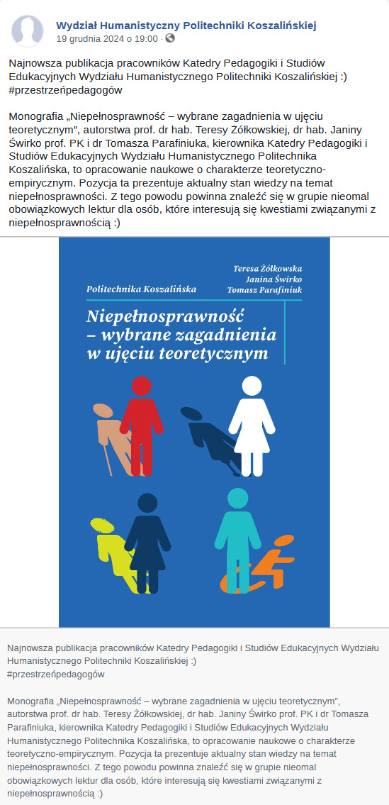 Najnowsza publikacja pracowników Katedry Pedagogiki i Studiów Eudukacyjnych Wydziału Humanistycznego Politechniki Koszalińskiej