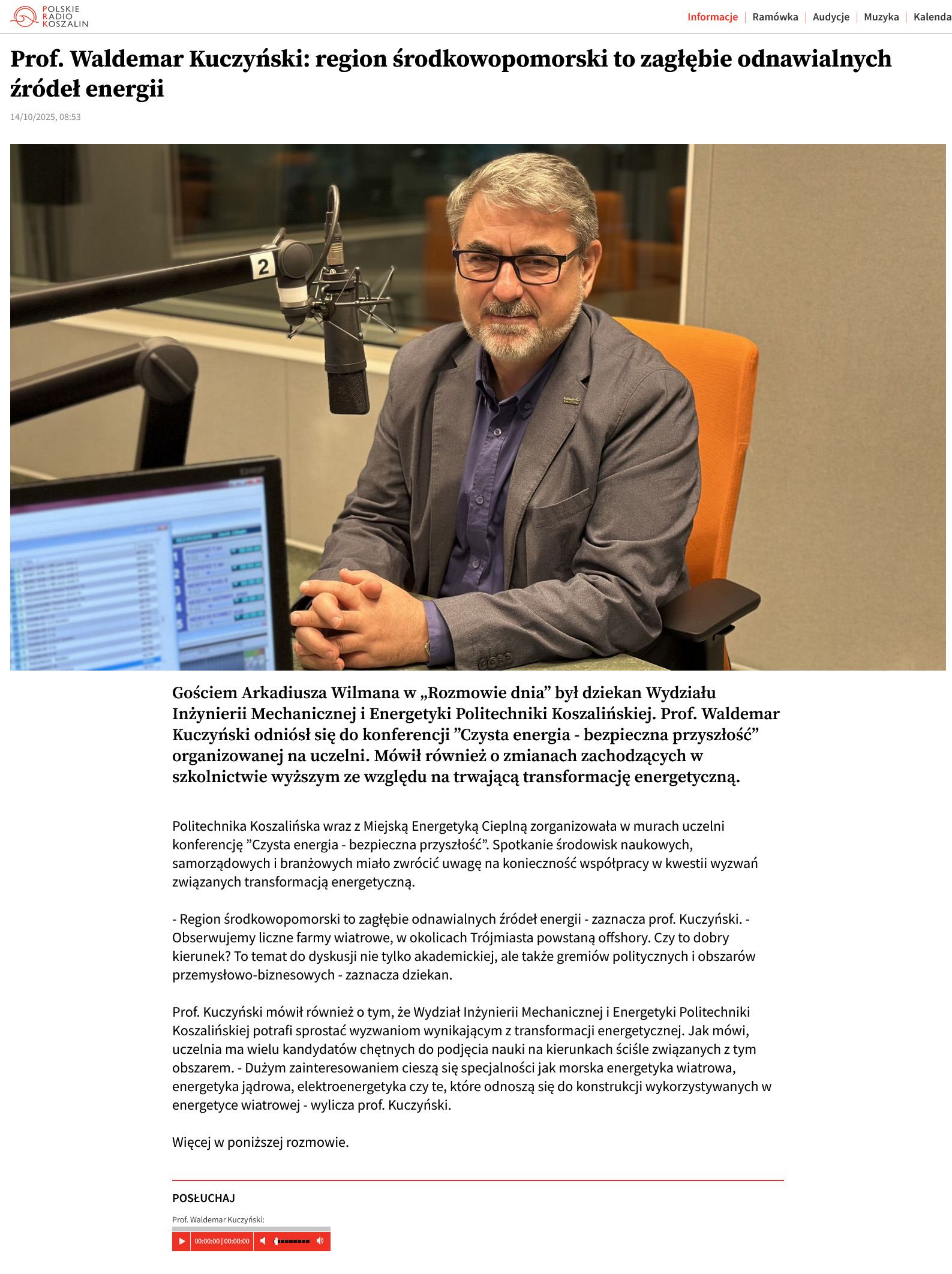 Prof. Waldemar Kuczyński: region środkowopomorski to zagłębie odnawialnych źródeł energii