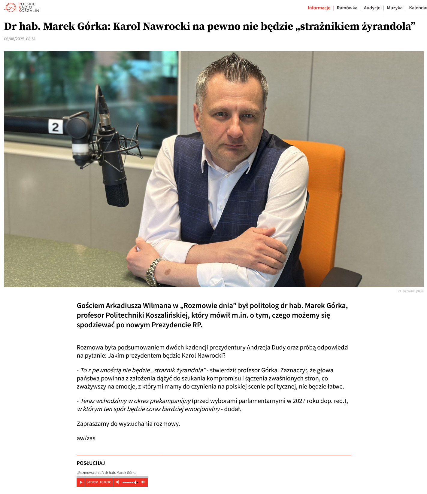 Dr hab. Marek Górka: Karol Nawrocki na pewno nie będzie "strażnikiem żyrandola"