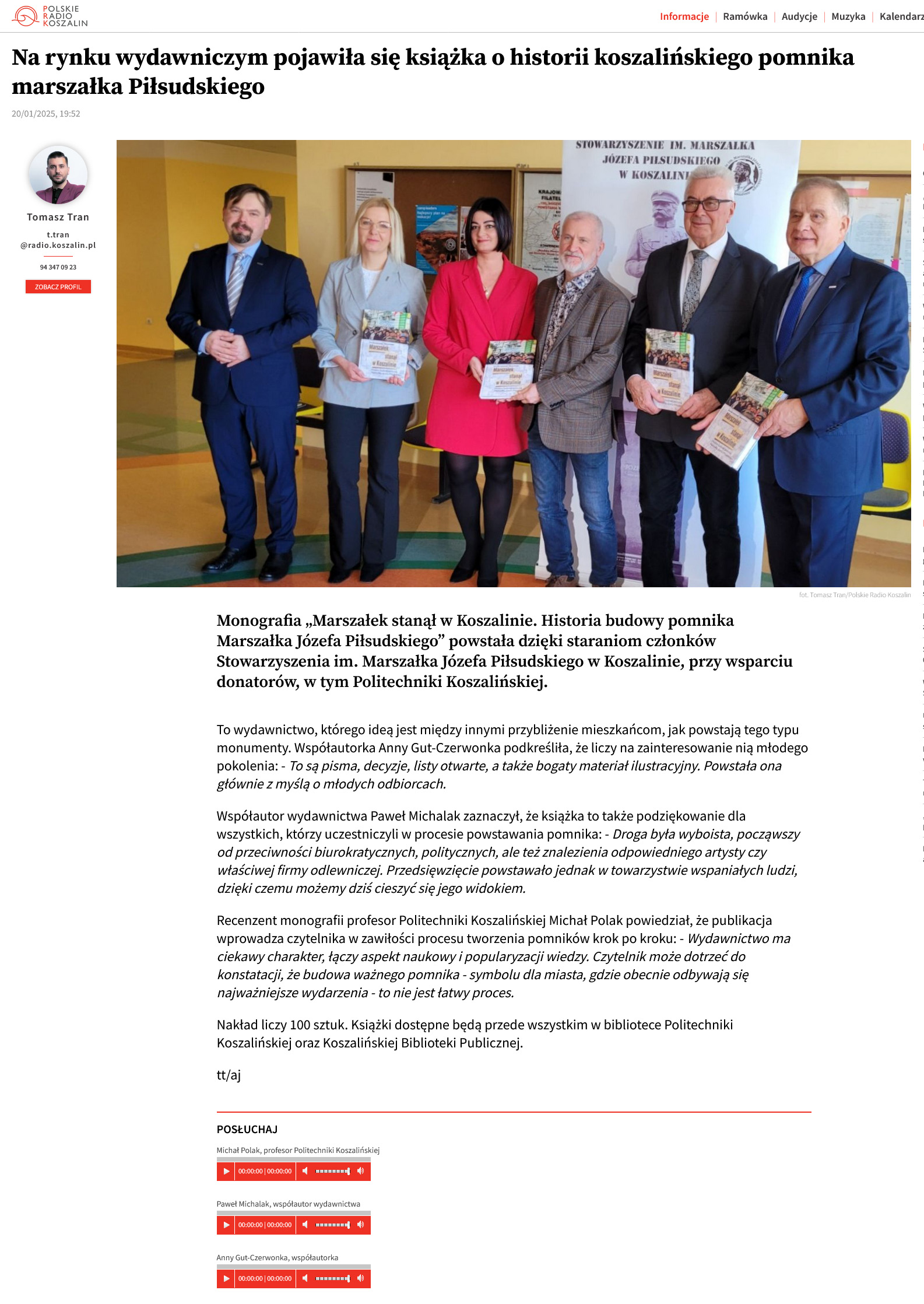 Na rynku wydawniczym pojawiła się książka o historii koszalińskiego pomnika marszałka Piłsudskiego