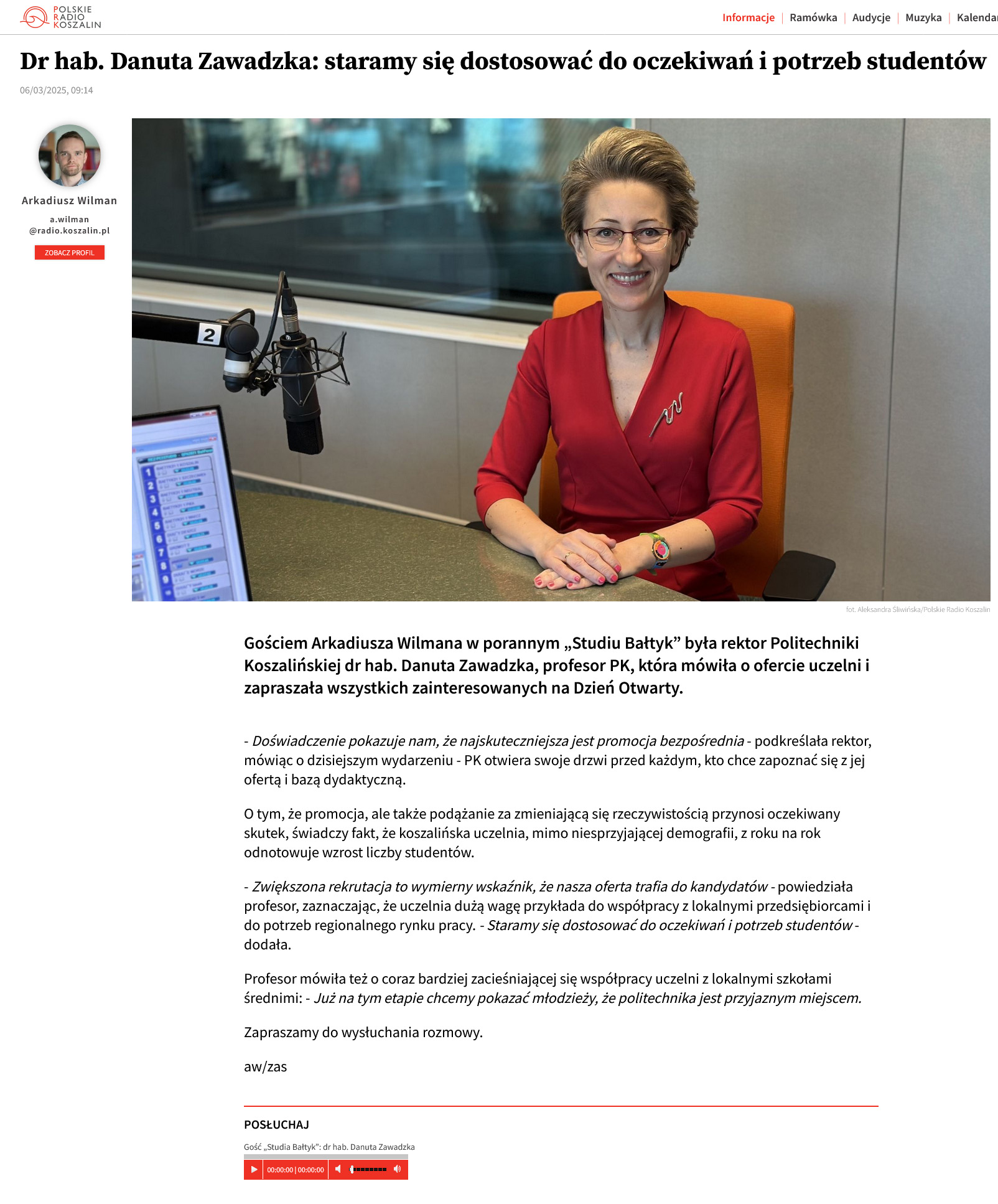Dr hab. Danuta Zawadzka: staramy się dostosować do oczekiwań i potrzeb studentów