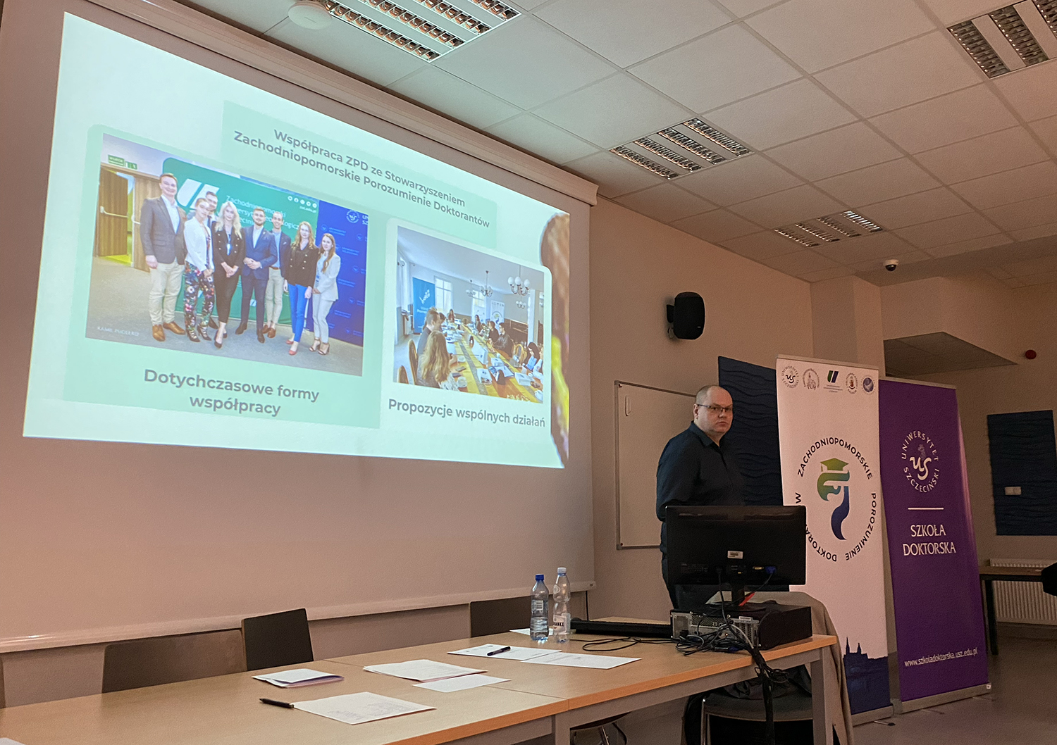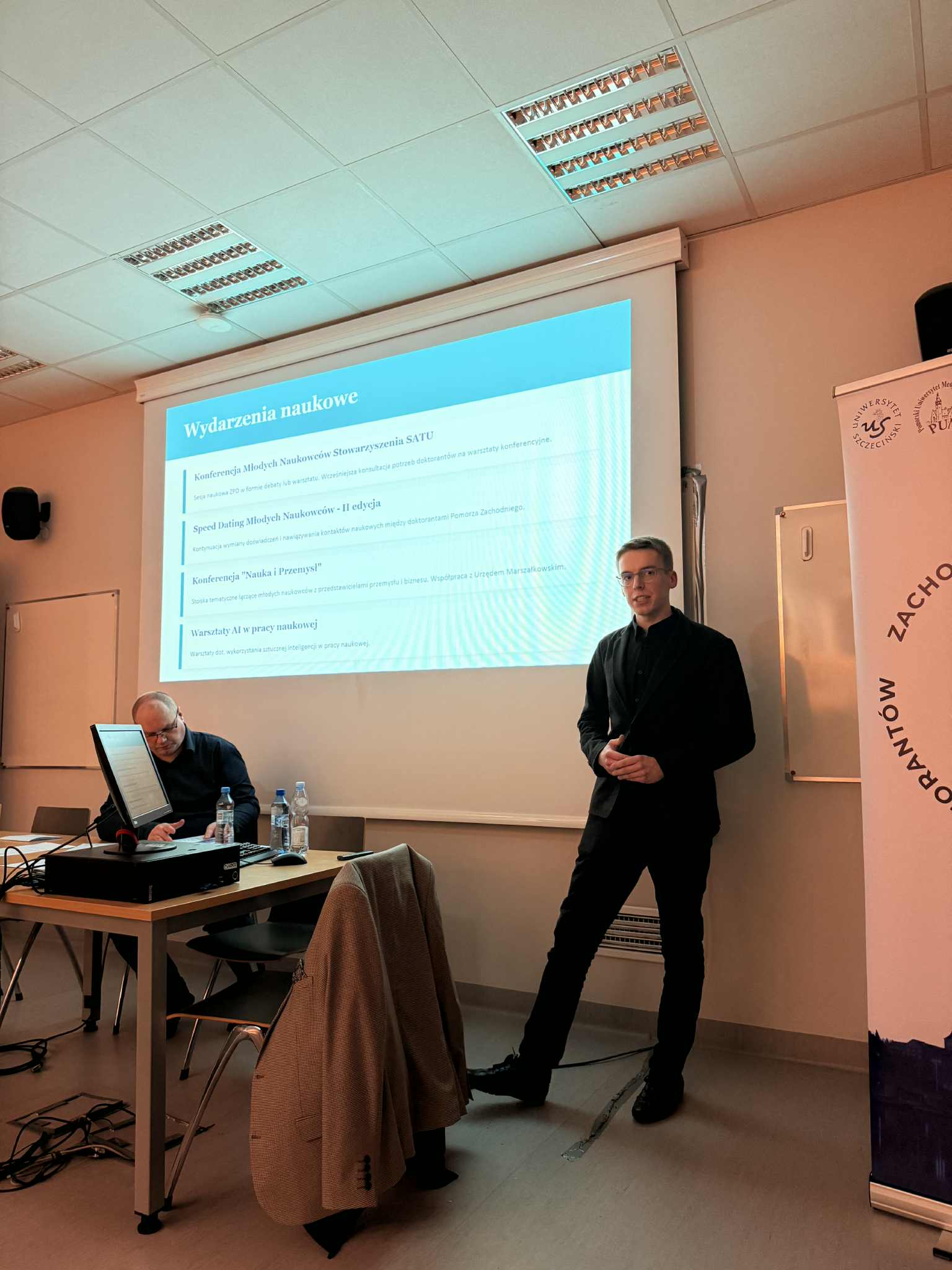 Pierwsze otwarte posiedzenie nowo wybranego zarządu poprowadził mgr inż. Arkadiusz Żuber, przewodniczący Samorządu Doktorantów Politechniki Koszalińskiej oraz doktorant Szkoły Doktorskiej Politechniki Koszalińskiej. Jego udział w prowadzeniu obrad podkreśla zaangażowanie uczelni w rozwój współpracy.