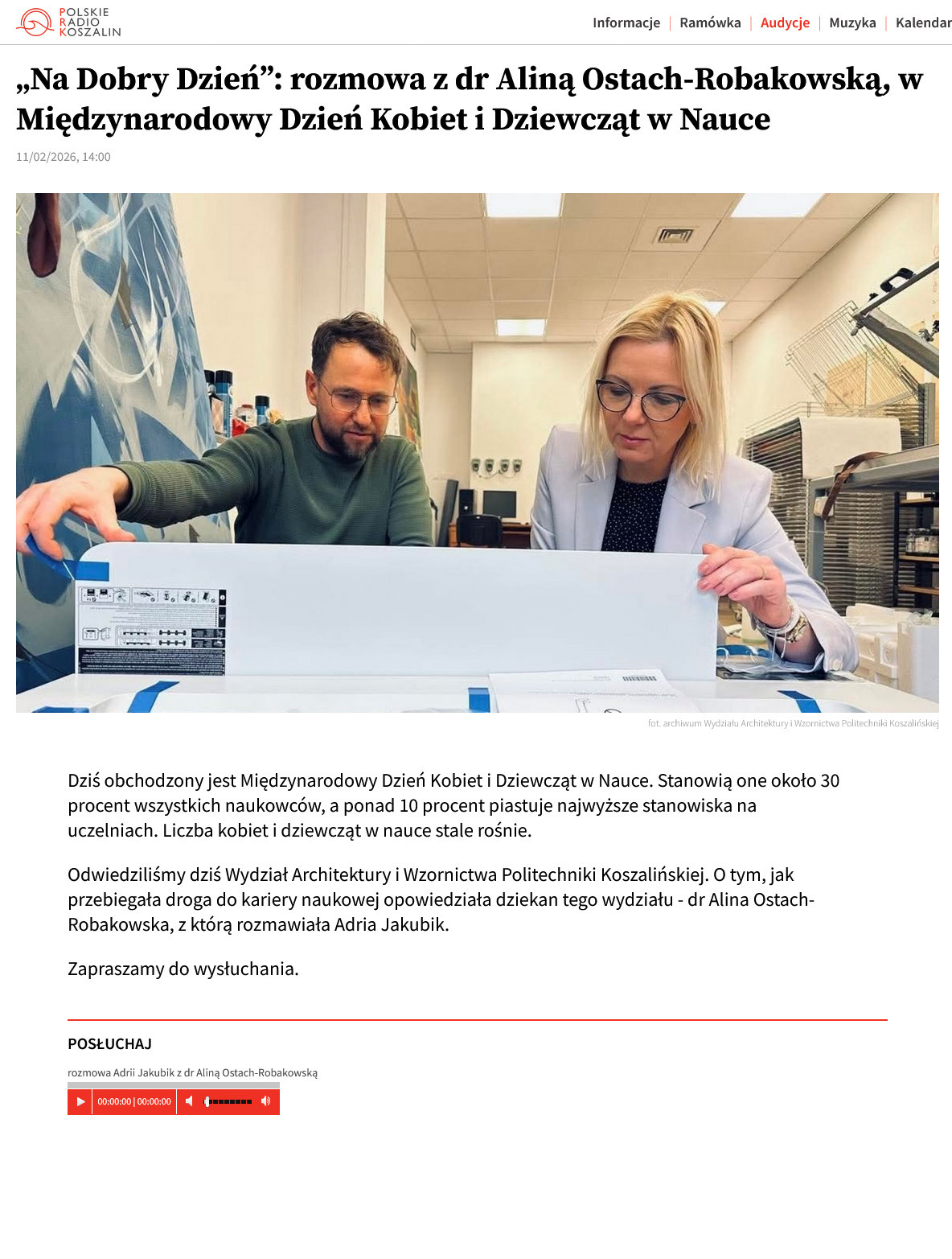 "Na Dobry Dzień": rozmowa z dr Aliną Ostach-Robakowską, w Międzynarodowy Dzień Kobiet i Dziewcząt w Nauce