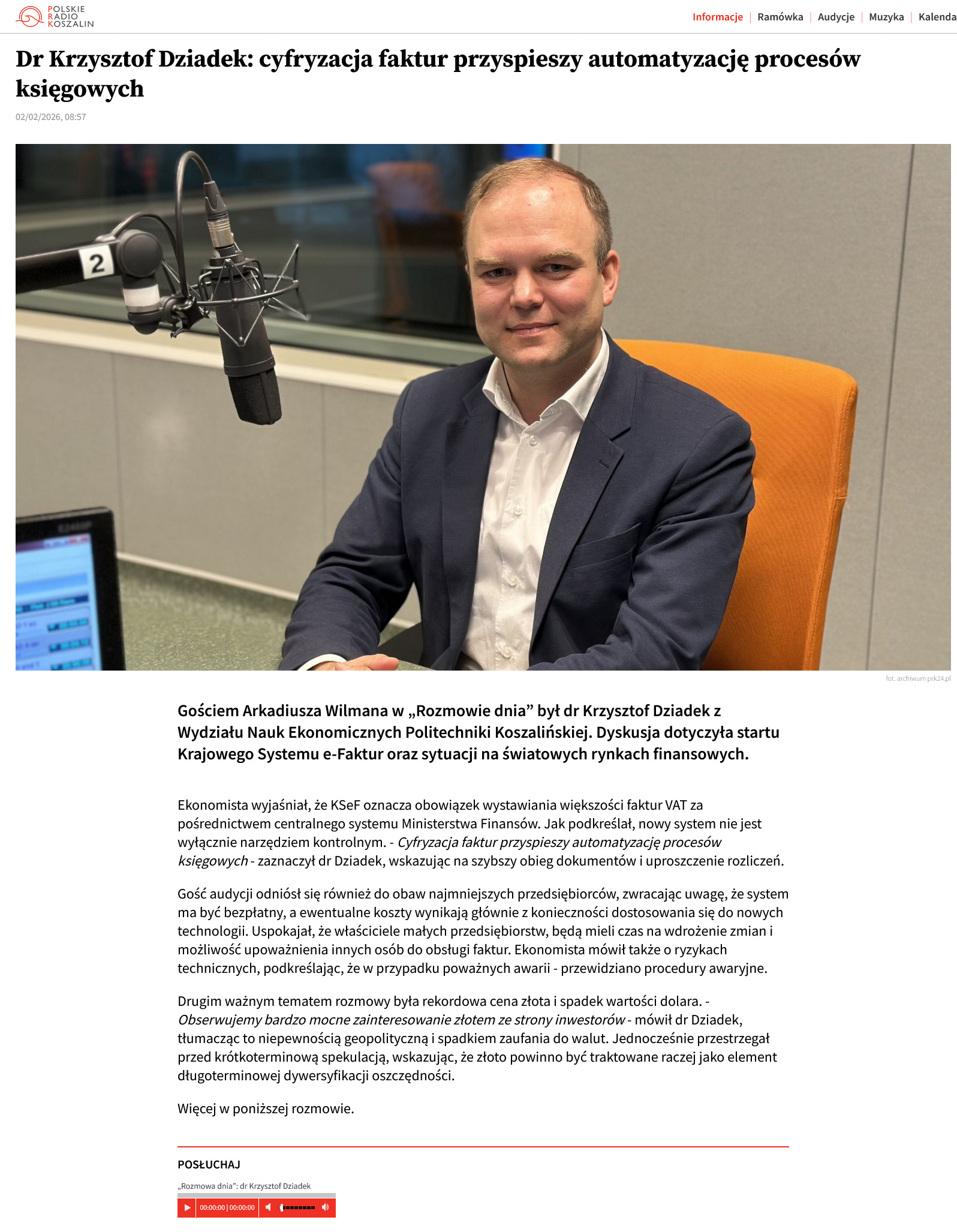 Dr Krzysztof Dziadek: cyfryzacja faktur przyspieszy automatyzację procesów księgowych
