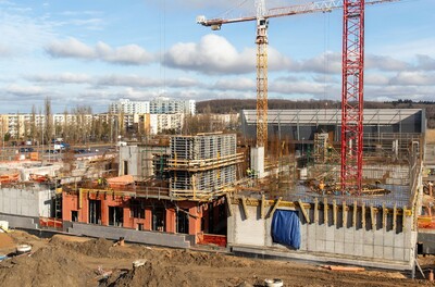 Na terenie kampusu Politechniki Koszalińskiej przy ul. Śniadeckich w Koszalinie powstaje Centrum Wiedzy Cognitarium. Przy okazji sprzyjającej pogody postanowiliśmy odwiedzić plac budowy i sprawdzić jak przebiegają prace. Mirbud S.A. i podwykonawcy nie próżnowali przez zimę. Modułowy kompleks, docelowo składający się z dziewięciu prostopadłościanów o różnej wielkości, wyrasta coraz bardziej ku górze.