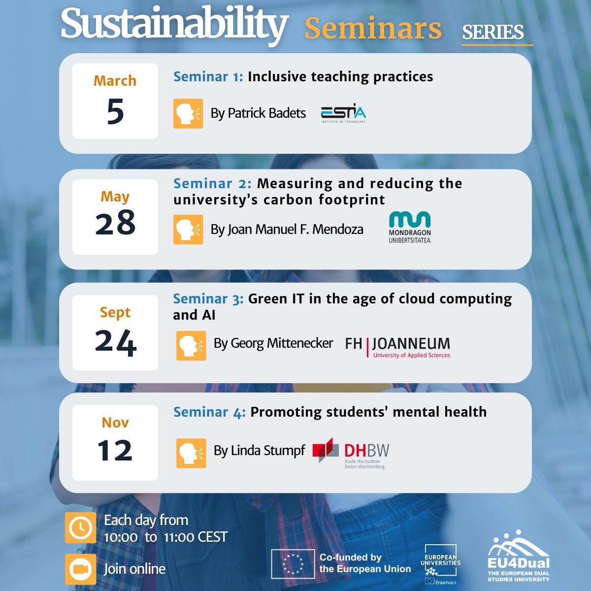 Informujemy o nowej serii seminariów prowadzonych przez ekspertów sojuszu EU4Dual dotyczących zrównoważonego rozwoju.
