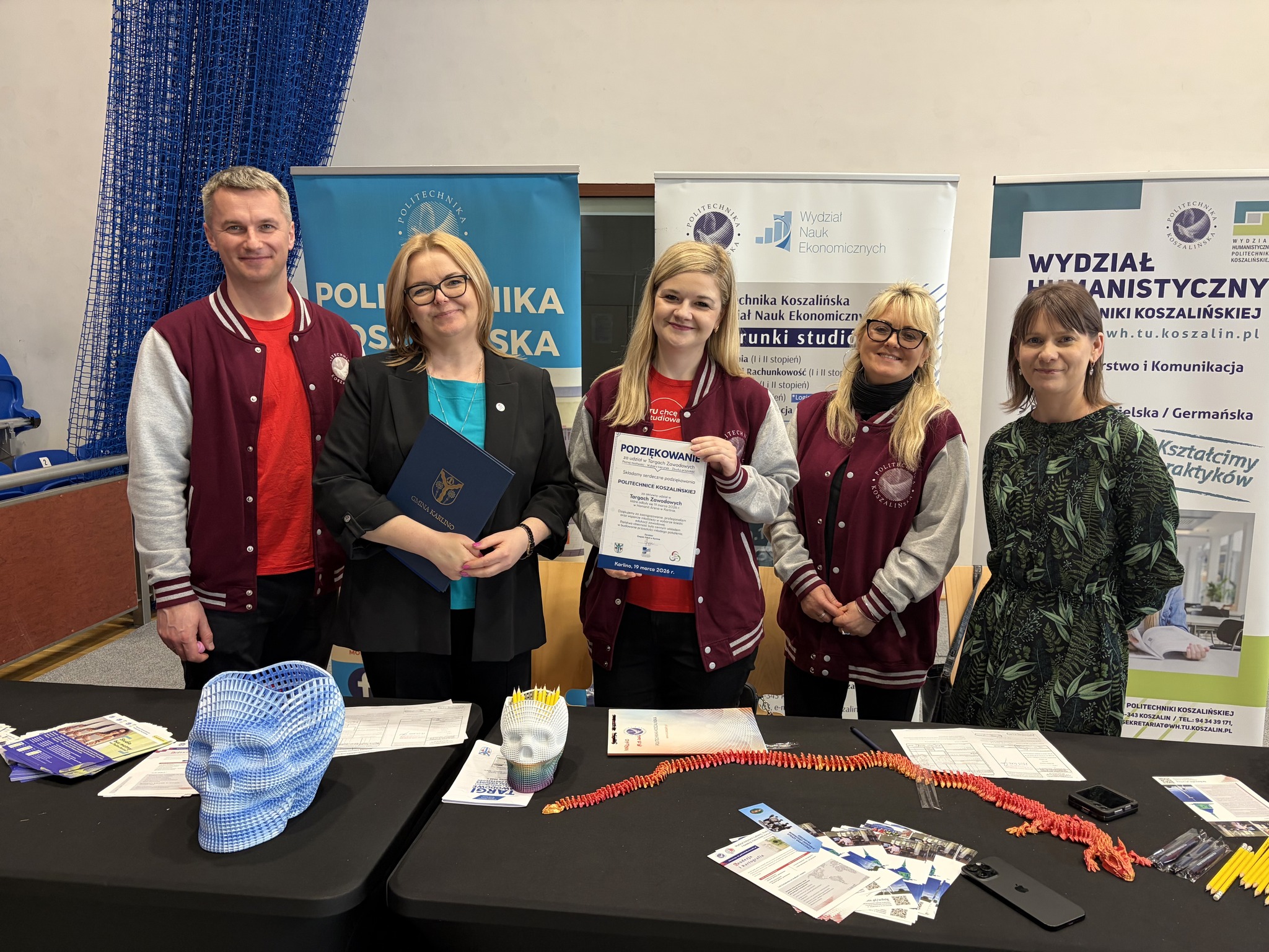 Wczoraj (19 marca br.) przedstawicielki i przedstawiciele Politechniki Koszalińskiej uczestniczyli w Targach Zawodowych pod hasłem „Poznaj możliwości. Wybierz kierunek. Zbuduj przyszłość”, które odbyły się w Karlinie. Wydarzenie zgromadziło liczne grono uczniów, nauczycieli oraz instytucji edukacyjnych, tworząc przestrzeń do rozmów o przyszłości, wyborze ścieżki kształcenia oraz planowaniu kariery zawodowej.