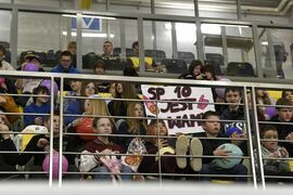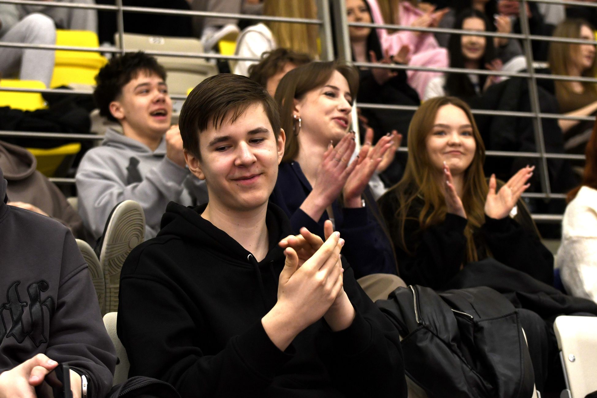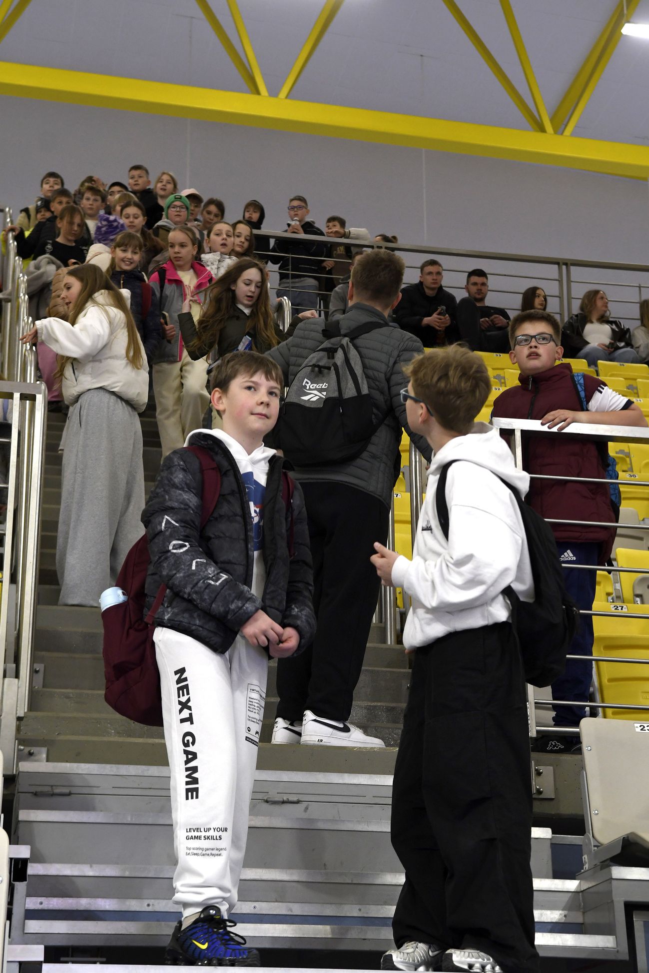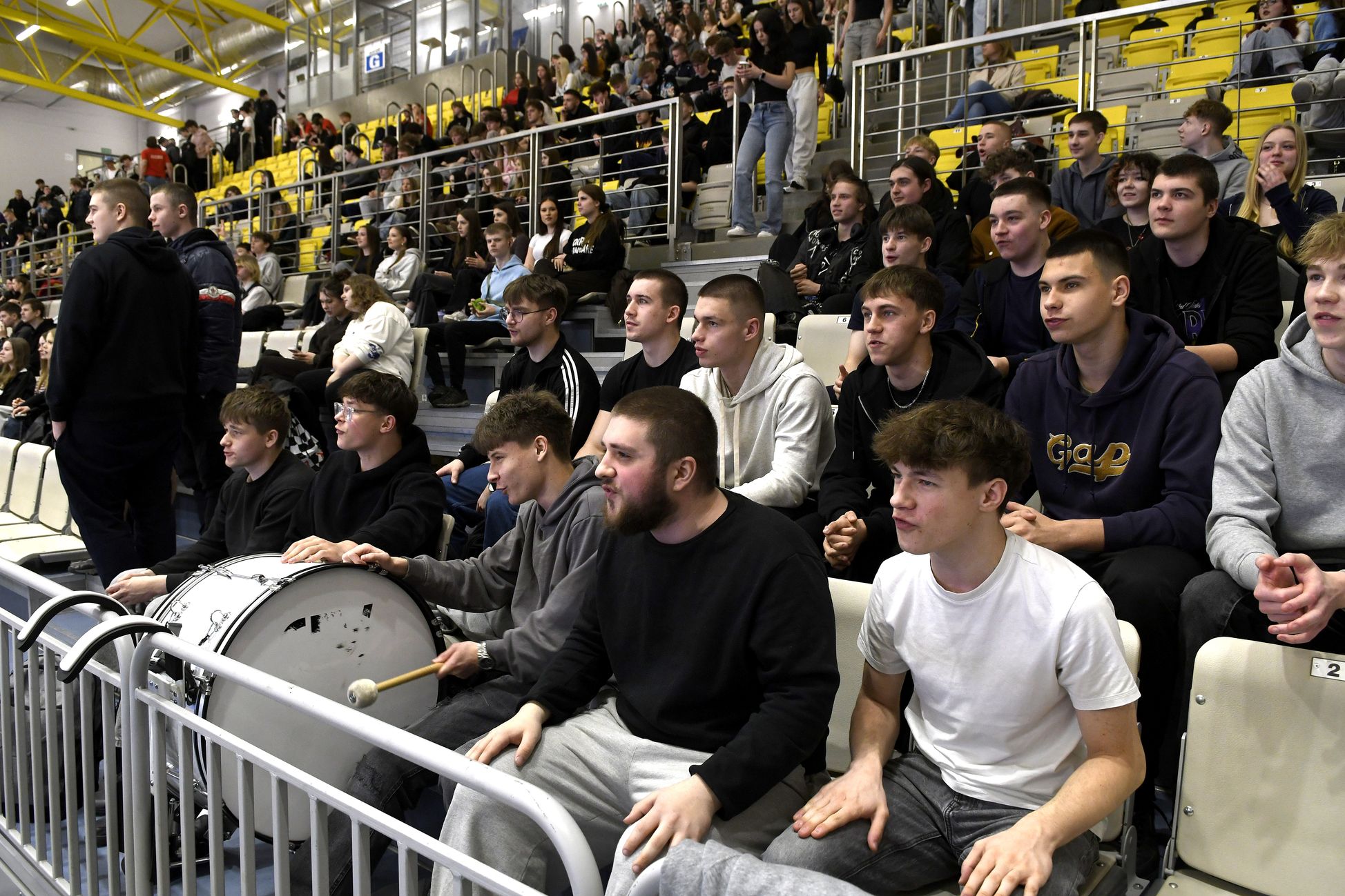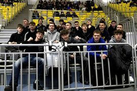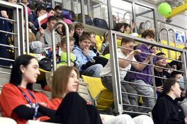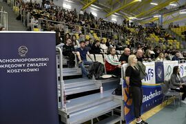 Na trybunach coraz więcej kibiców, głównie uczennic i uczniów koszalińskich szkół. Wszyscy dopingują swoim drużynom.